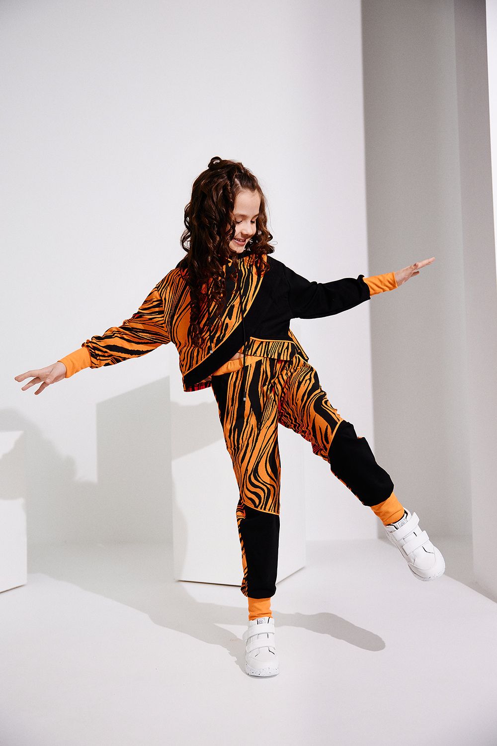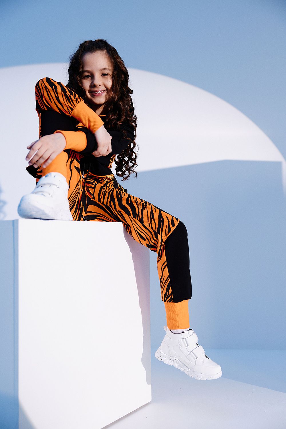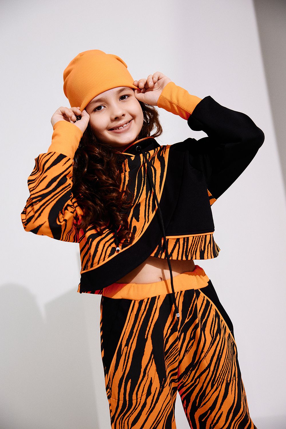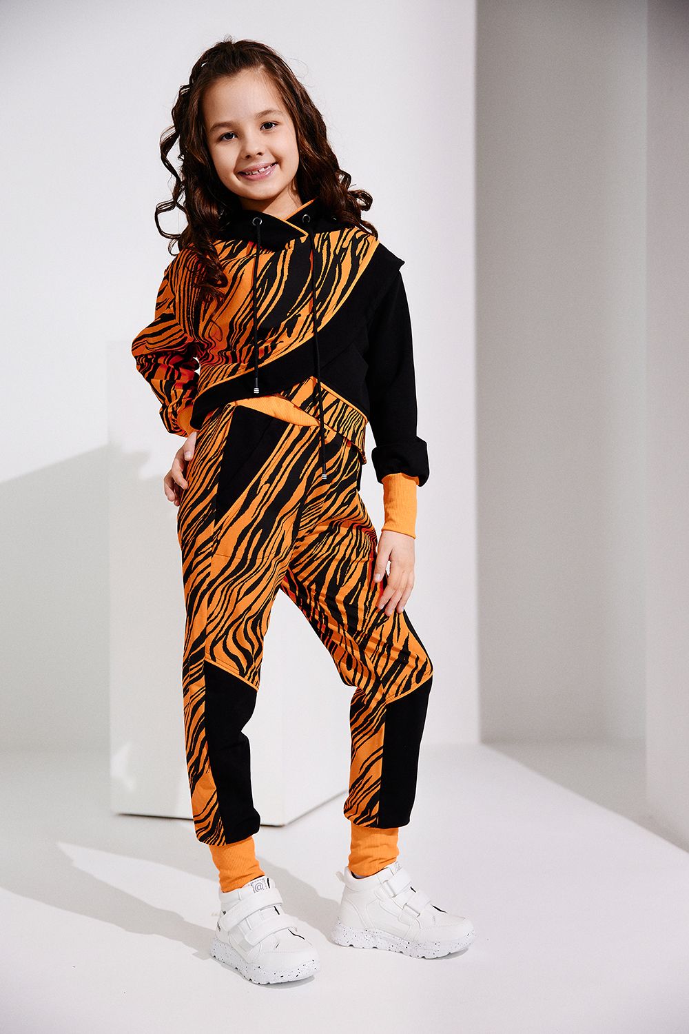 Модный детский комплект имеет итересный крой и сочетание цветов. Костюм двойка представлен в ярких цветах, создан для детей младшего и школьного возраста. Состоит из худи и спортивных брюк джоггеров. Худи укороченное, свободного кроя, объёмным капюшоном, длинными рукавами с яркими манжетами из кашкорсе. Полочка оформлена в виде запаха на одно плечо. Джоггеры свободного силуэта, имеют внизу манжеты, на поясе эластичная резинка(всё выполнено из яркого эластичного кашкорсе). На брюках с 2-х сторон внутренние боковые карманы. Дизайн костюма дополнен ярким декоративным кантом. Костюм актуален в любом виде спорта, в путешествии и ежедневной носке. Рекомендована деликатная стирка при 30 градусах. Состав по тканям: футер 2-х нитка с лайкрой хлопок 72%, ПЭ 20%, кулирка с лайкрой; эластан 8% и хлопок 95% лайкра 5%; кашкорсе - вискоза 50% пэ 45% лайкра 5%
