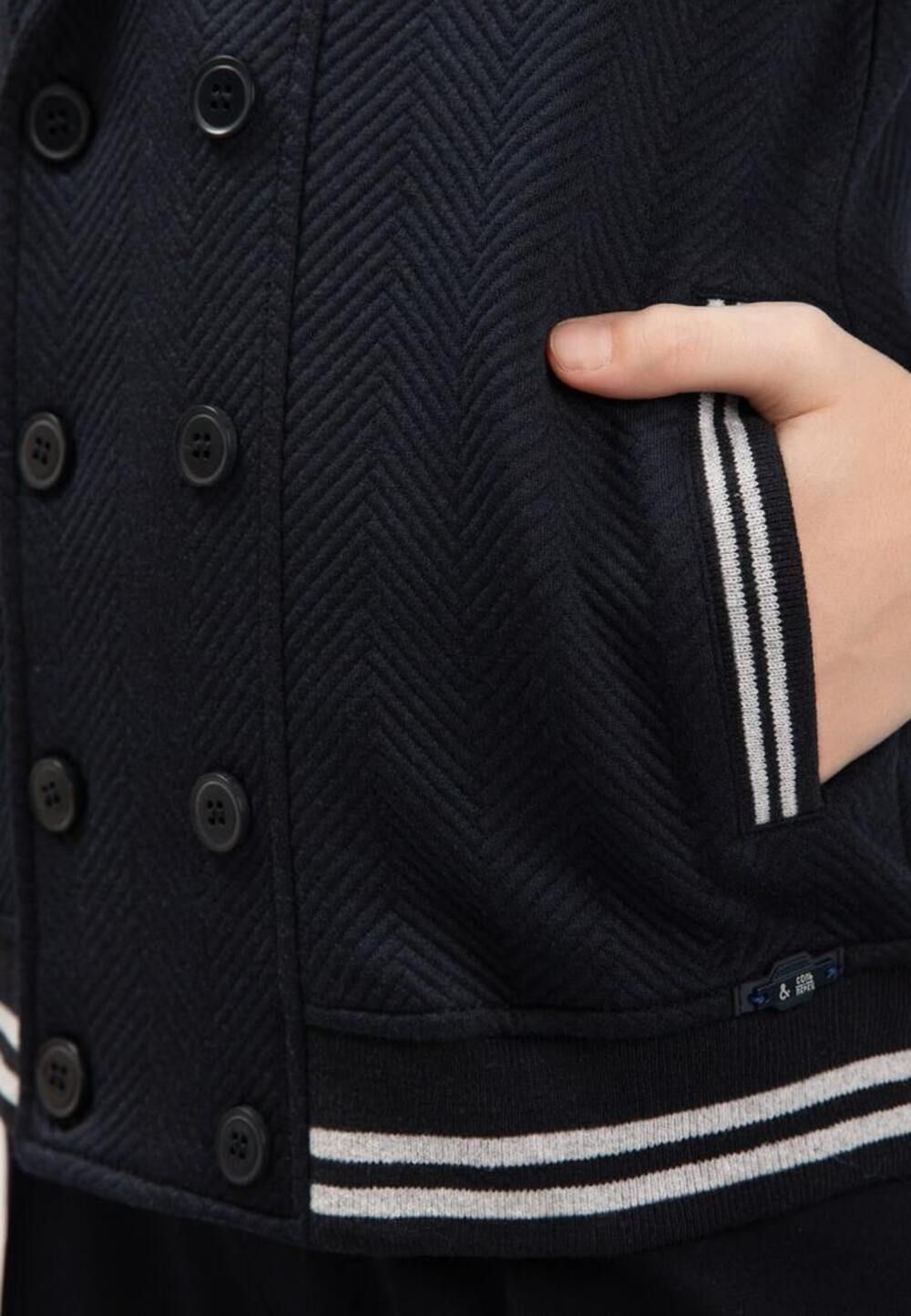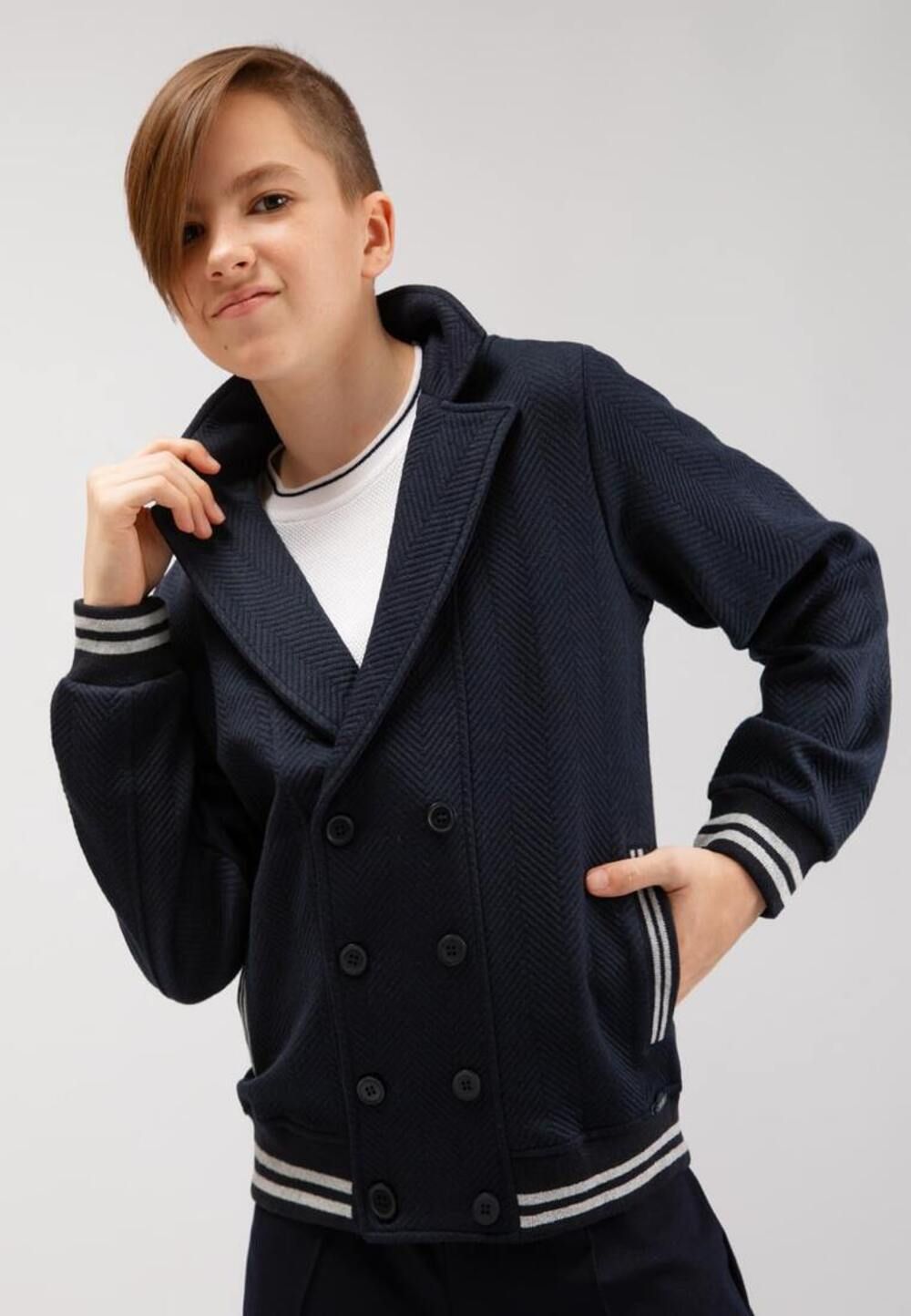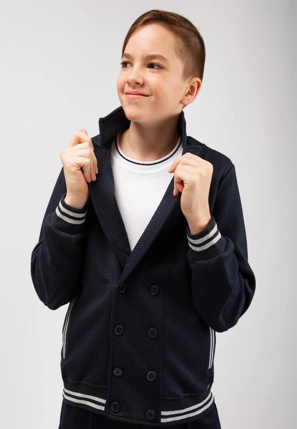 Пиджак-бомбер для мальчика Соль&Перец. Рукава и низ изделия с широкими, эластичными манжетами. Модель идеально сочетается с брюками любого фасона и подойдет как для школы, так и для торжественного мероприятия.
