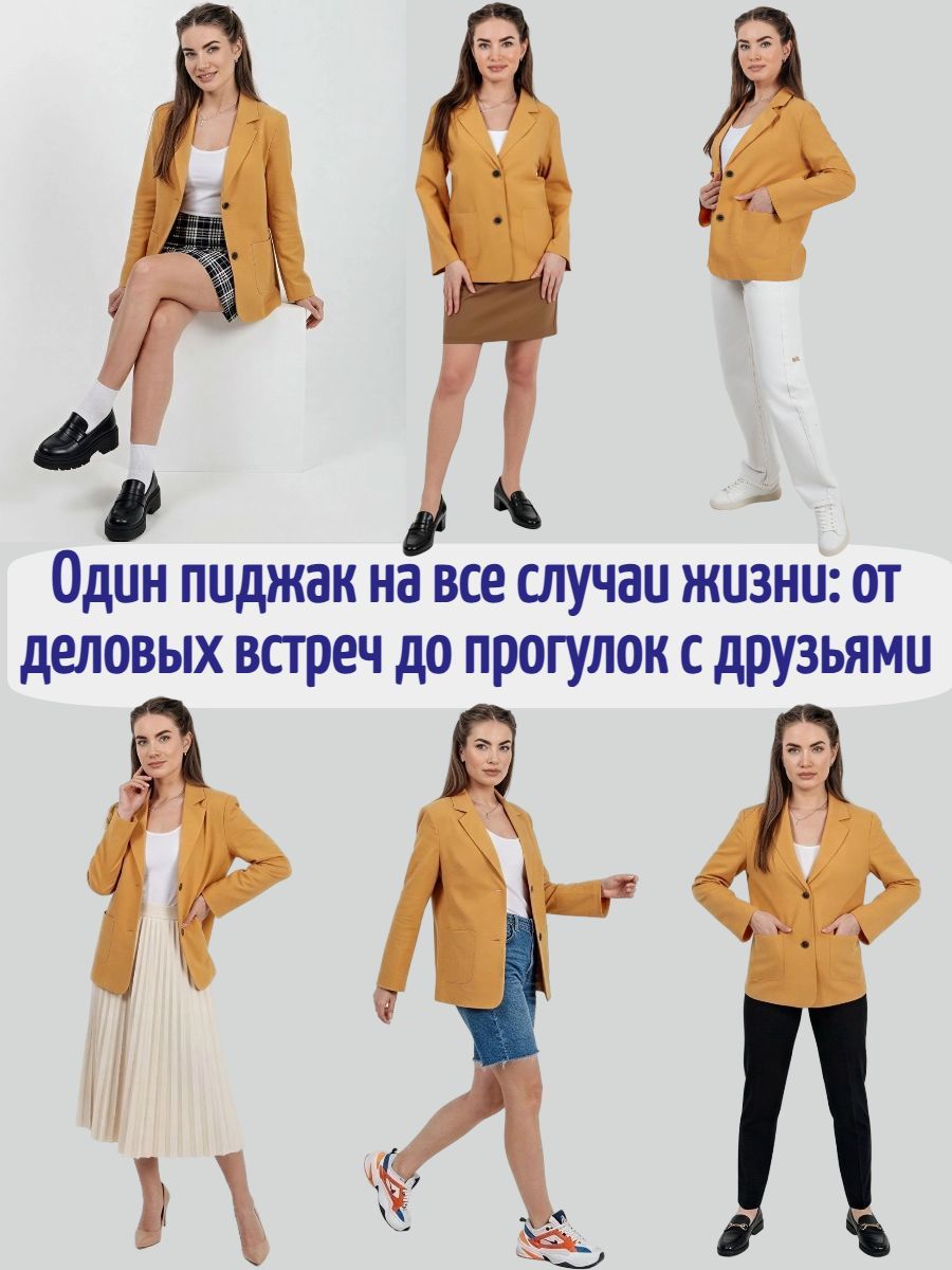 Лёгкий женский пиджак без подклада станет незаменимой вещью в весенне‑летнем гардеробе. Благодаря отсутствию подклада модель особенно комфортна: она не стесняет движений и не создаёт лишнего тепла даже в жаркую погоду. Классический дизайн с чёткими линиями и лаконичными деталями легко вписать в любой стиль: наденьте его с офисной юбкой для строгого образа или с джинсовыми шортами для прогулки. Застёжка на пуговицы, удобные карманы и продуманный крой делают эту модель практичной и функциональной. Пиджак гармонично сочетается с разными элементами гардероба — от платьев до брюк. Уход прост: деликатная стирка при 30∘C и аккуратная глажка.