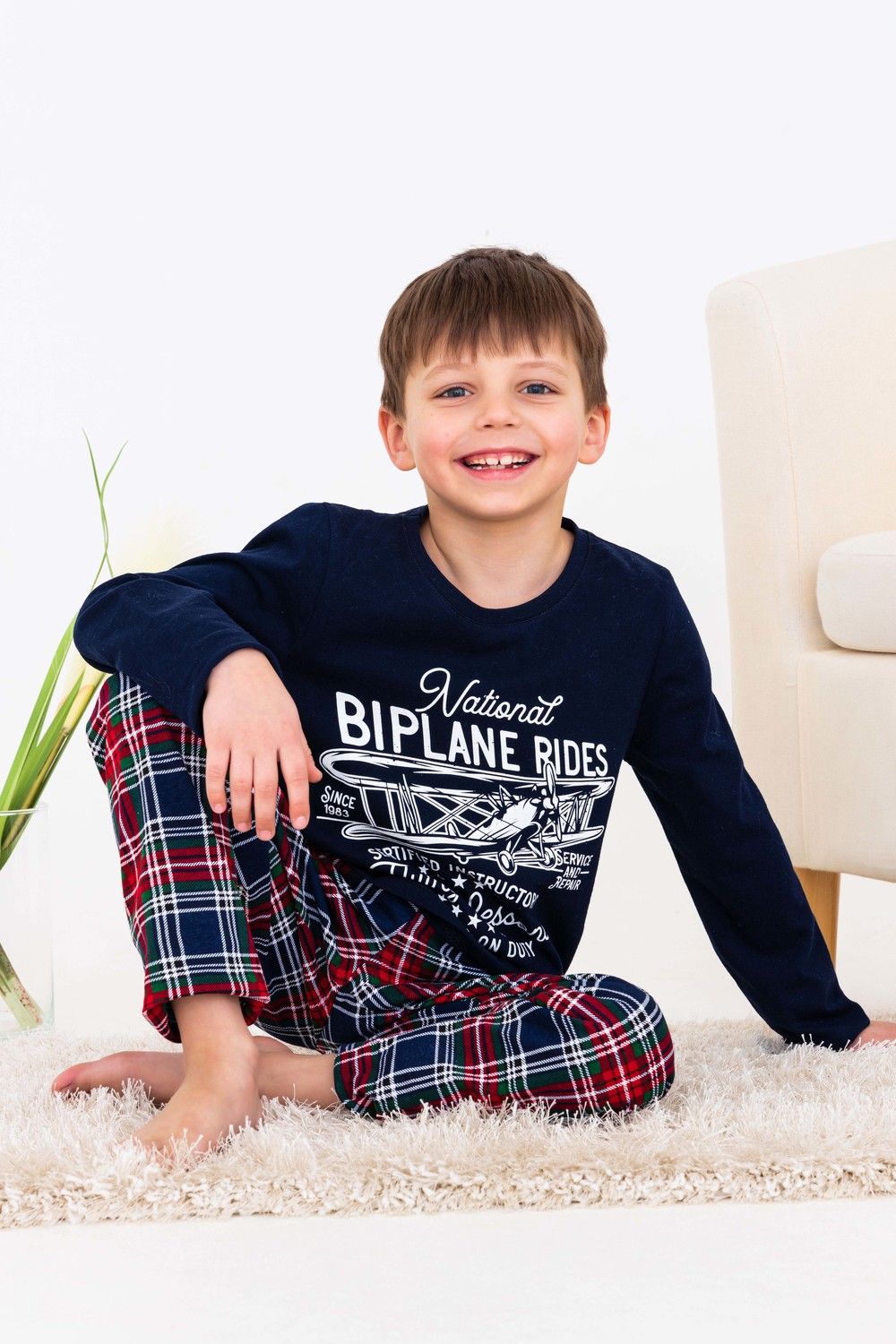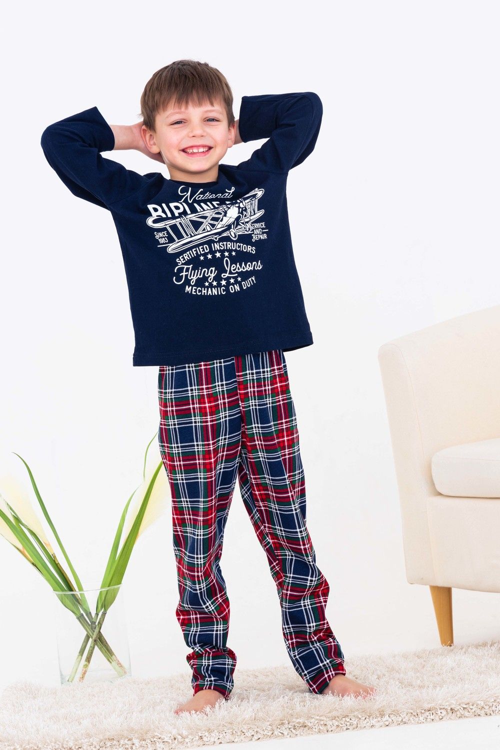 Яркая пижама для мальчиков с брюками подарит комфорт и уют. На полочке - печать. Детская пижама 10880 - отличный подарок на 23 февраля!