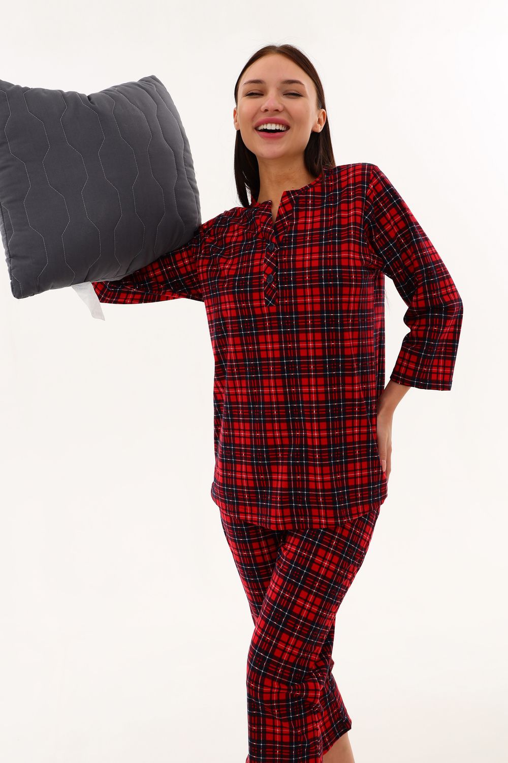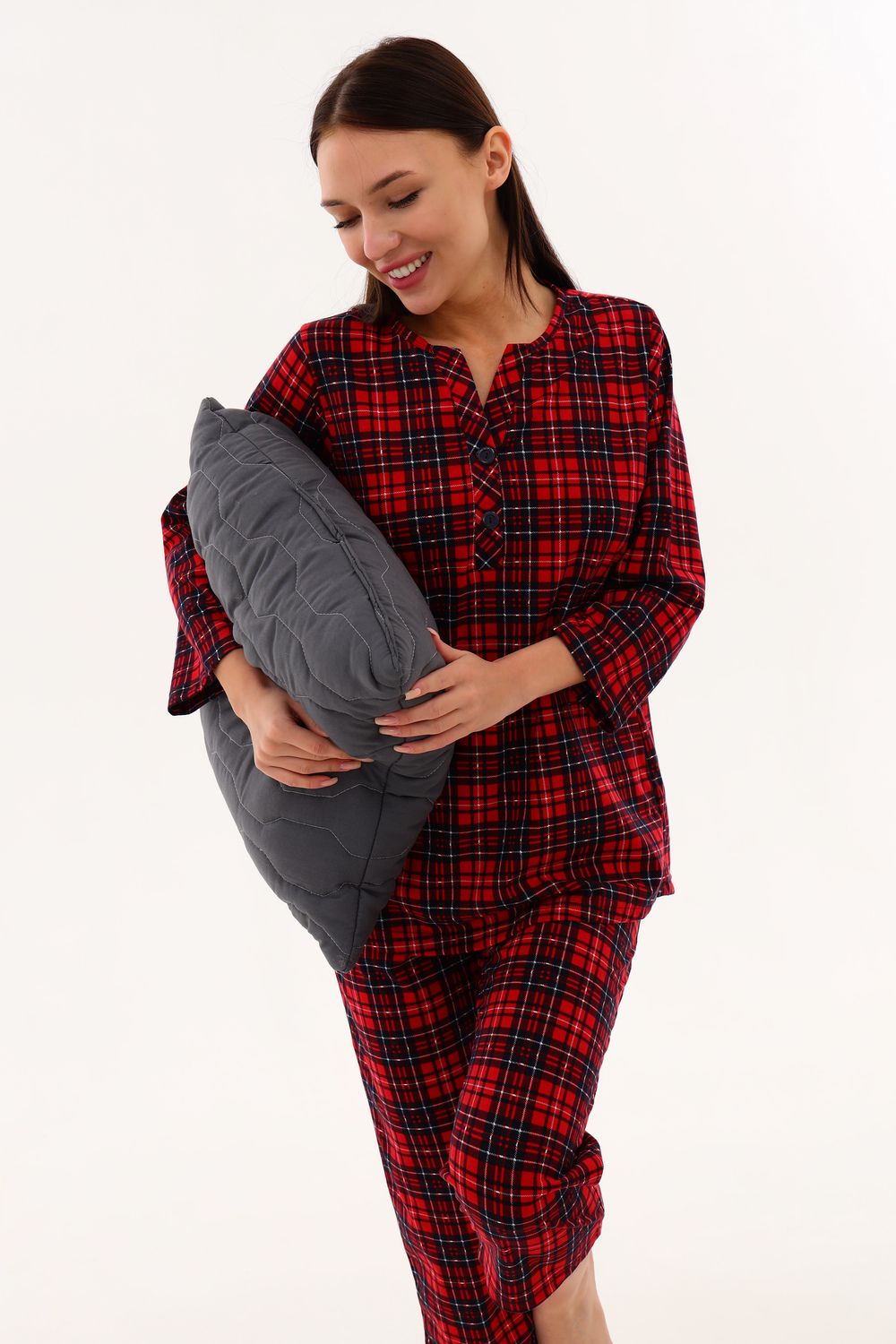 Пижама выполнена из комфортной приятной к телу ткани. Состоит из удлинённой кофты с застёжкой - поло и бридж. Низ кофты слегка закруглён к боковым срезам. Пижамка хорошо садиться на любой тип фигуры за счёт большого размера припусков на свободу облегания. Бриджи с высокой удобной посадкой на эластичной резинке 3 см. Качественно. Уютно. Для тебя. Носите с удовольствием.
