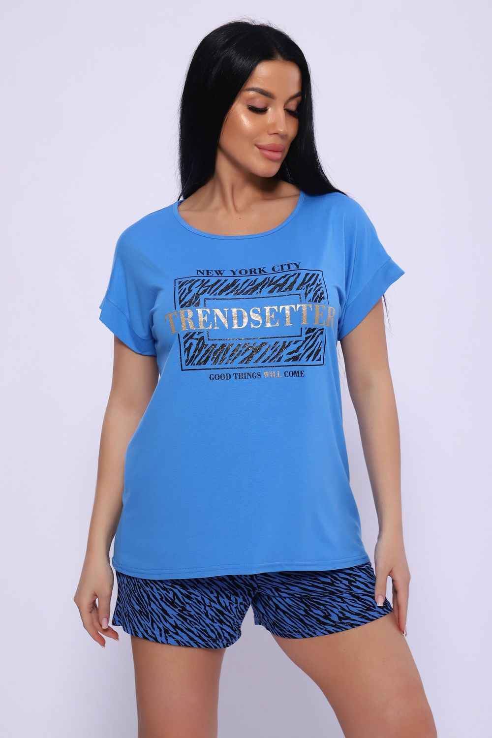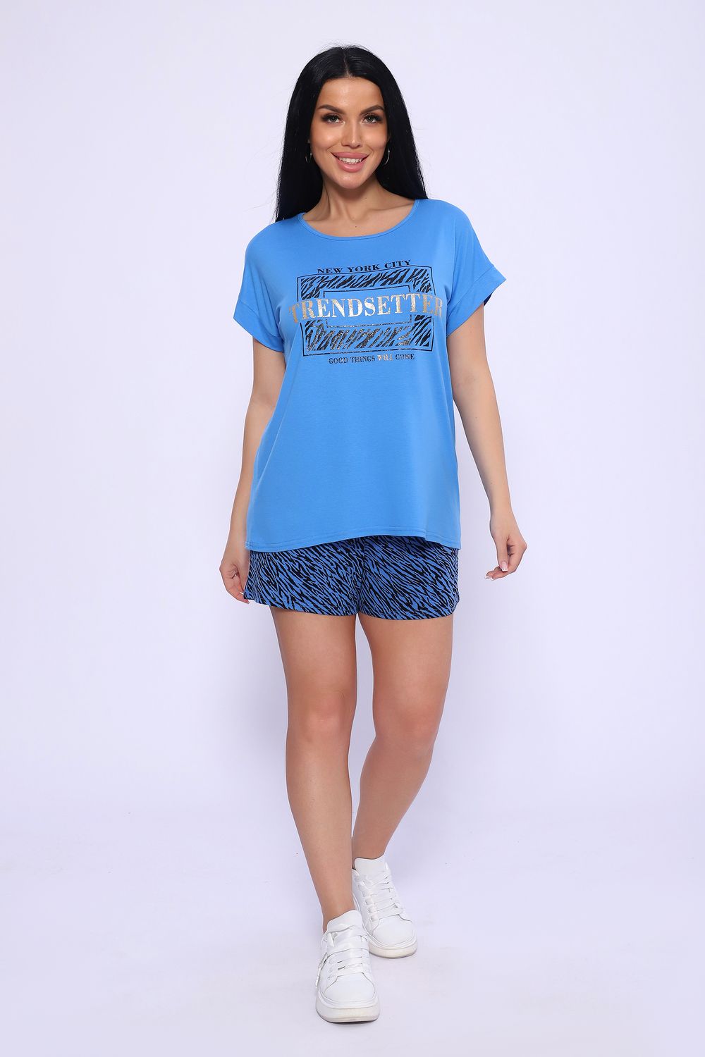 Модель свободного силуэта состоит из футболки со стильным оригинальным принтом и шорт. Костюм изготовлен из комфортной, дышащей трикотажной вискозы, выдержит многократные стирки, подойдёт на любой возраст и фигуру. Дома в нём вы себя очень уютно будете чувствовать, а также этот костюмчик замечательно впишется и на отдыхе, и на даче.