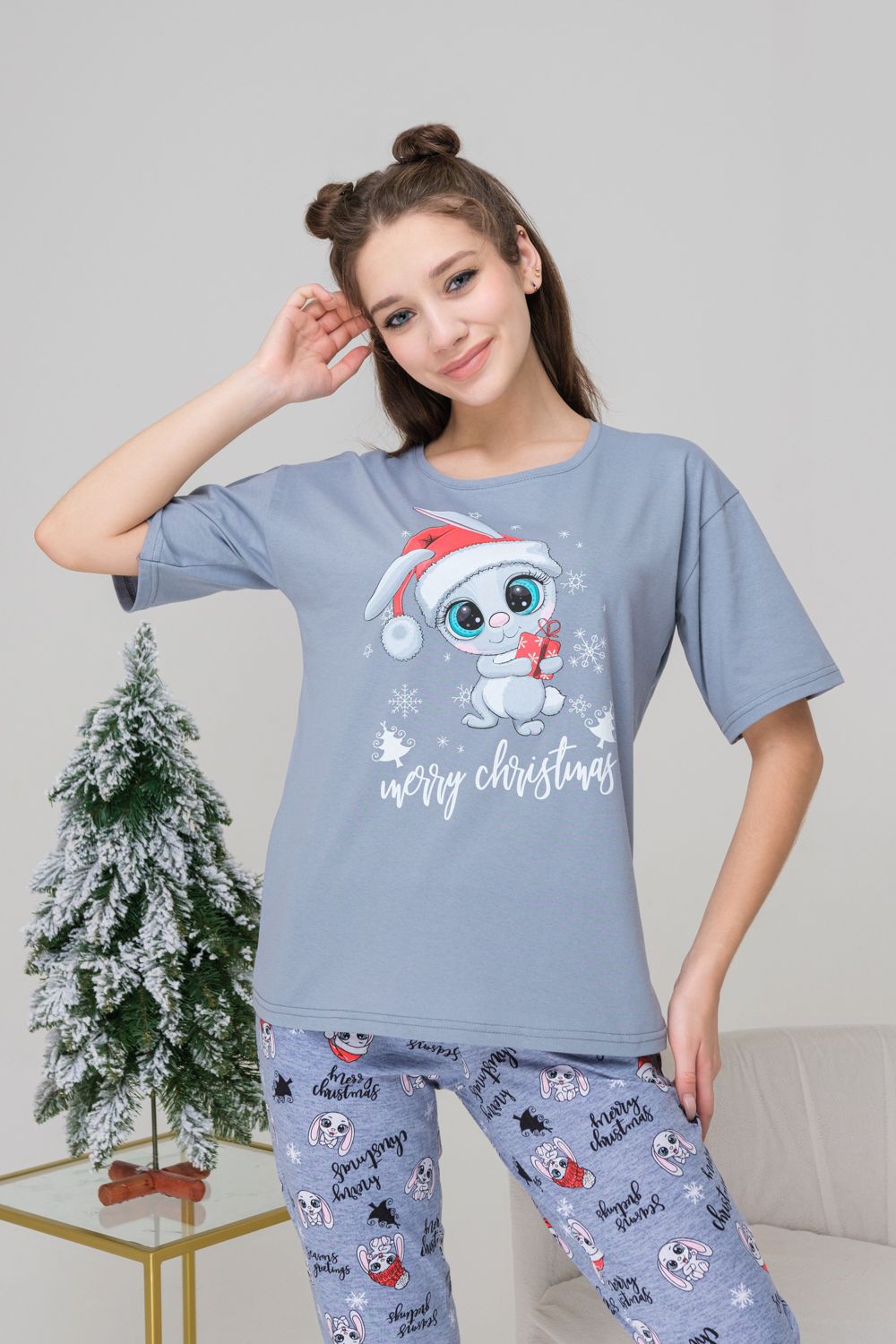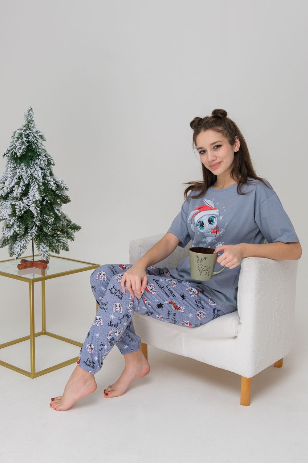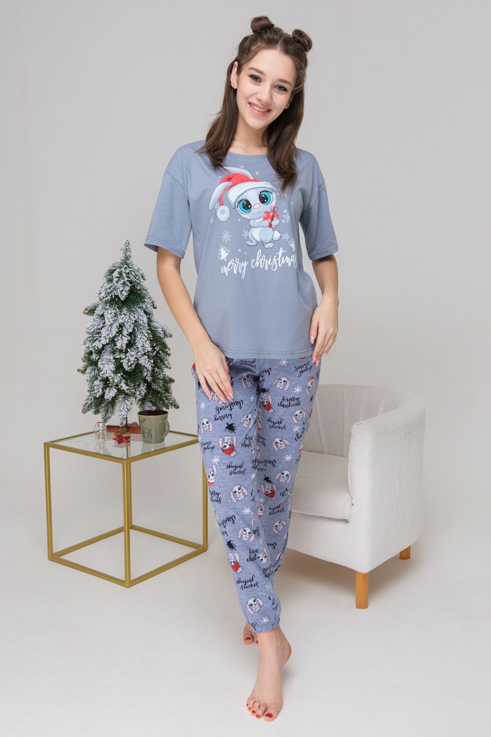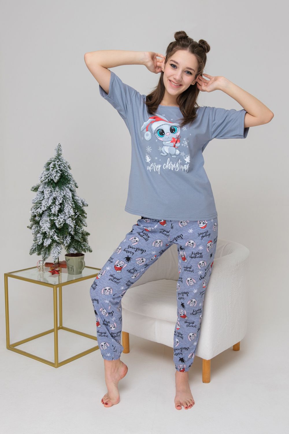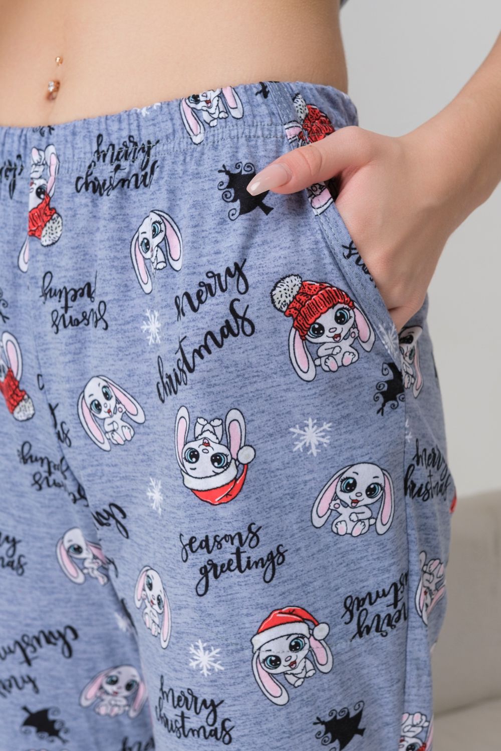 Пижама женская с брюками. Футболка свободного кроя с оригинальной печатью на груди. Брюки с боковыми карманами, внизу на резинке. Хорошо сидит на фигуре, уютно для дома.