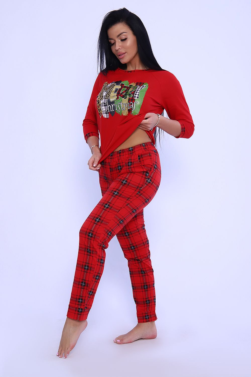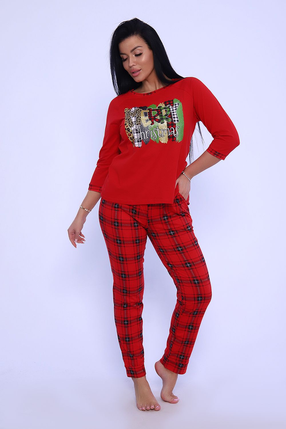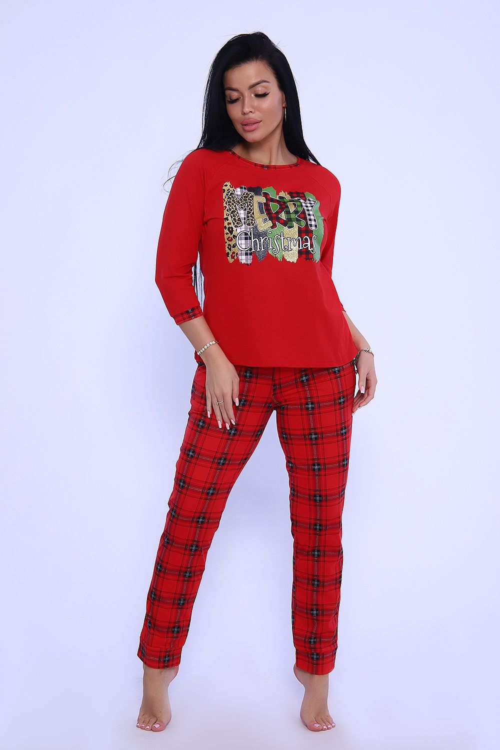 Яркая пижама для каждого дня и веселого праздника, порадует вас. Пижама из мягкой кулирки с принтом подарит вам уют и хорошее настроение. Джемпер с рукавом реглан, манжет и обтачка в тон брюк, брюки с притачным поясом и карманами, манжет внизу.