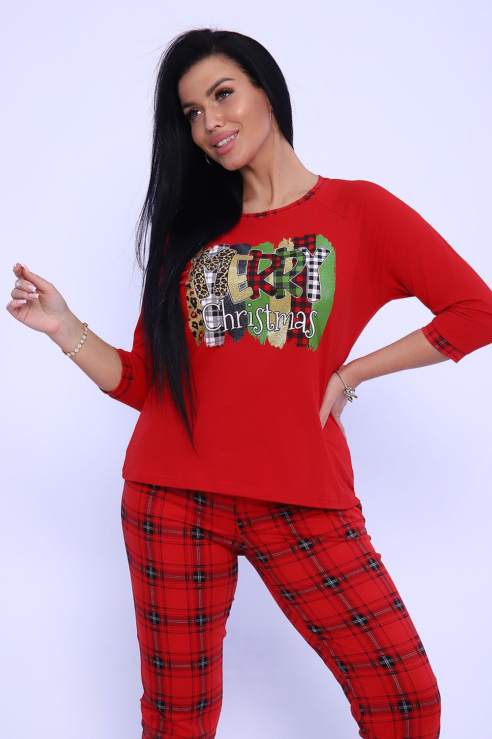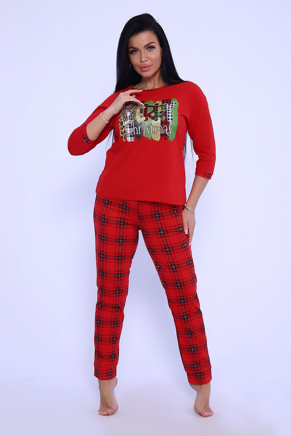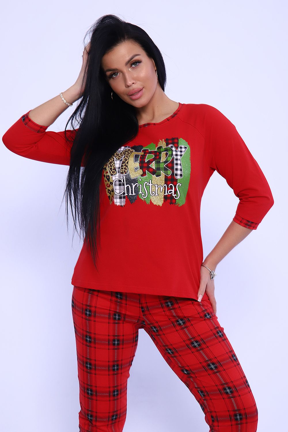 Яркая пижама для каждого дня и веселого праздника, порадует вас. Пижама из мягкой кулирки с принтом подарит вам уют и хорошее настроение. Джемпер с рукавом реглан, манжет и обтачка в тон брюк, брюки с притачным поясом и карманами, манжет внизу.