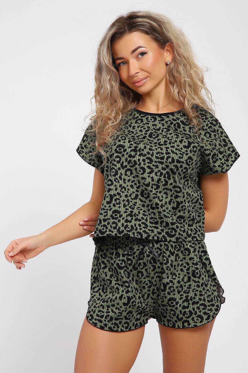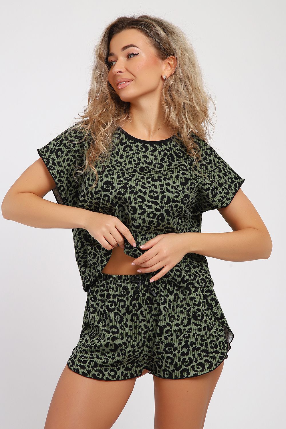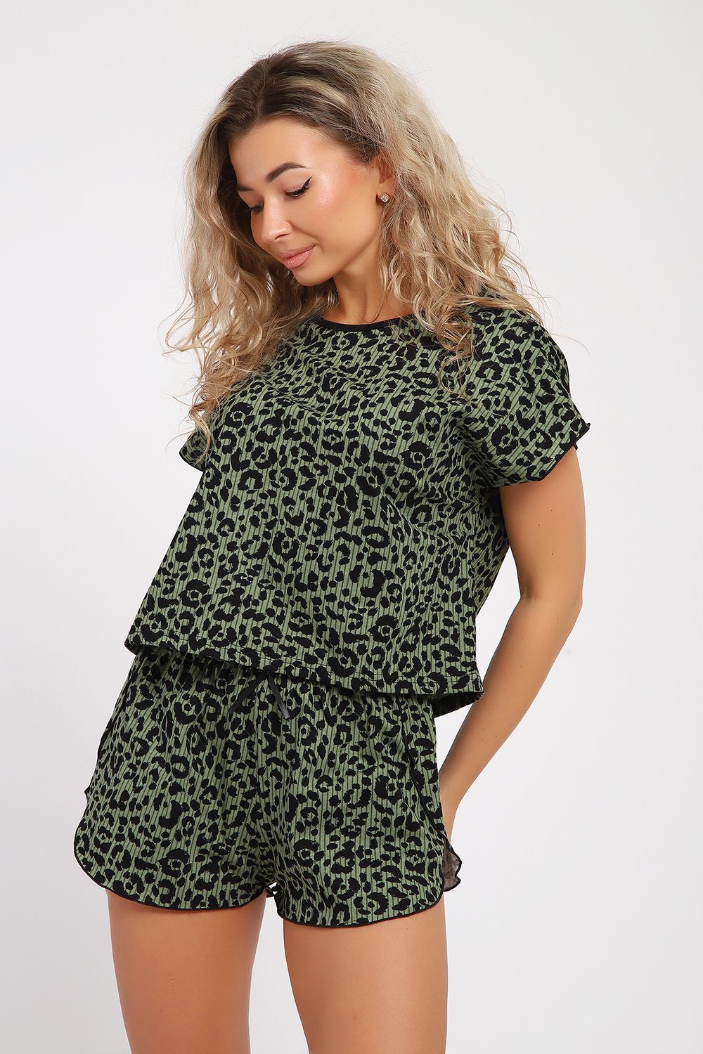 Женская пижама с шортами предназначена для домашнего времяпрепровождения, комфортного сна и отдыха. Это удобный комплект с шортами свободного плана и футболкой, созданный из приятного и дышащего 100% хлопка. Благодаря боковым разрезам на шортах в виде запа́ха и модному укороченному верху, костюм выглядит эффектно, модно и привлекательно. А запа́х шорт фиксированный закрепкой на специализированной машине, делает ваше времяпрепровождения дома удобным и комфортным. Пижаму такого плана Вы можете приобрести в качестве подарка на 8 Марта, день рождения, юбилей, Новый год и просто так для себя любимой. Идеальное решение для фотосессии, а также можно взять костюм с собой на отдых или в путешествие. А за счёт хлопковой ткани пижама становится идеальным решением в жаркое время года!