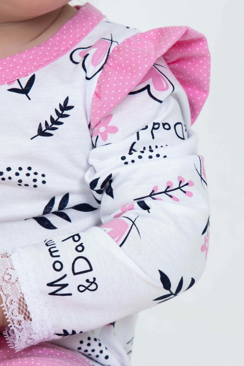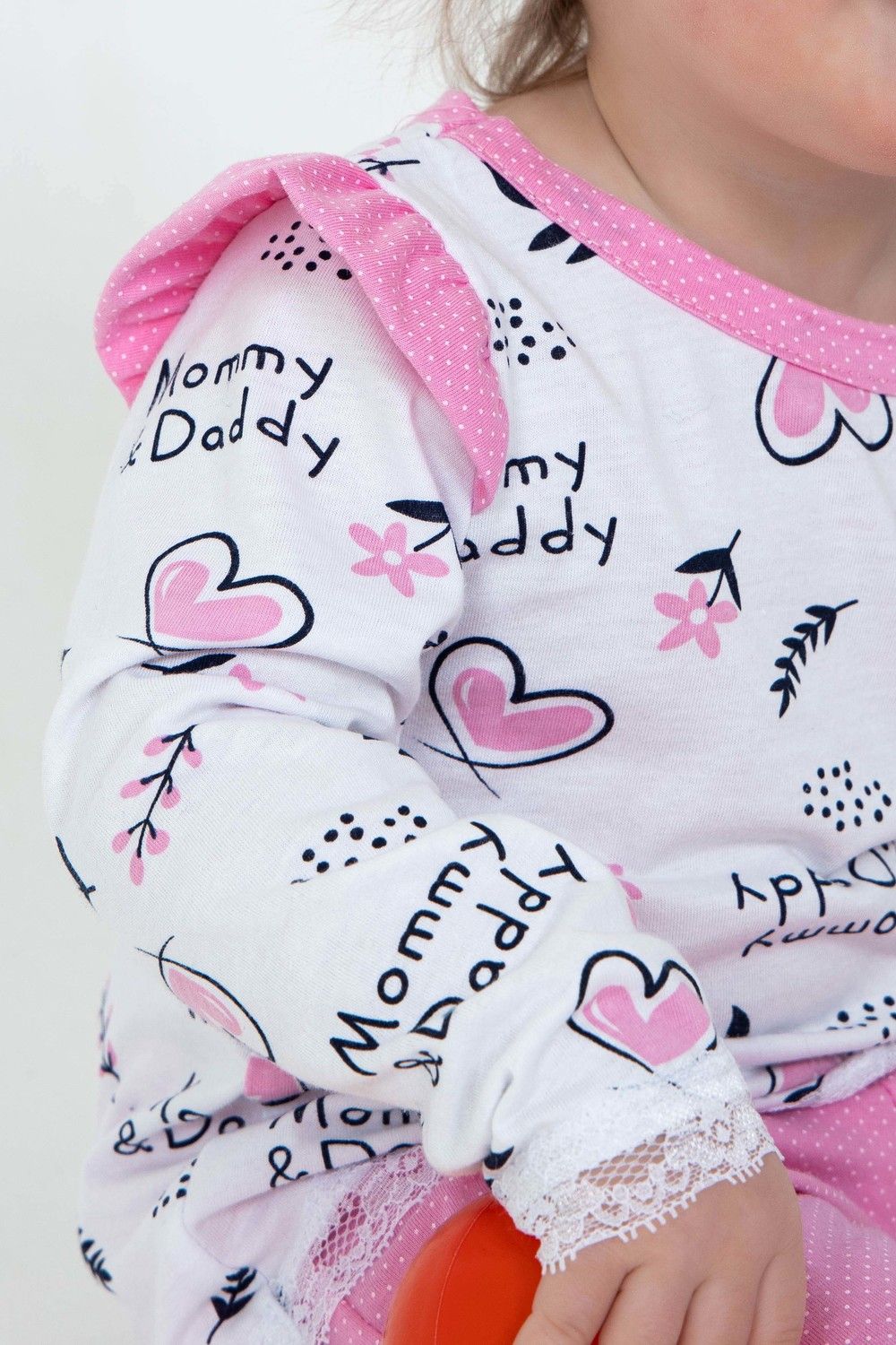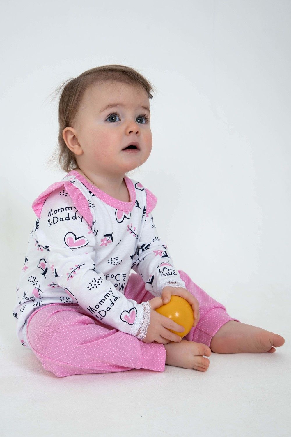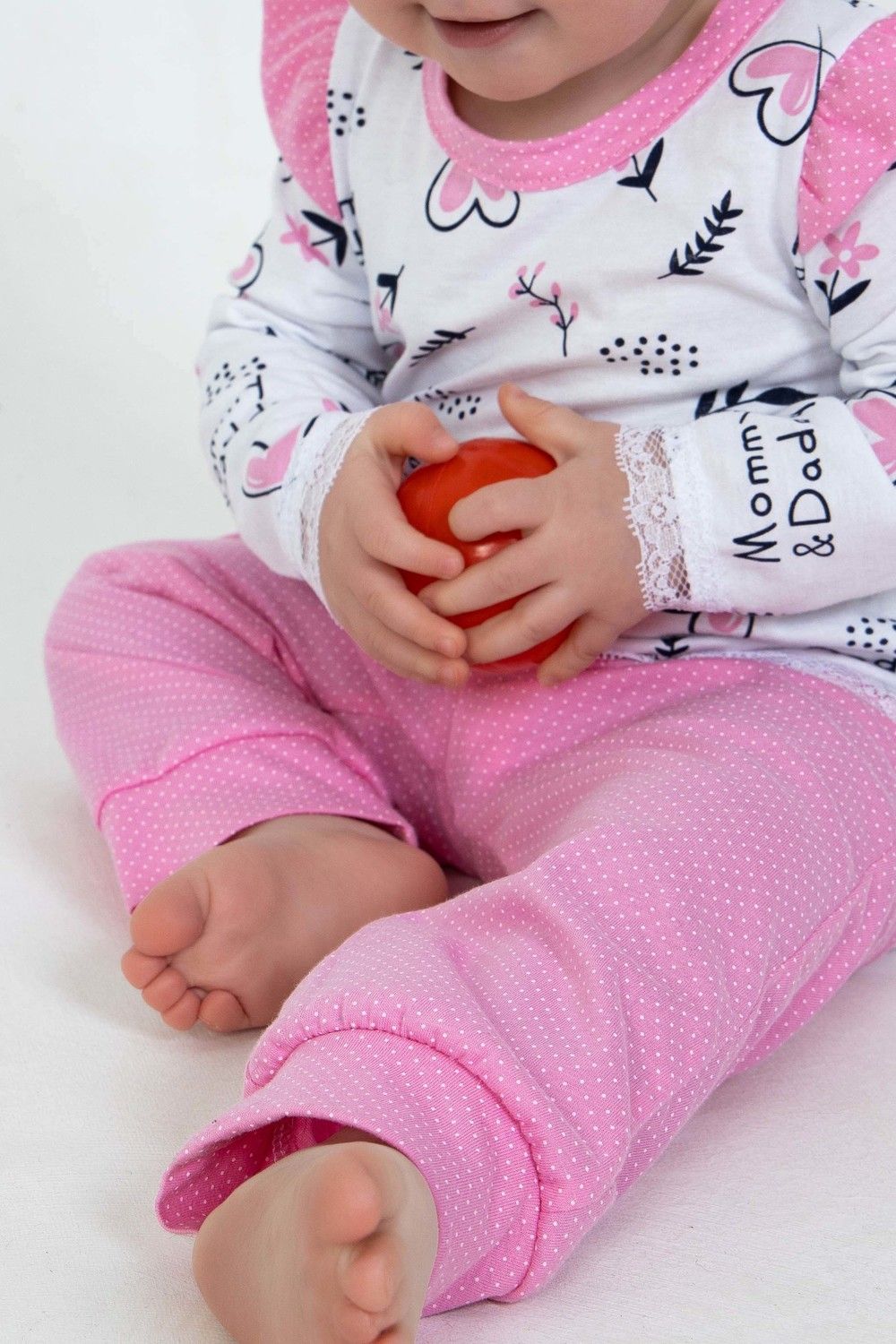 Детская пижамка для девочек, идеальный комплект для сна. Данная модель обеспечит Вашей малышке тепло, уют и, что очень важно, здоровый крепкий сон. Кофточка свободного кроя с длинными рукавами, в комплекте с простыми и легкими брючками. Низки рукавов и кофты отделаны мягким кружевом. Штанишки на манжете.