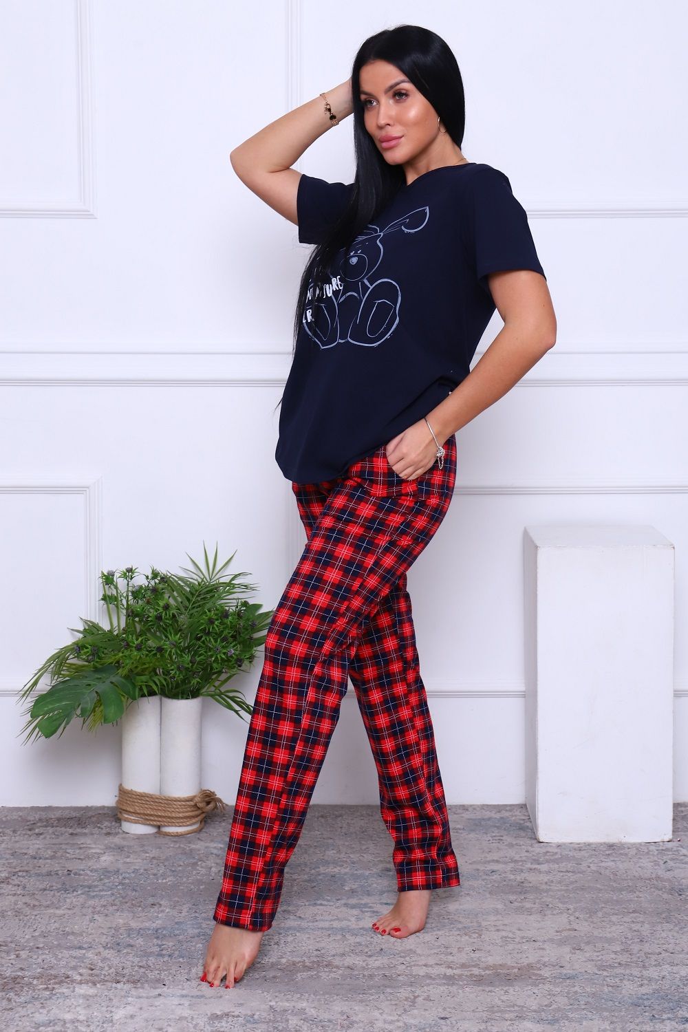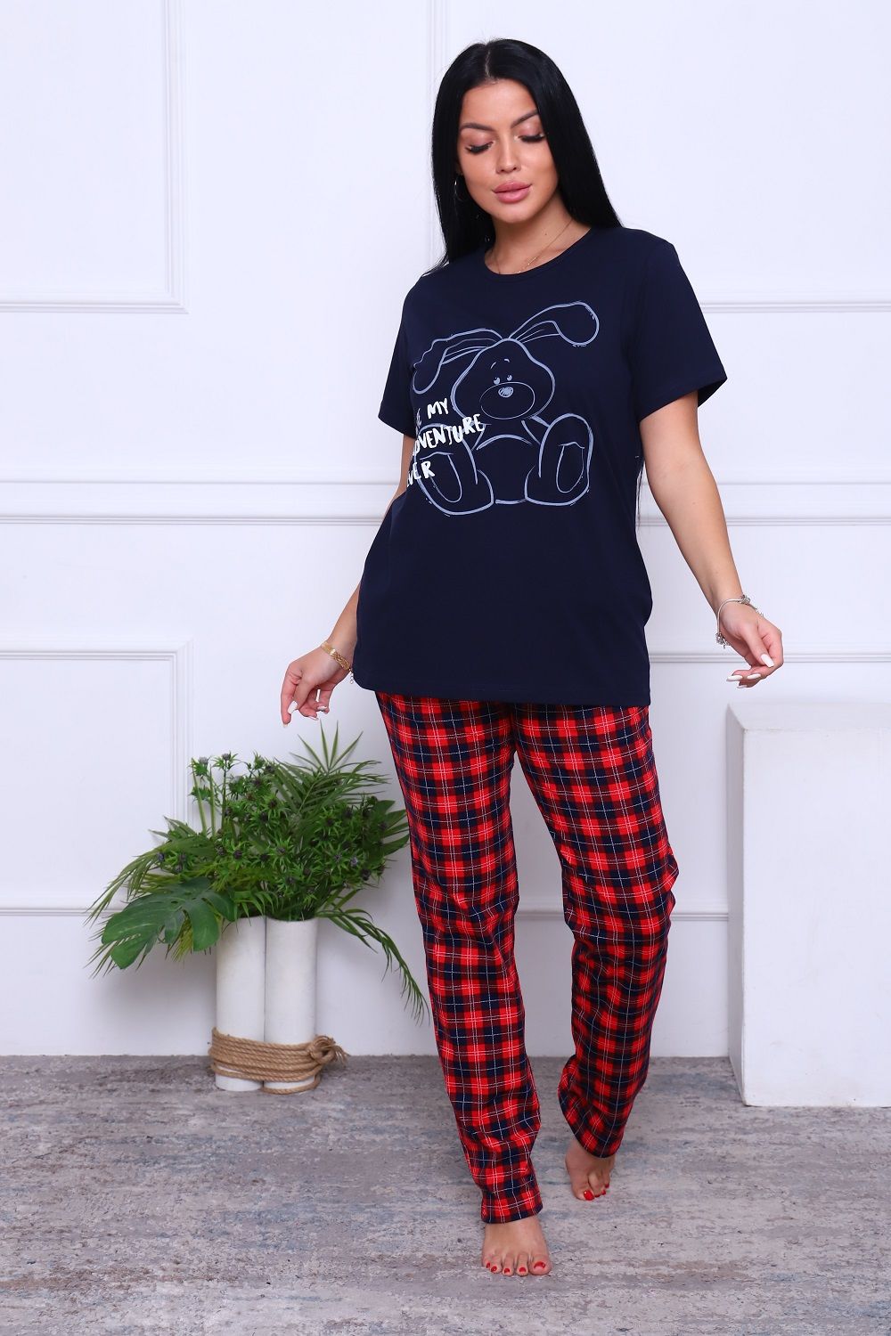 Пижама женская с актуальным новогодним принтом "заяц" на футболке. Стильные брюки в клетку с удобными карманами и комфортным мягким поясом. Милая уютная домашняя одежда подарит радость Вам и вашим близким!