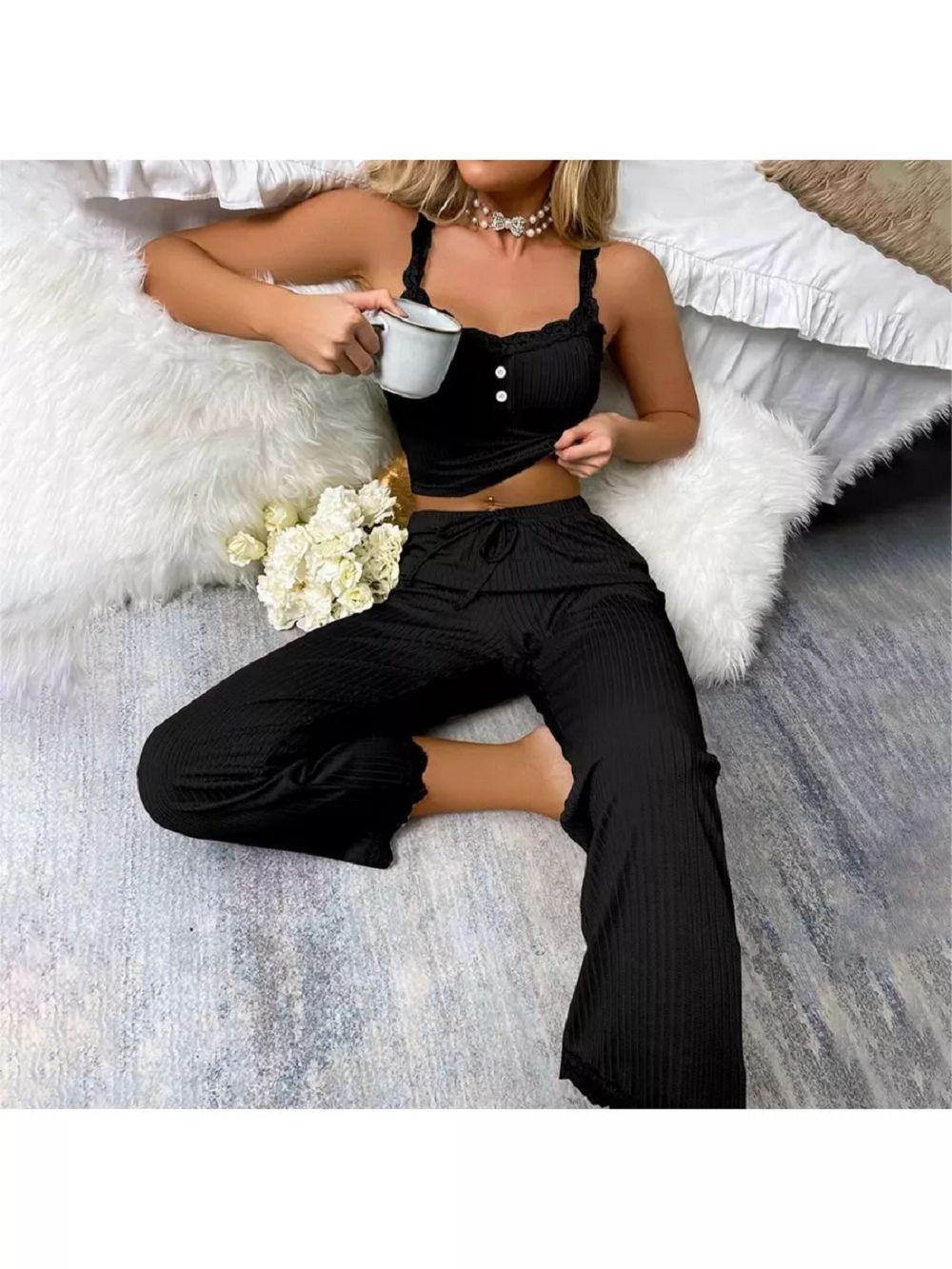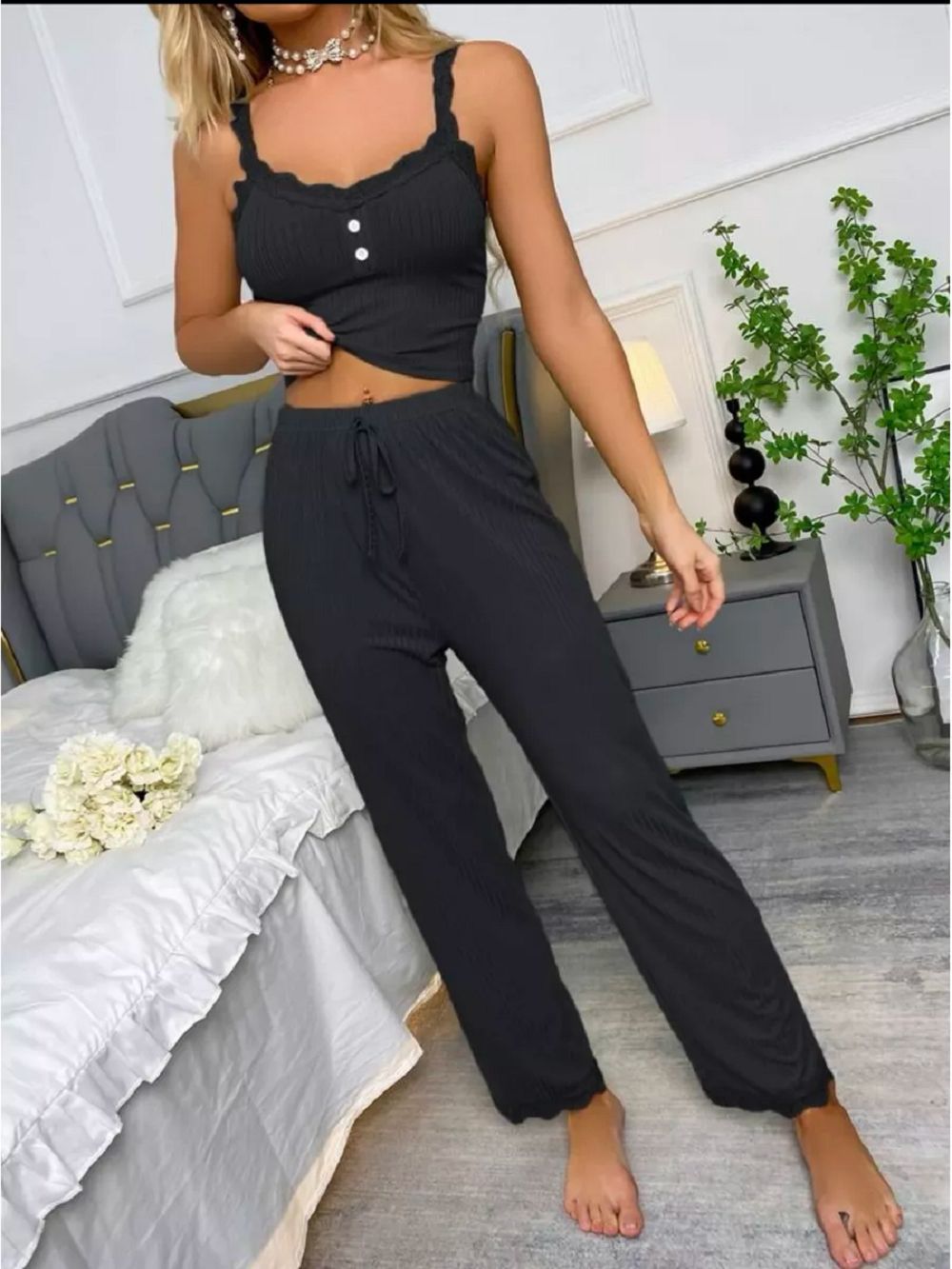 Этот стильный и сексуальный наряд также станет прекрасным подарком для любой женщины, добавляя шарма и уюта в ее гардероб. Не требующая глажки ткань делает эту пижаму практичным и удобным выбором для любого времени года. Почувствуйте себя женственной и уверенной в этой эстетичной пижаме, которая станет вашим незаменимым спутником в уютных моментах отдыха. Этот нарядный комплект включает в себя широкие брюки палаццо и милую майку топ женскую в рубчик, создавая уютный и модный образ. Благодаря трикотажной ткани, пижама обеспечивает идеальную посадку и свободу движений, делая ее идеальной для домашнего отдыха и сна.