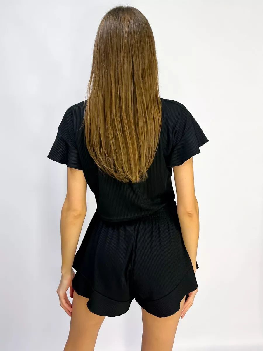 Модная пижама с шортами и топом с коротким рукавом это идеальный выбор качественной домашней одежды! Благодаря мягкой трикотажной ткани в рубчик лапша и свободному крою оверсайз комплект не будет стеснять движения, не линяет, не теряет форму после стирки и не скатывается. Одежда будет комфортной не только во время сна также подойдет для повседневной носки дома в независимости от времени года.