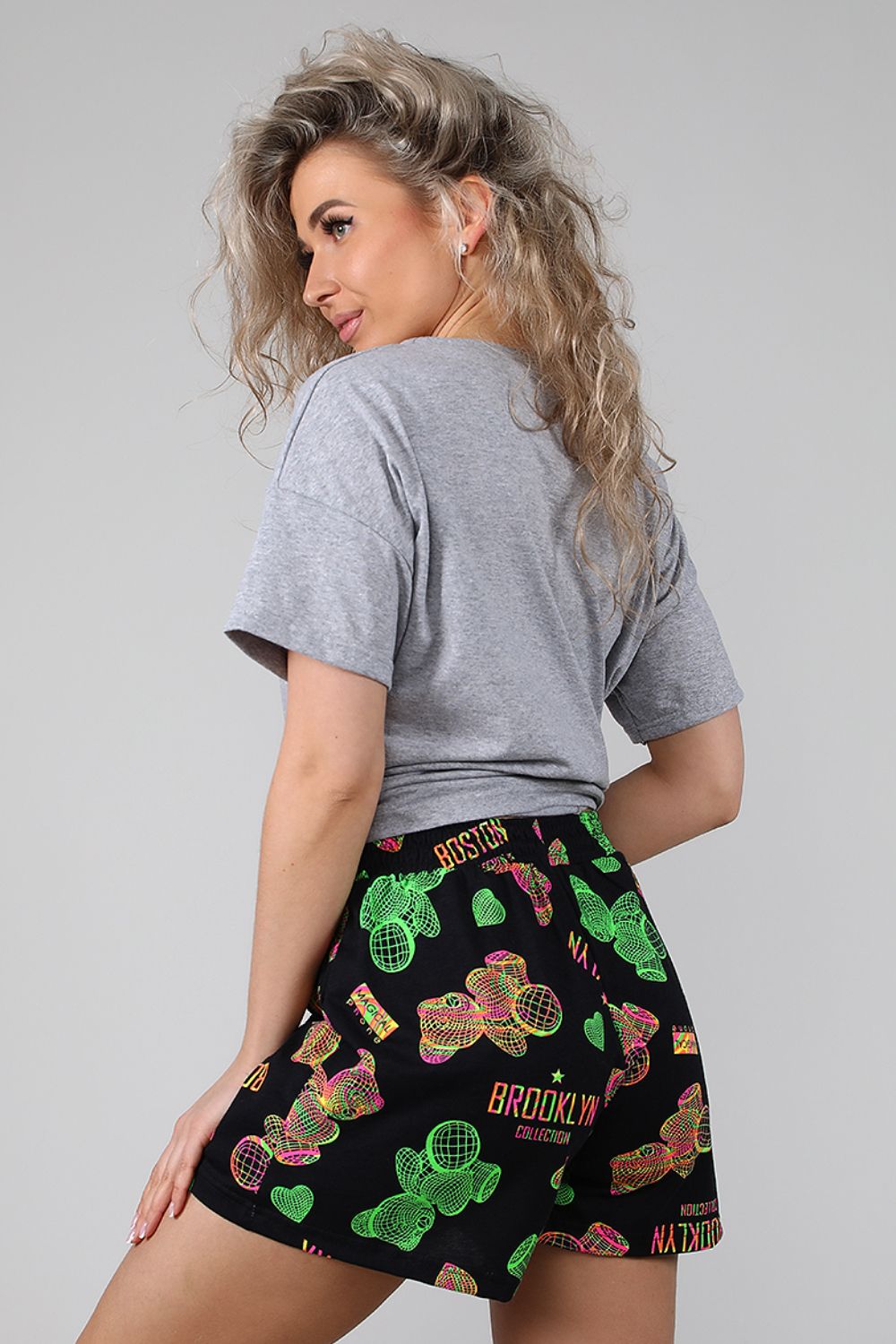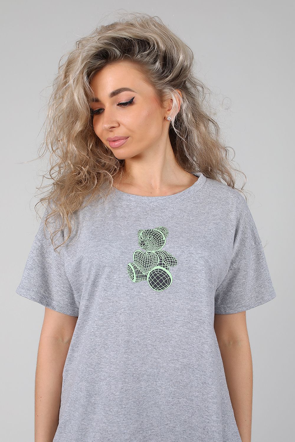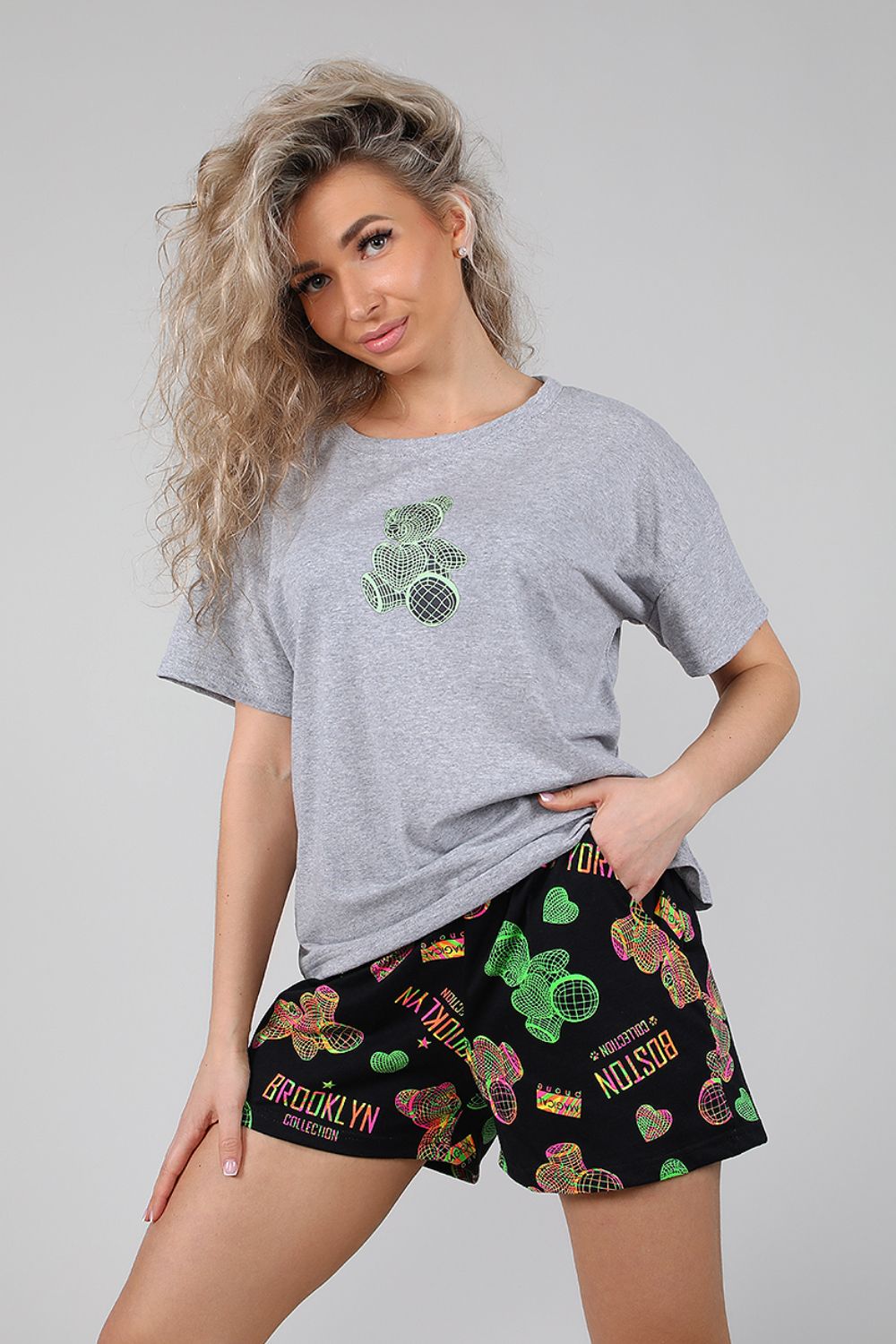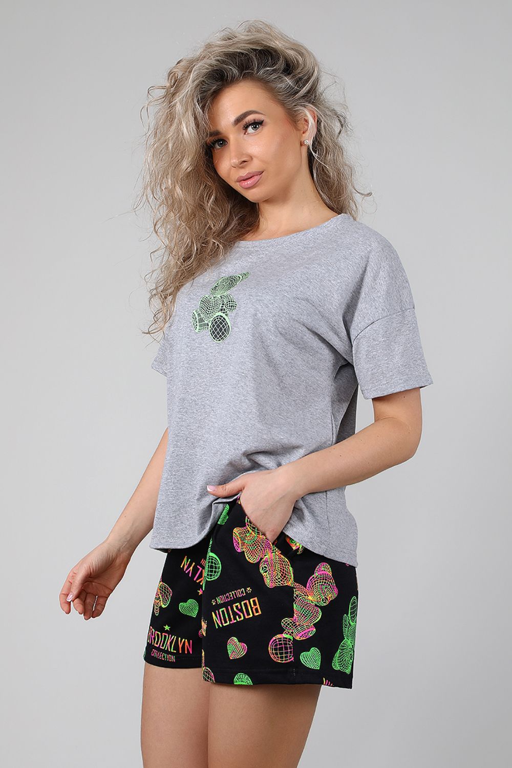 Костюм комбинированный женский с шортами. Данная модель выполнена из трикотажного полотна кулирка (хлопок 100%). Футболка в стиле оверсайз, на полочке присутствует принт, а горловина обработана потайным окантовочным швом. Отлично подходит для сна и отдыха.