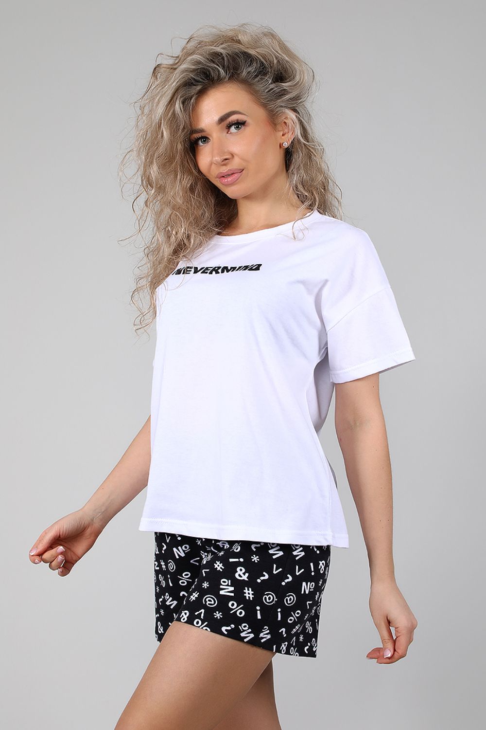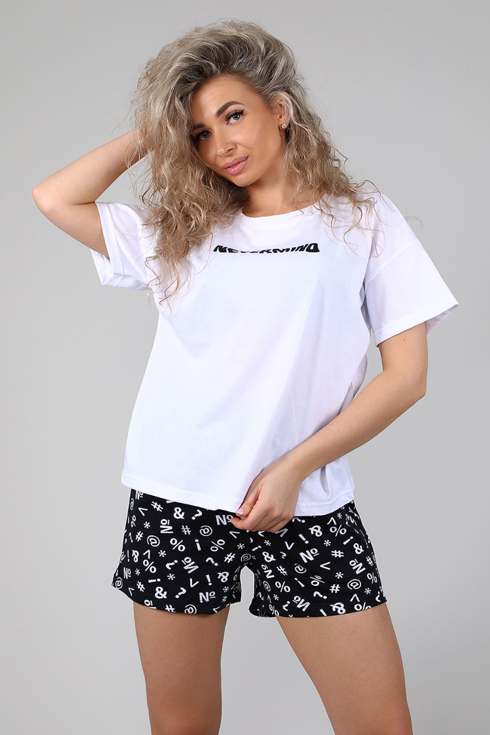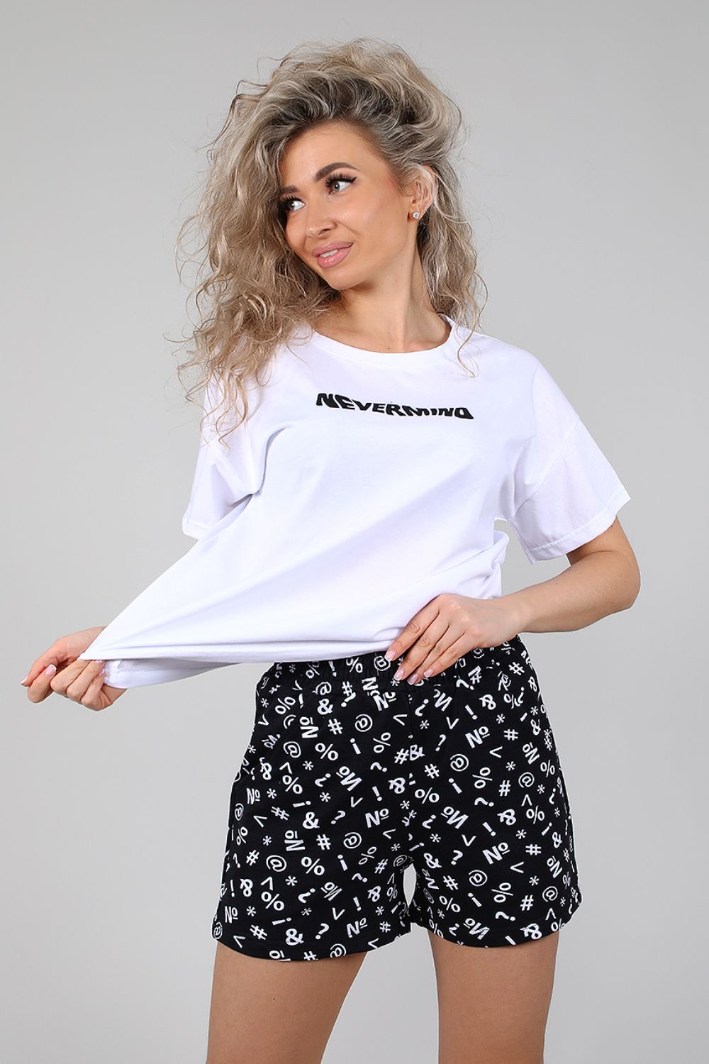 Женская пижама с шортами (рисунок хэштег) порадует вас своим модным стилем. . Футболка выполнена из трикотажного полотна кулирка ( хлопок 100%). Шорты с поясом и боковыми карманами, изготовлены из футера 2-х нитки ( хлопок 100%).