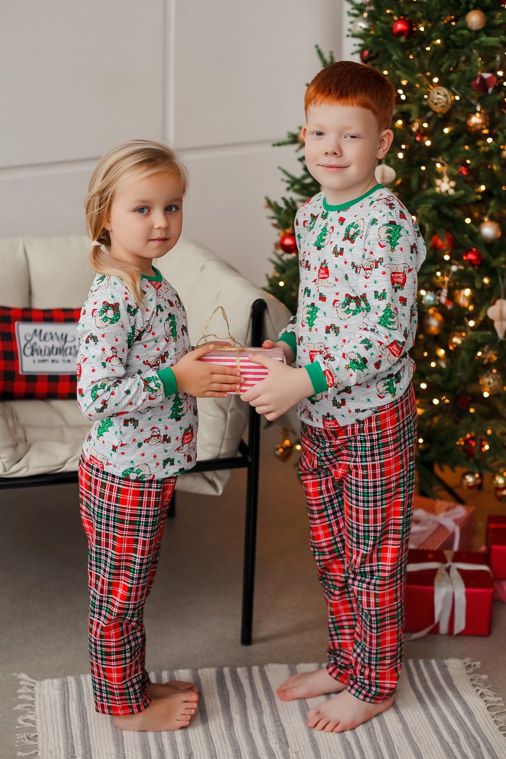 Отличный ПОДАРОК, благодаря ЯРКИМ и КРАСИВЫМ принтам! Мягкая и комфортная пижама детская - залог прекрасного отдыха и комфортного сна вашего малыша. Эта домашняя пижама предназначена как для мальчиков, так и для девочек. Комплект новогодний состоит из прямых брюк в клетку и лонгслив с длинными рукавами на манжете. Изготовлена полностью из 100% хлопка, что обеспечивает максимальную мягкость и комфорт для вашего ребенка. Главным достоинством белья оверсайз для сна является их гипоаллергенность и экологичность за счет использования безопасных материалов. Костюм домашний доступен в размерах от 92 до 128, так же 104 и 110, еще 116 и 122, что позволяет выбрать идеальную посадку для каждого ребенка. Также имеются подростковые размеры 134 и 140, чтобы подходили детям старше для подростков для парный фэмили лук. Эта модная пижама является отличным подарком для вашего ребенка, так как кофта и брюки клетчатая с интересным новогодним принтом. Костюм домашний идеально подойдет для ношения в садике и дома, перед сном и на новогоднюю фотосессию family look. Она не является байковой или флисовой (флис), поэтому не будет слишком теплой для вашей девочки. В ней ваш ребенок будет чувствовать себя уютно и комфортно во время сезона. В нашей коллекции Зима 2025 пижама для девочки представлена пока в одном цвете - красно-серый( клетка), но мы тщательно следим за тенденциями моды и пополняем свой магазин новинками и распродажа такие вещи как теплая и плюшевая, шелковая или розовая, аниме или с длинным рукавом, с котиками или кигуруми, пижама в клетку или единорог, уэнсдей или эльза (холодное сердце), барби или человек паук, олень или пингвин, рождественская или гринч, сова и символ нг. Одежда на вайлдберриз для детей магазина CLAS-CO стильная и недорогая. Обращаем Ваше внимание, фото выполнено в условиях студийного освещения, при естественном свете цвет товара может иметь другие оттенки!! Пижама новогодняя от бренда CLAS-CO - отличный подарок для ваших детишек!