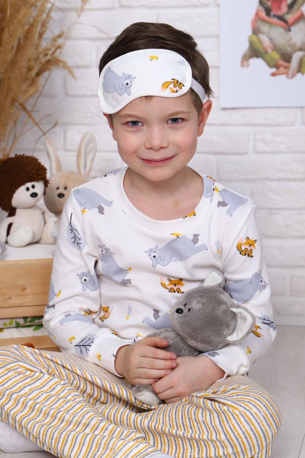 Комфортная пижама с длинным рукавом для мальчика или девочки с ярким модным принтом "Зверята", рукава и штанины на манжете. Материал очень мягкий и в то же время износостойкий, не скатывается и не вытягивается. В комплект входит так же маска для сна. Идеальный подарок на день рождения, новый год, 23 февраля, 8 марта для сына или внука.