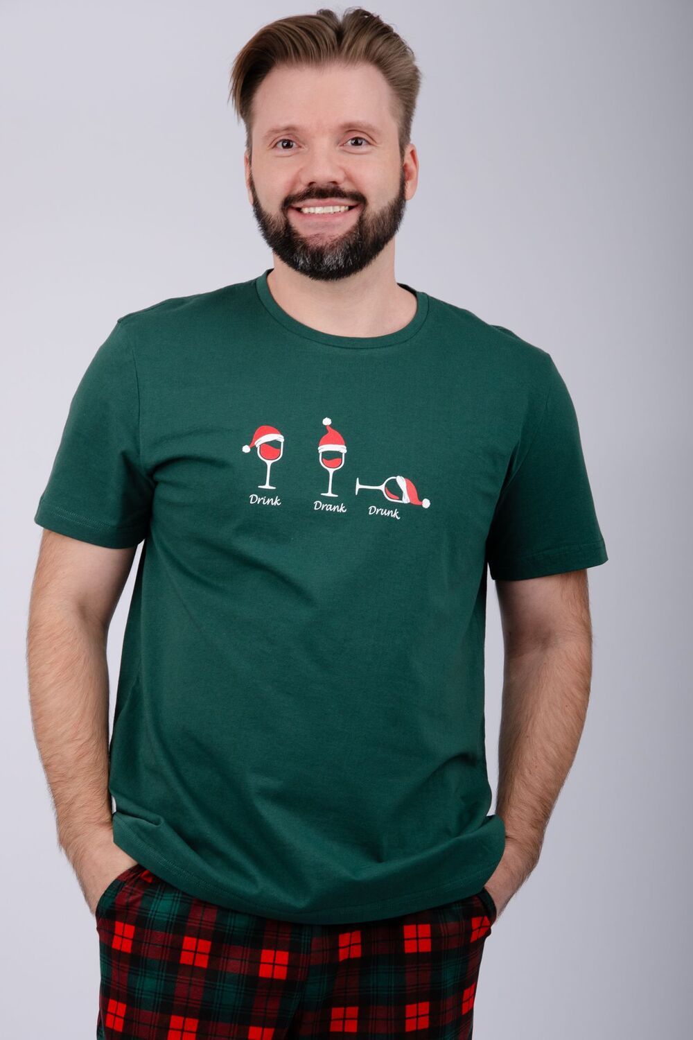 Комфортная мужская пижама из 100% хлопка - брюки с боковыми карманами, на эластичном поясе и футболка с коротким рукавом и стильным принтом на полочке.