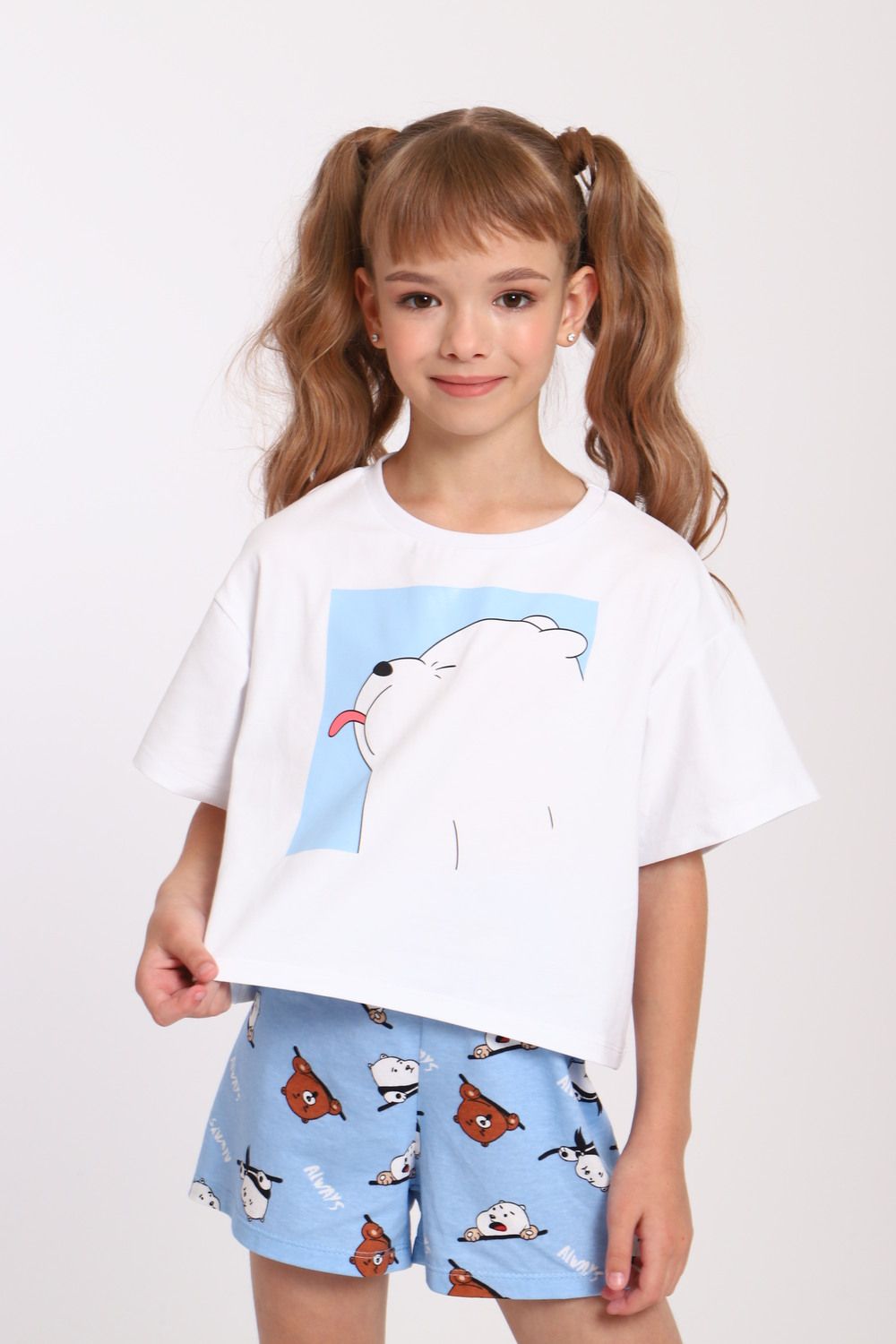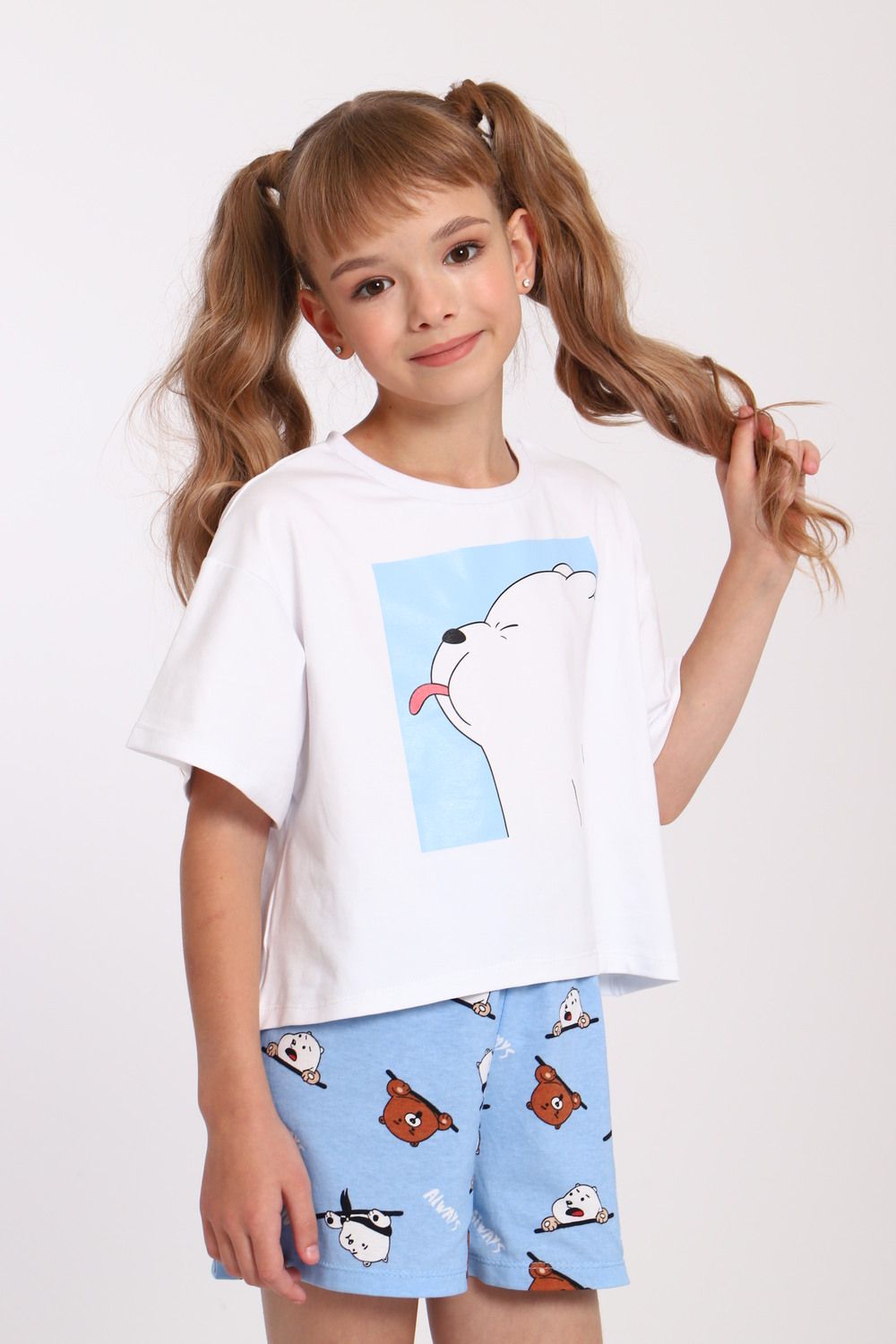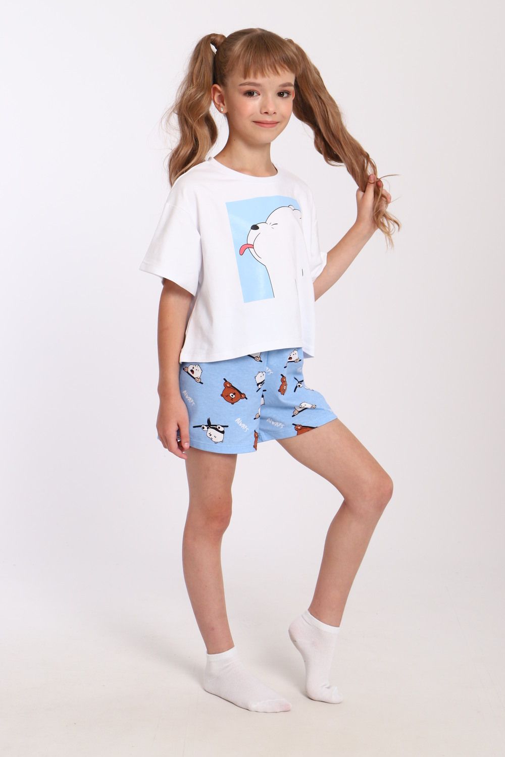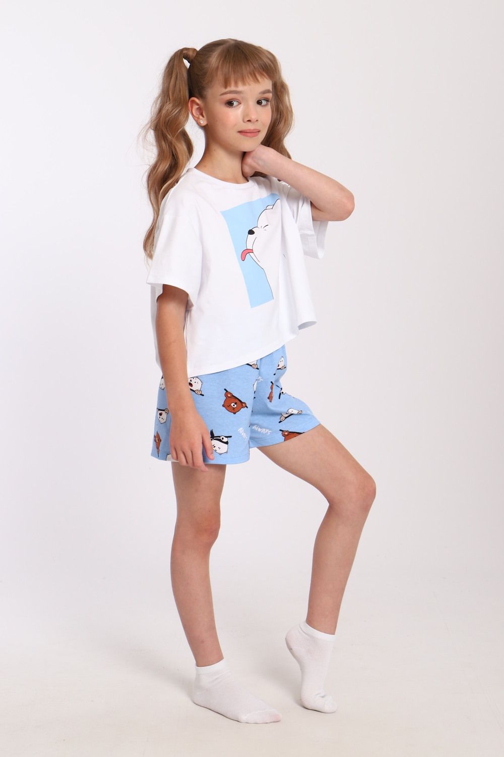 Пижама для девочки Хулиган арт. ПД-019-069 - белый/голубой
