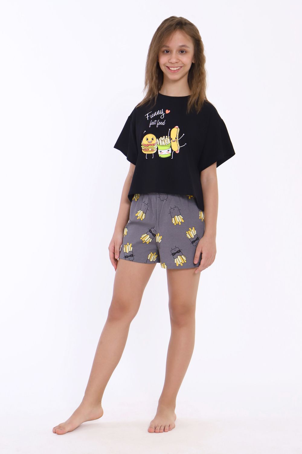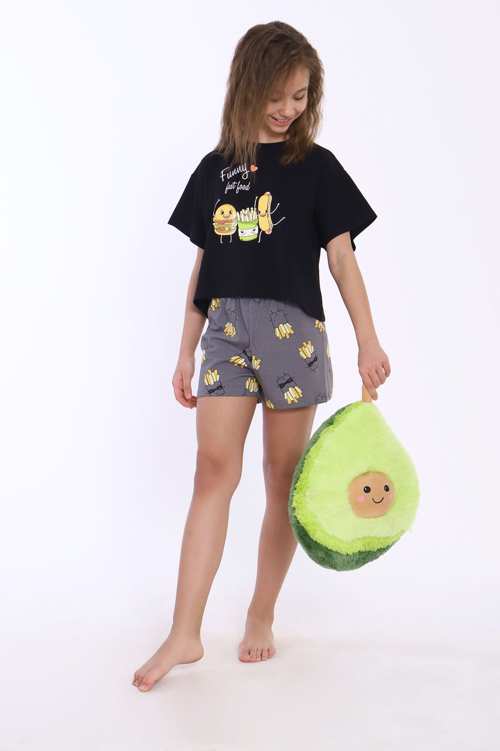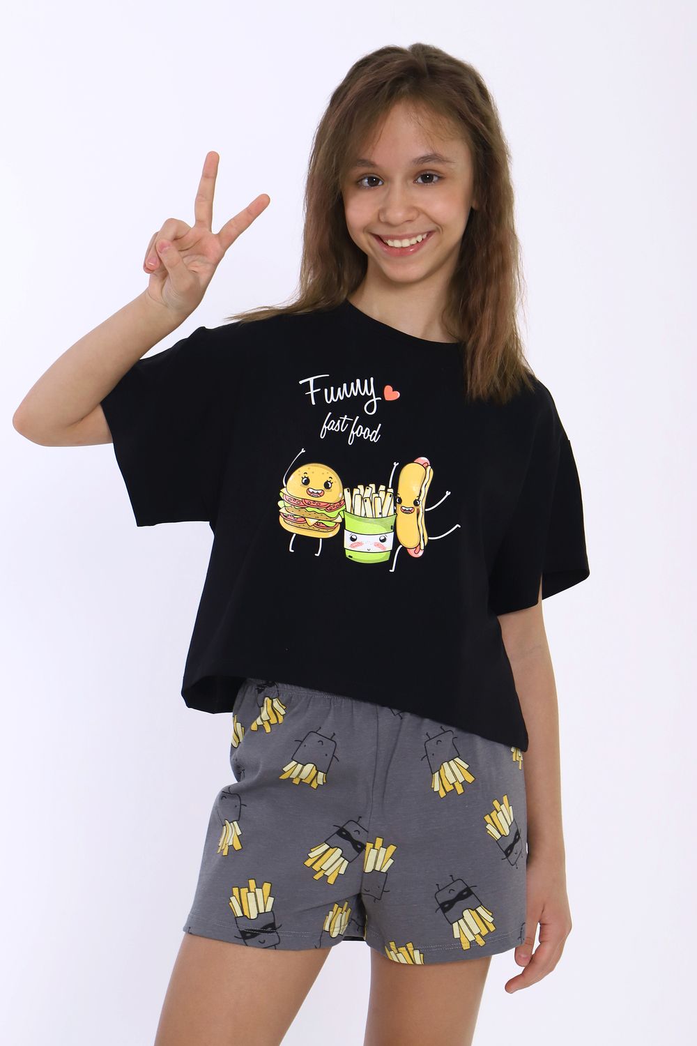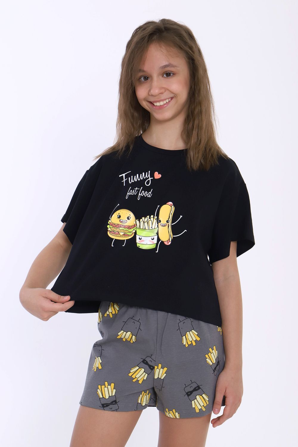 Пижама для девочки Картошка фри арт. ПД-019-046 - черный/серый
