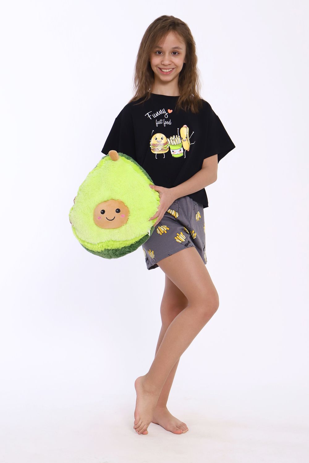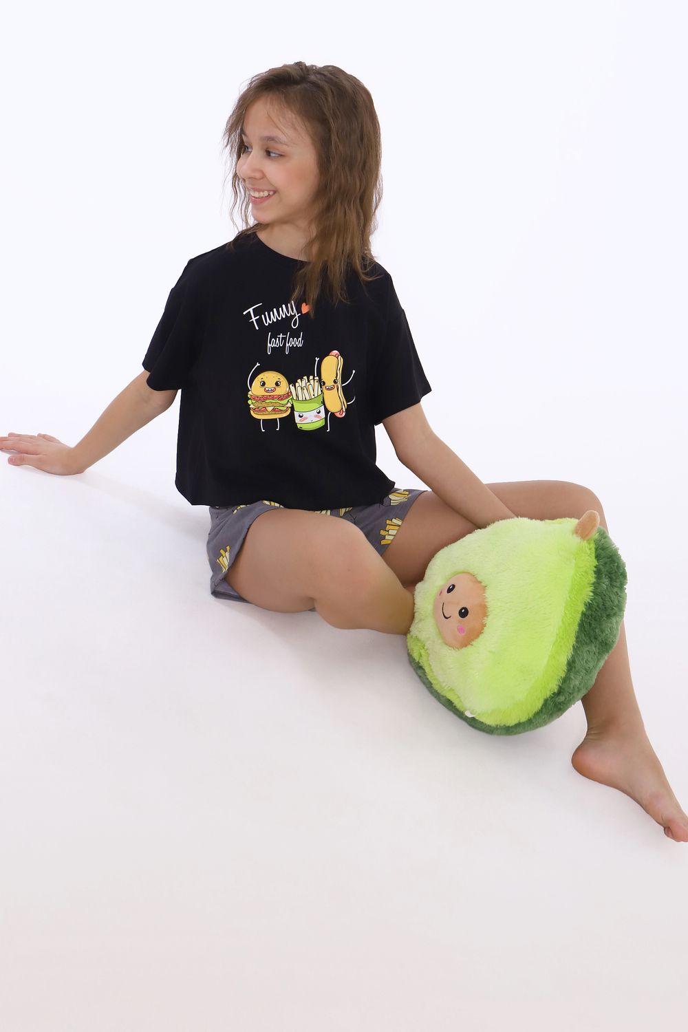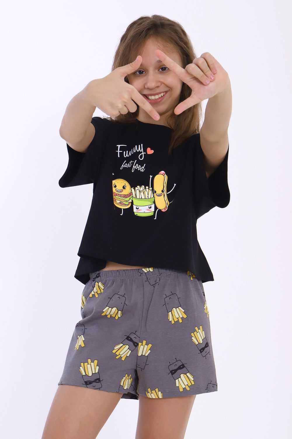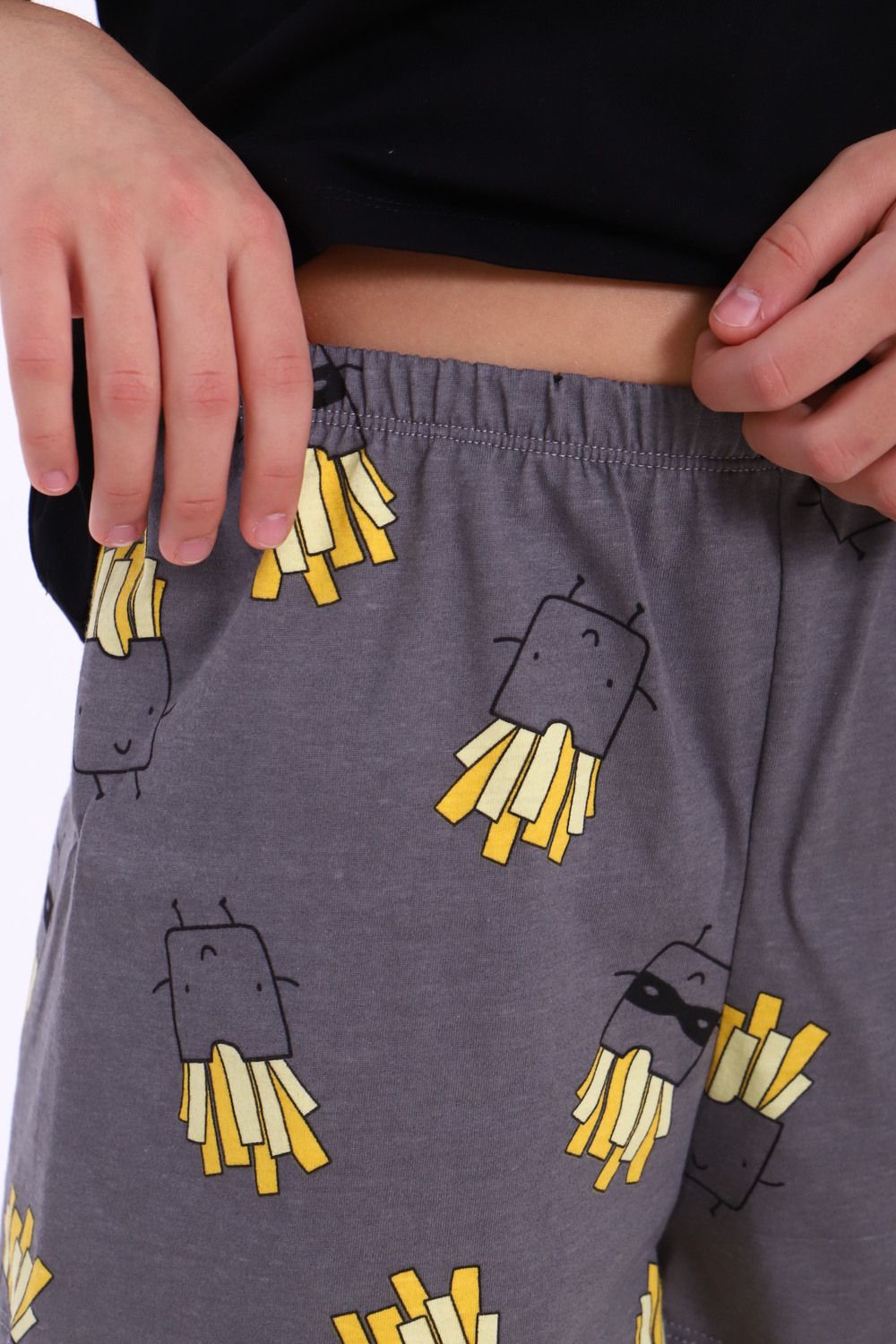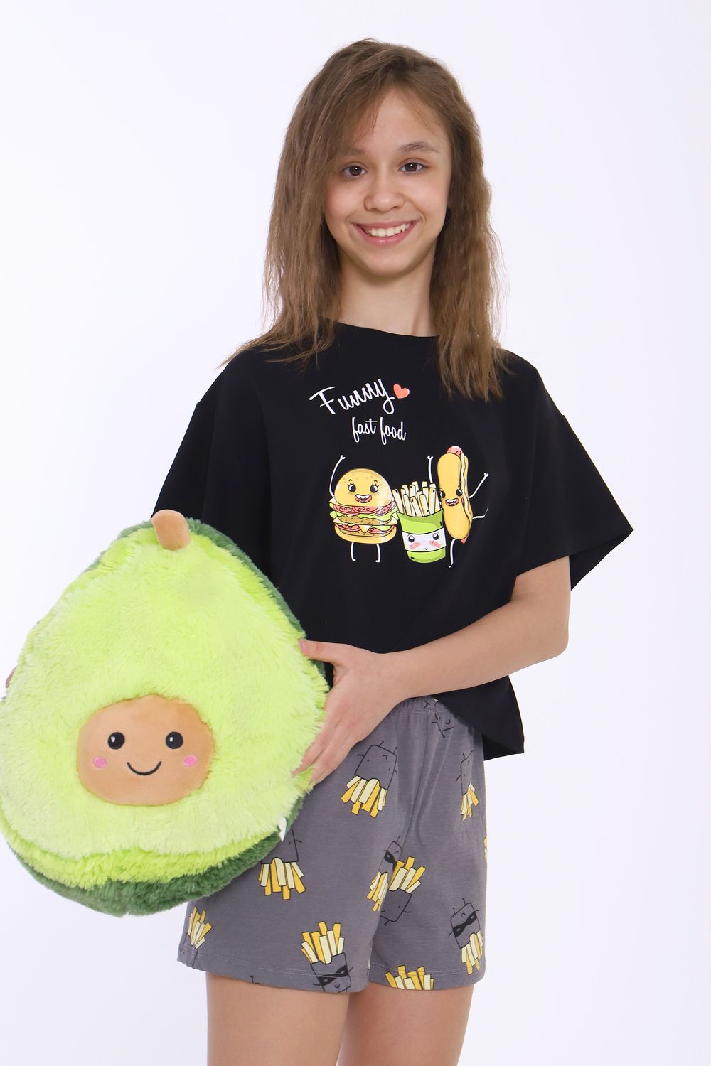 Пижама для девочки Картошка фри арт. ПД-019-046 - черный/серый