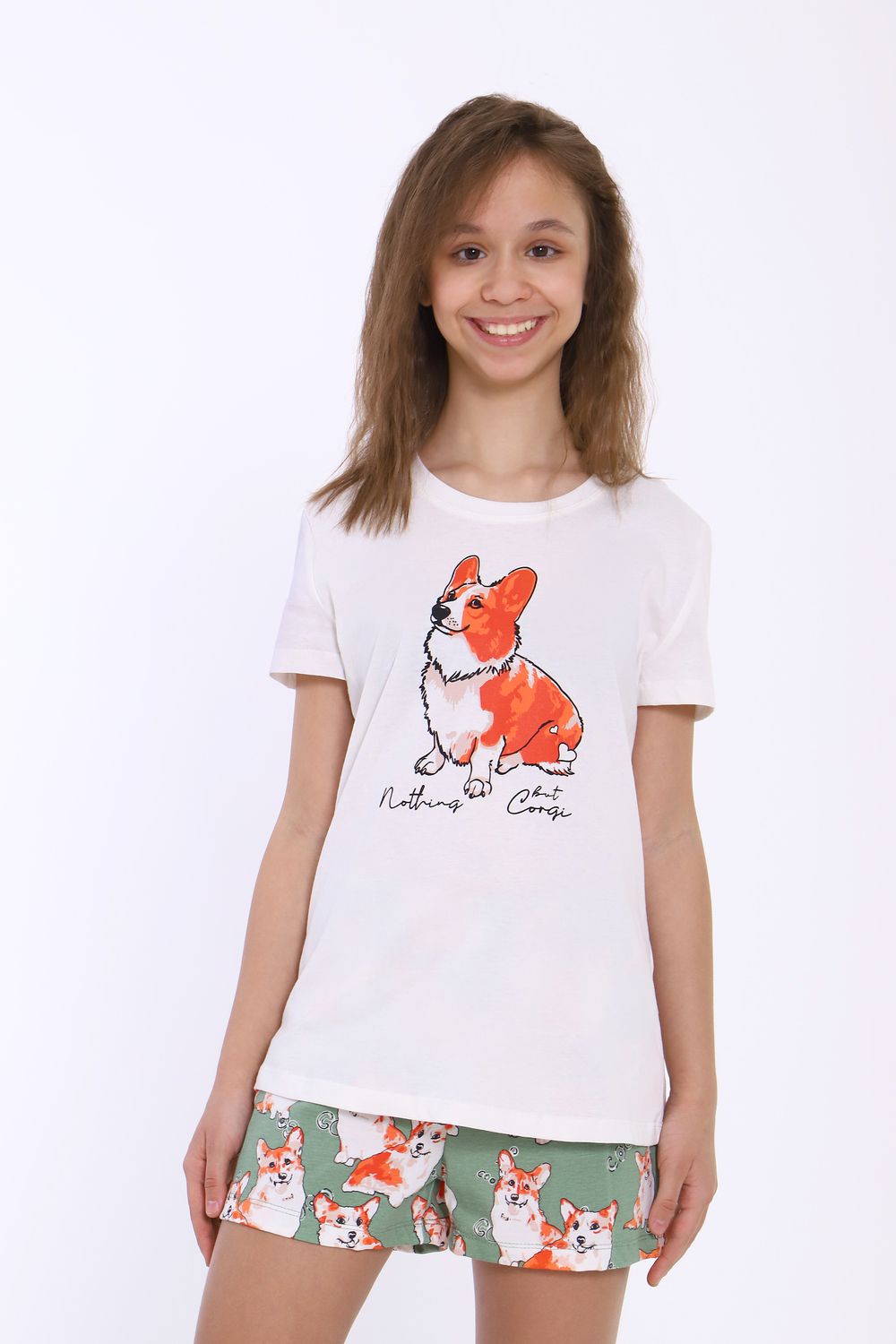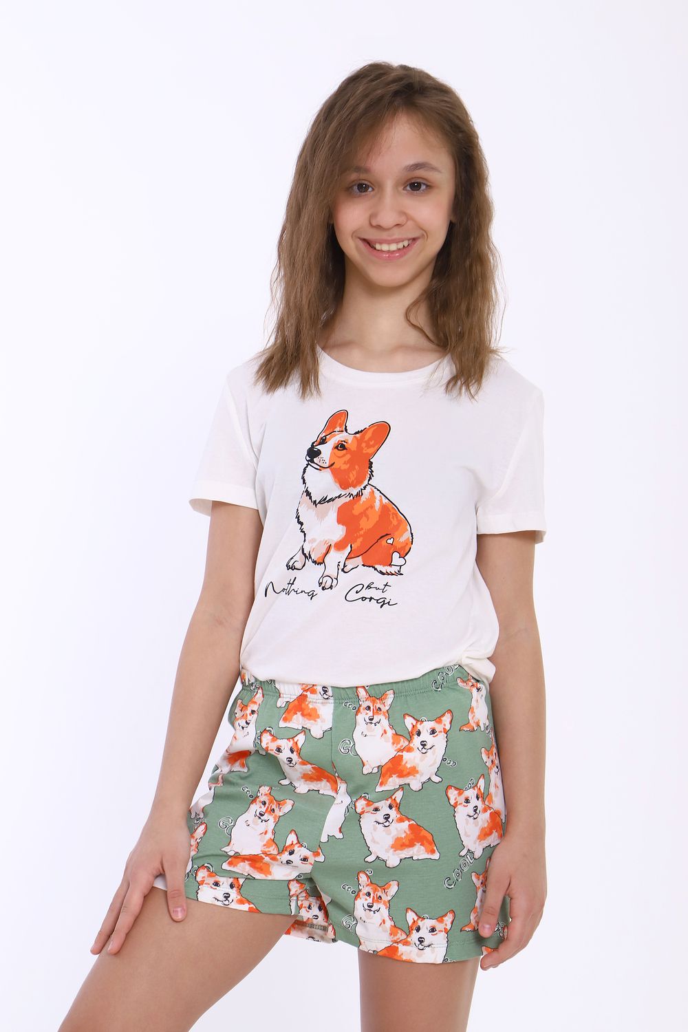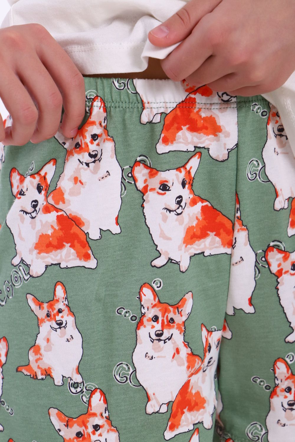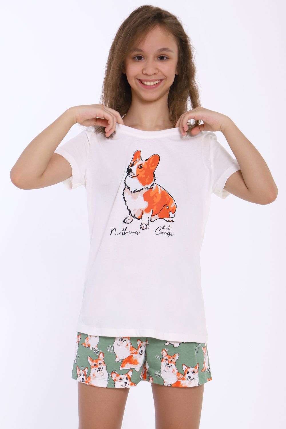 Пижама для девочки Корги на зеленом арт. ПД-023-062 - крем
