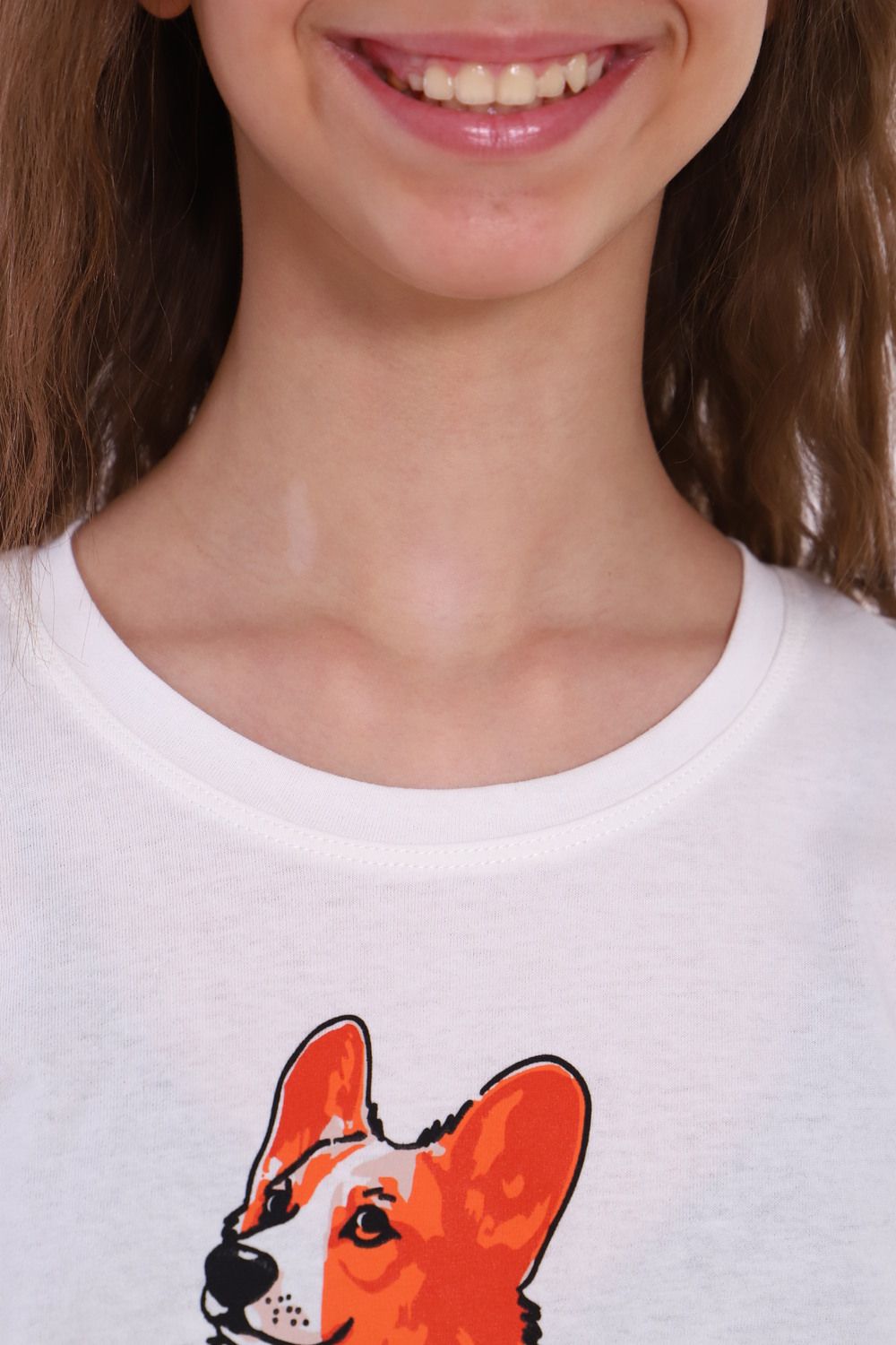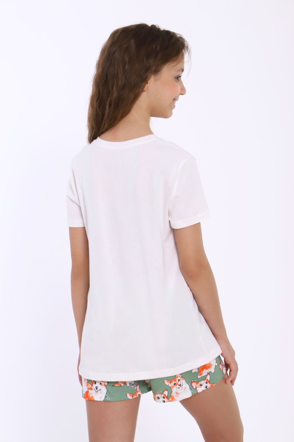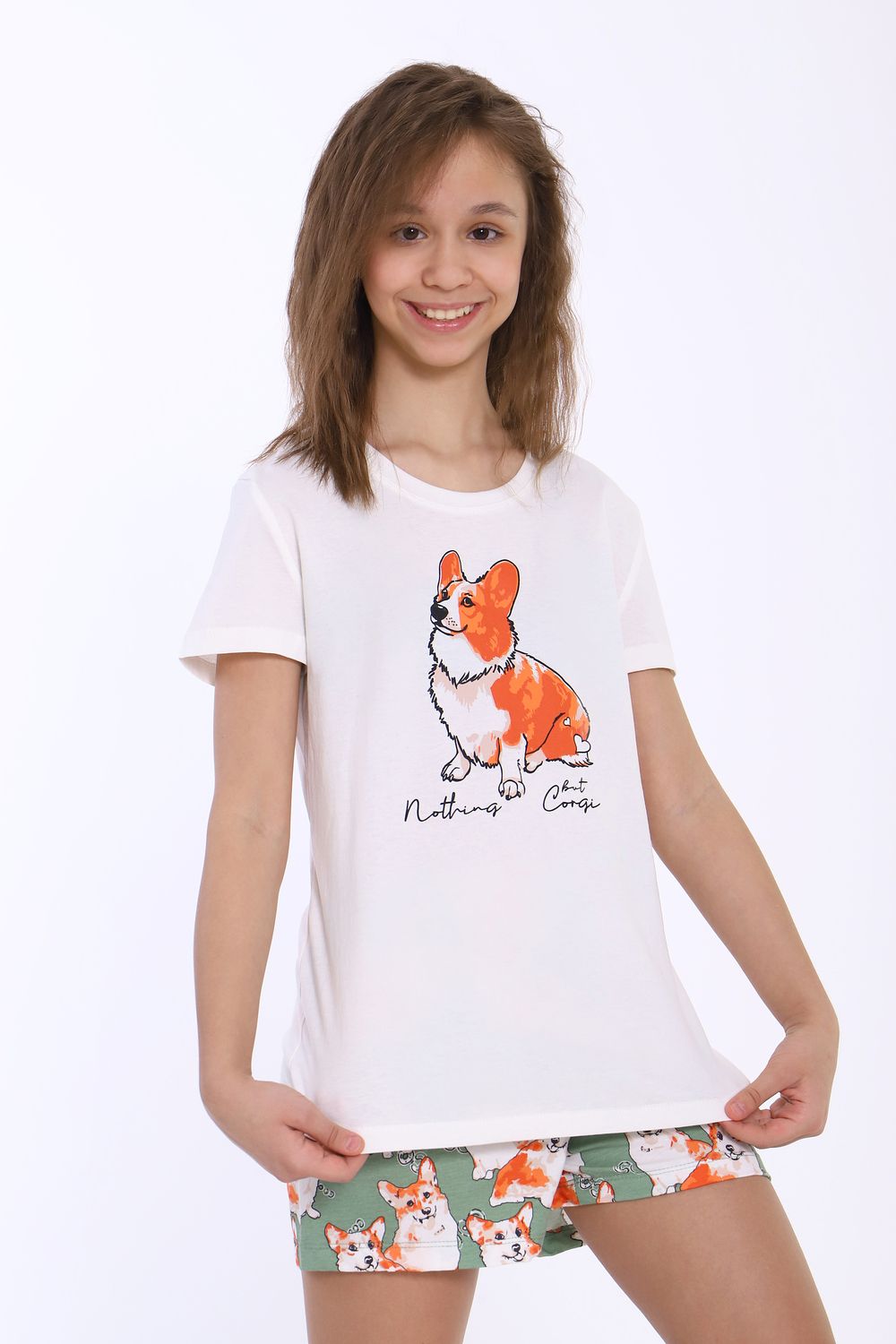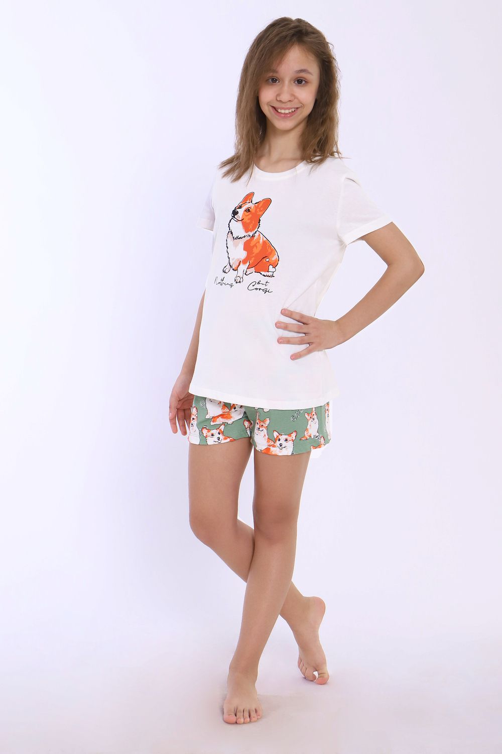 Пижама для девочки Корги на зеленом арт. ПД-023-062 - крем