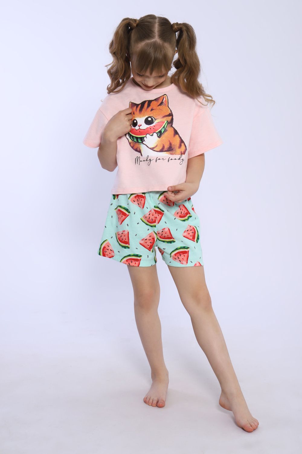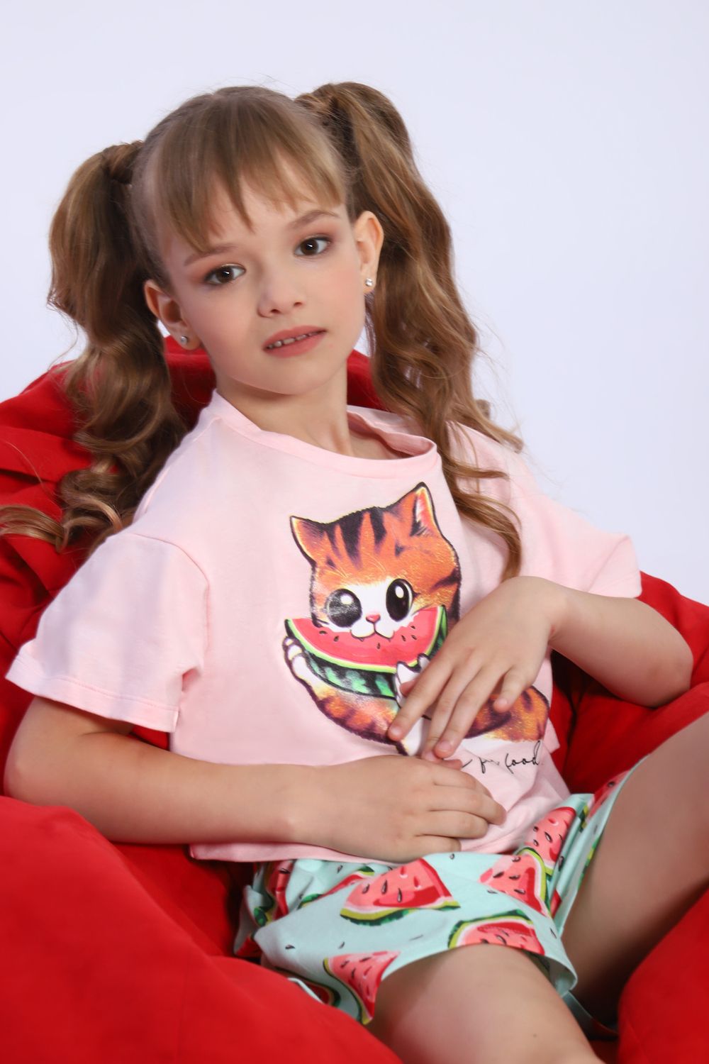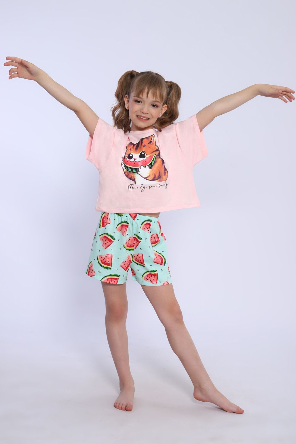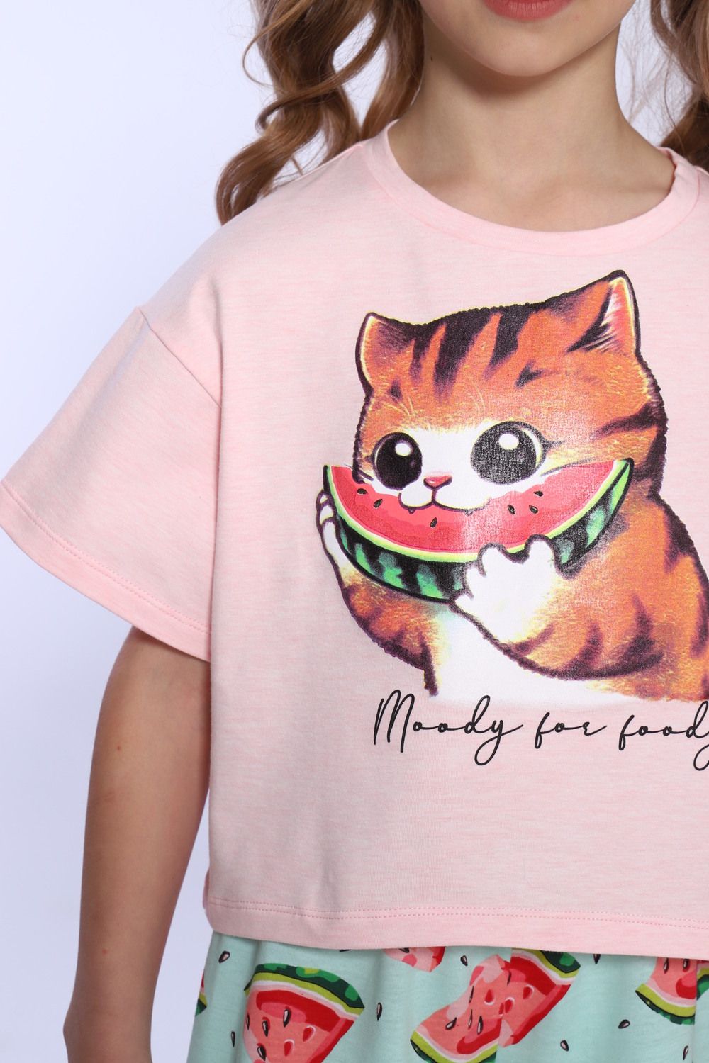 Пижама для девочки Кот-арбуз арт ПД-019-067