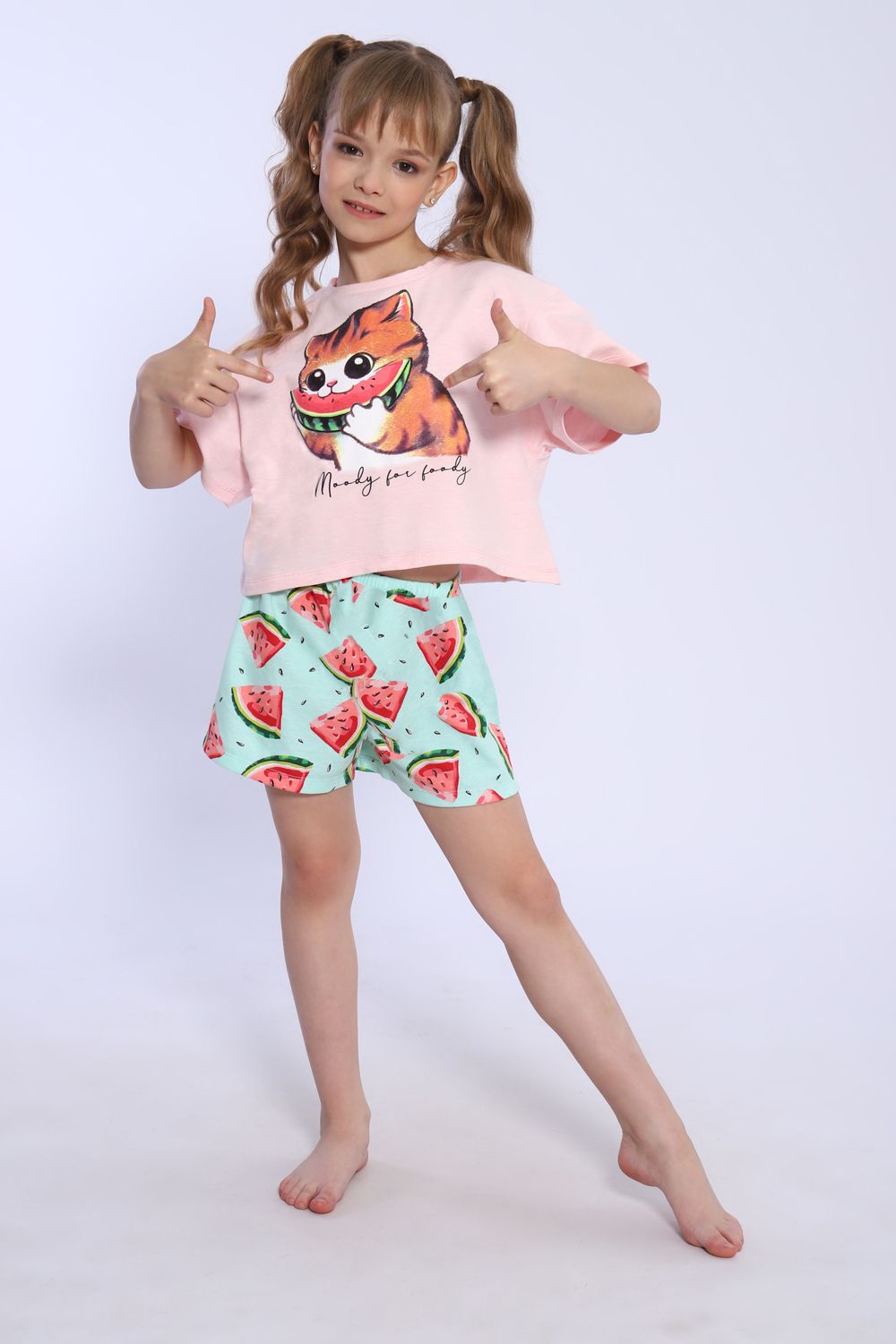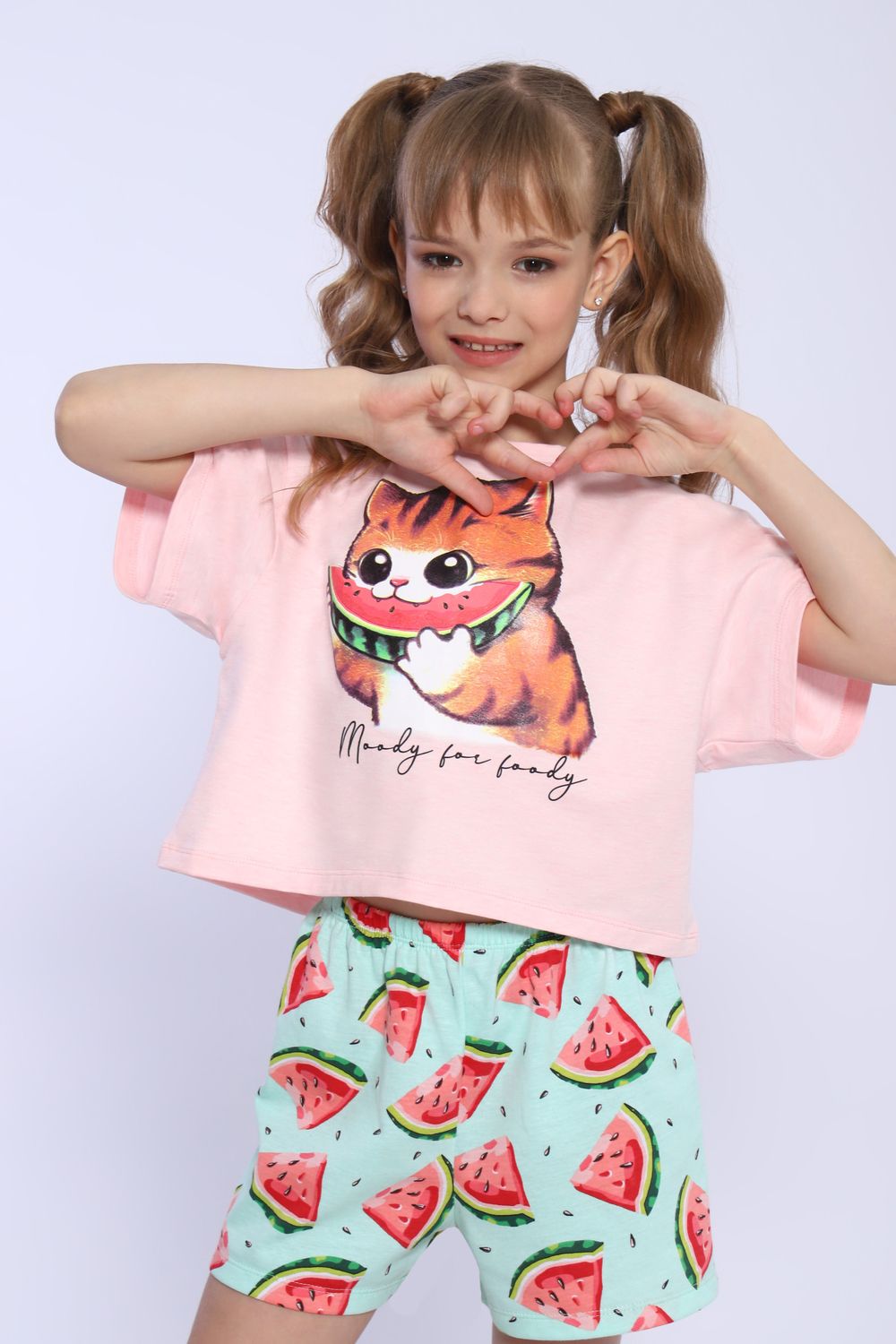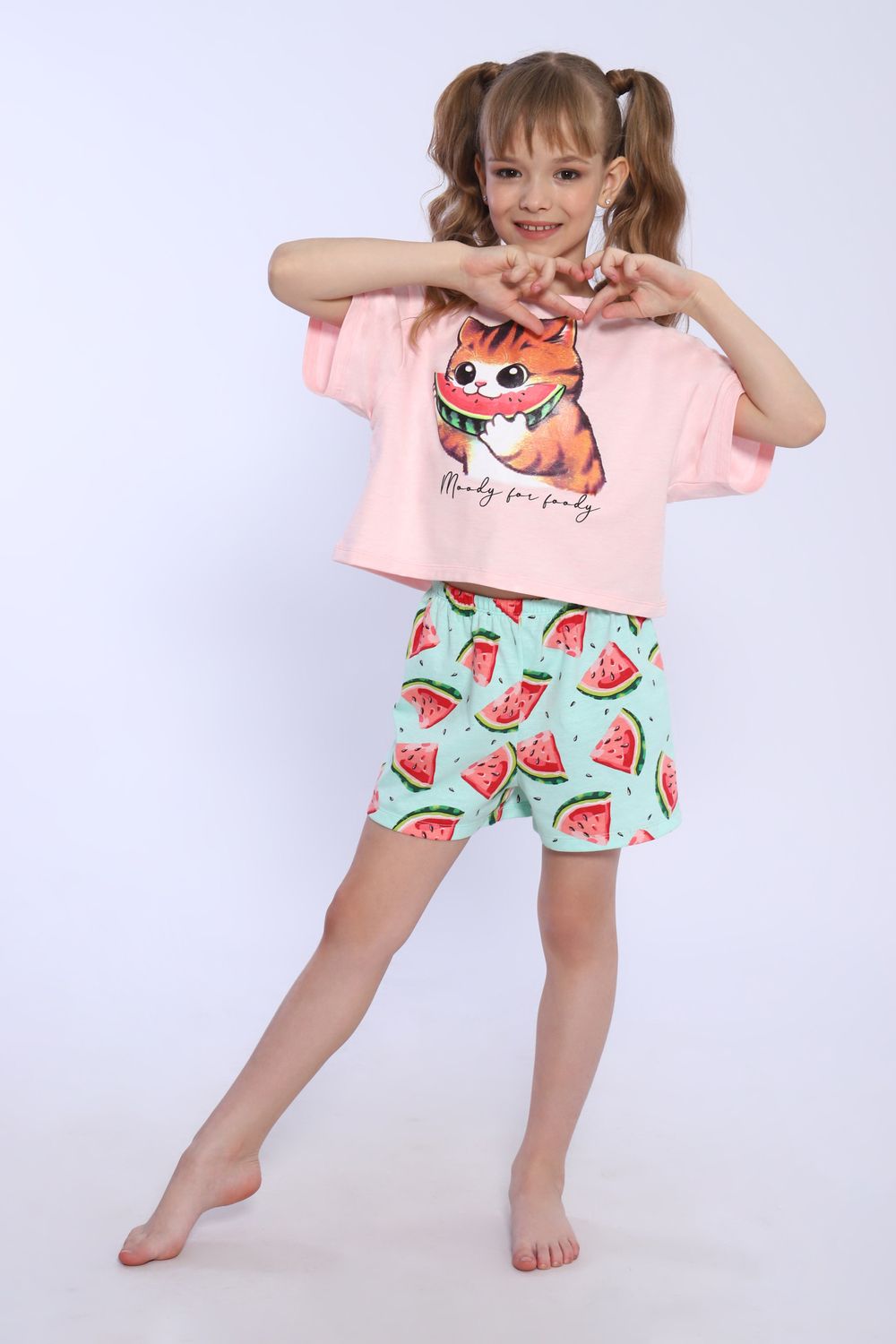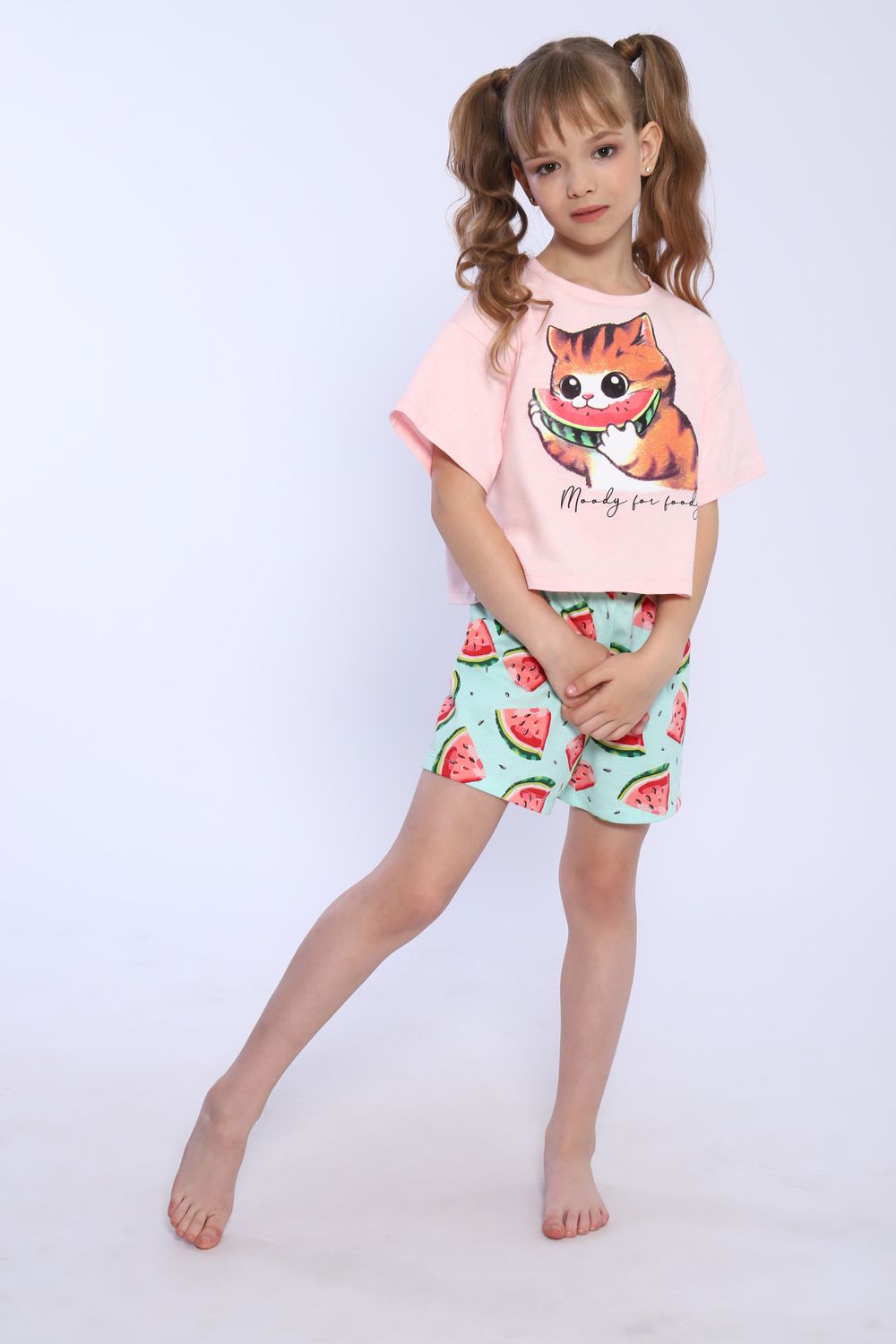 Пижама для девочки Кот-арбуз арт ПД-019-067