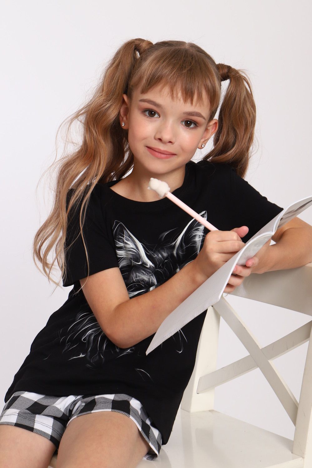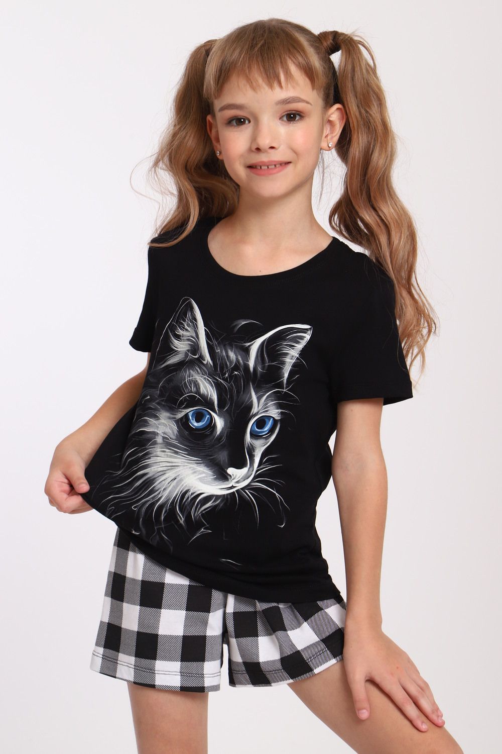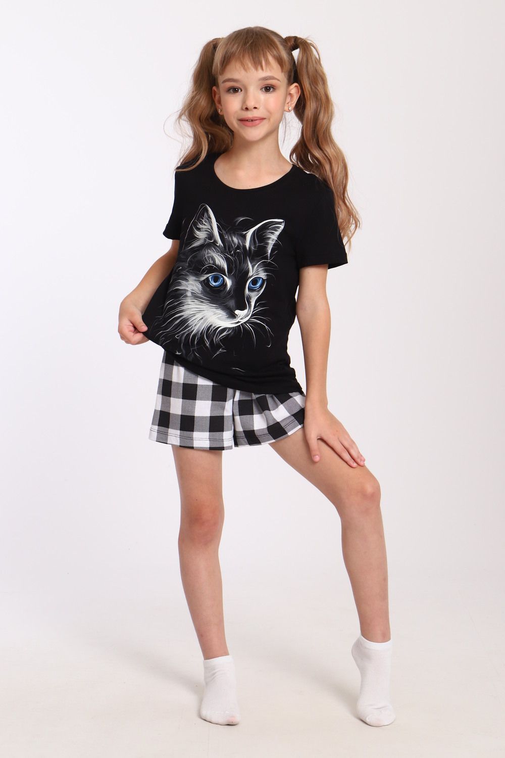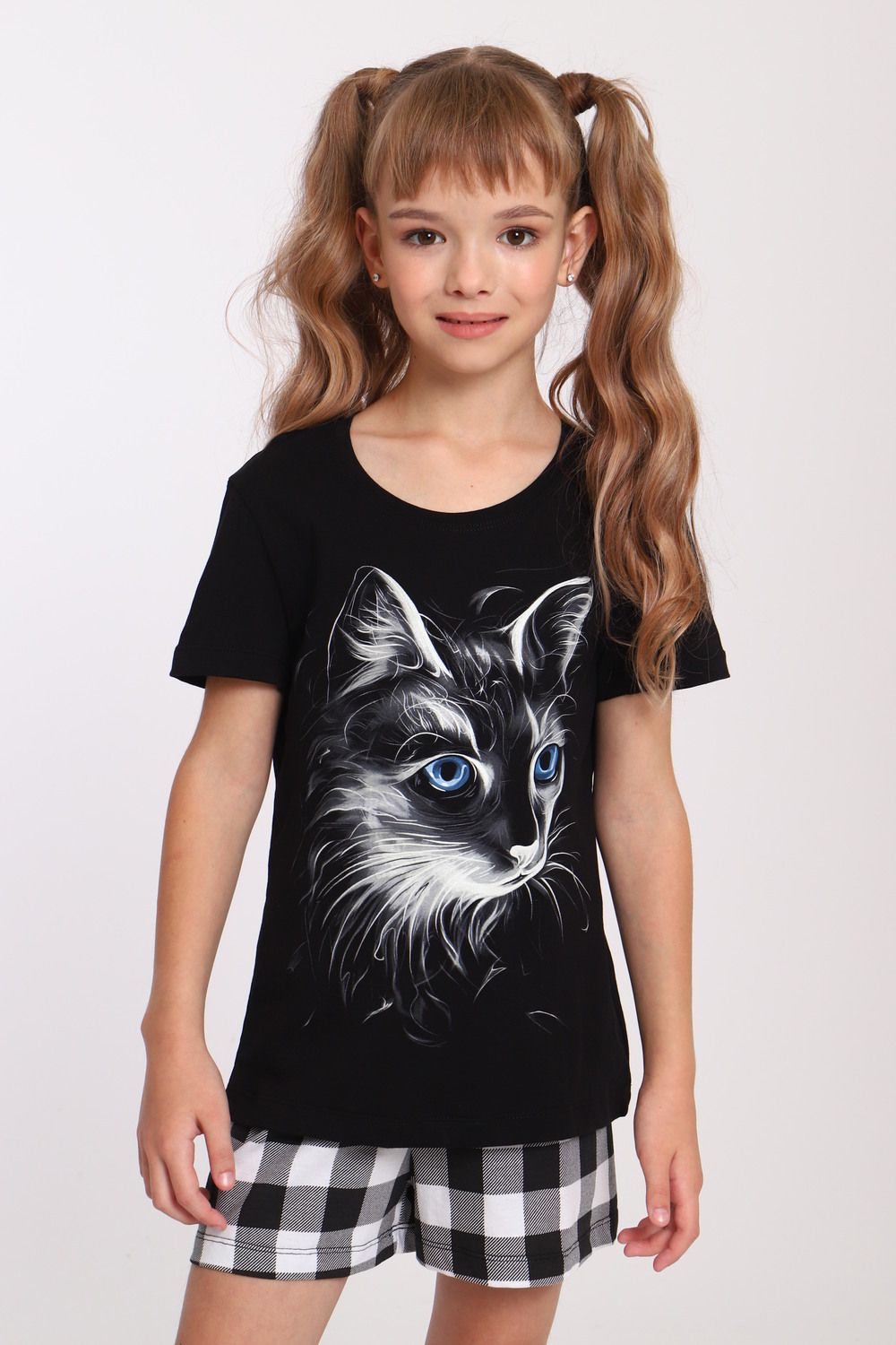 Пижама для девочки Кот светящийся Арт.ПД-009-070 - черный