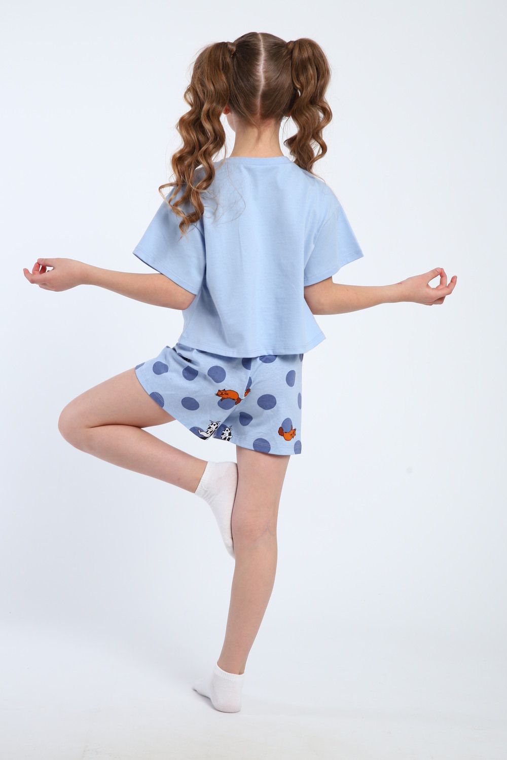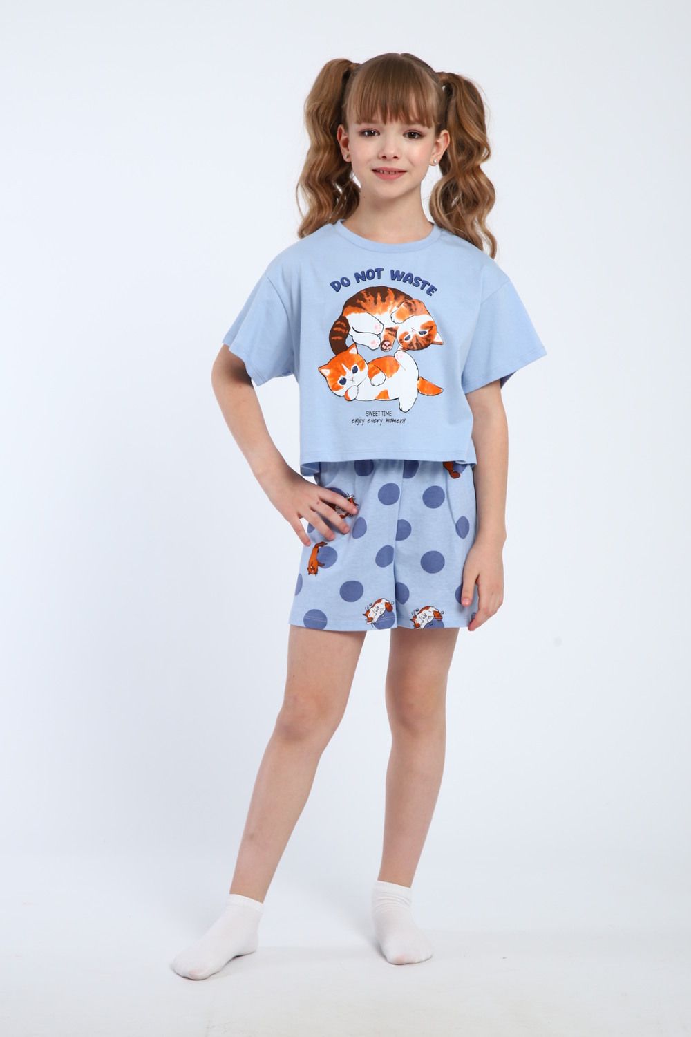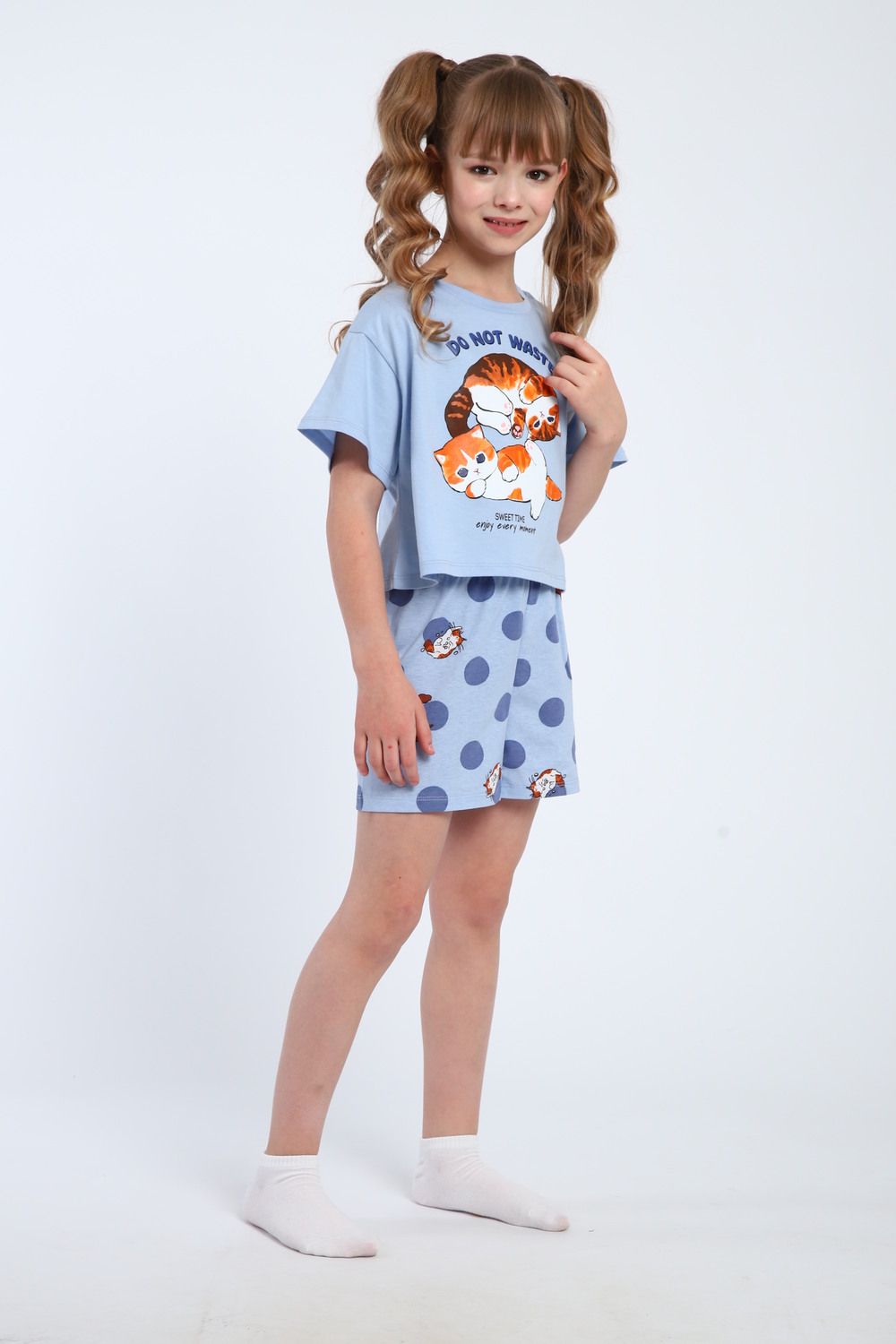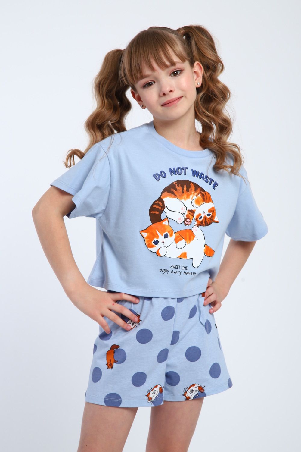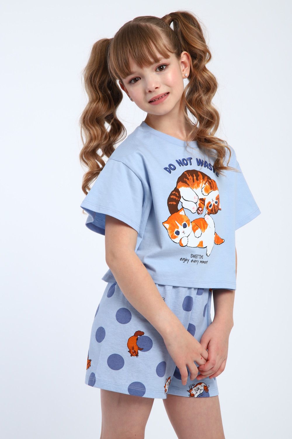 Пижама для девочки Котята ПД-019-077 - голубой/голубой