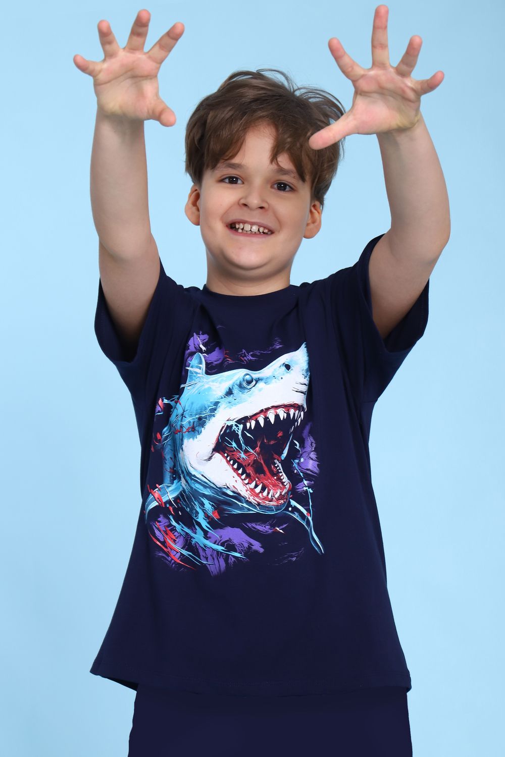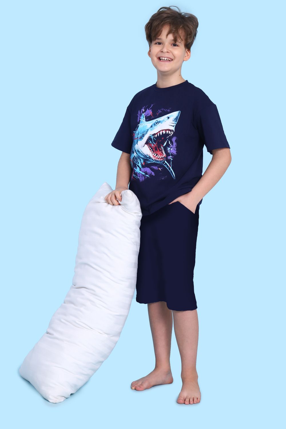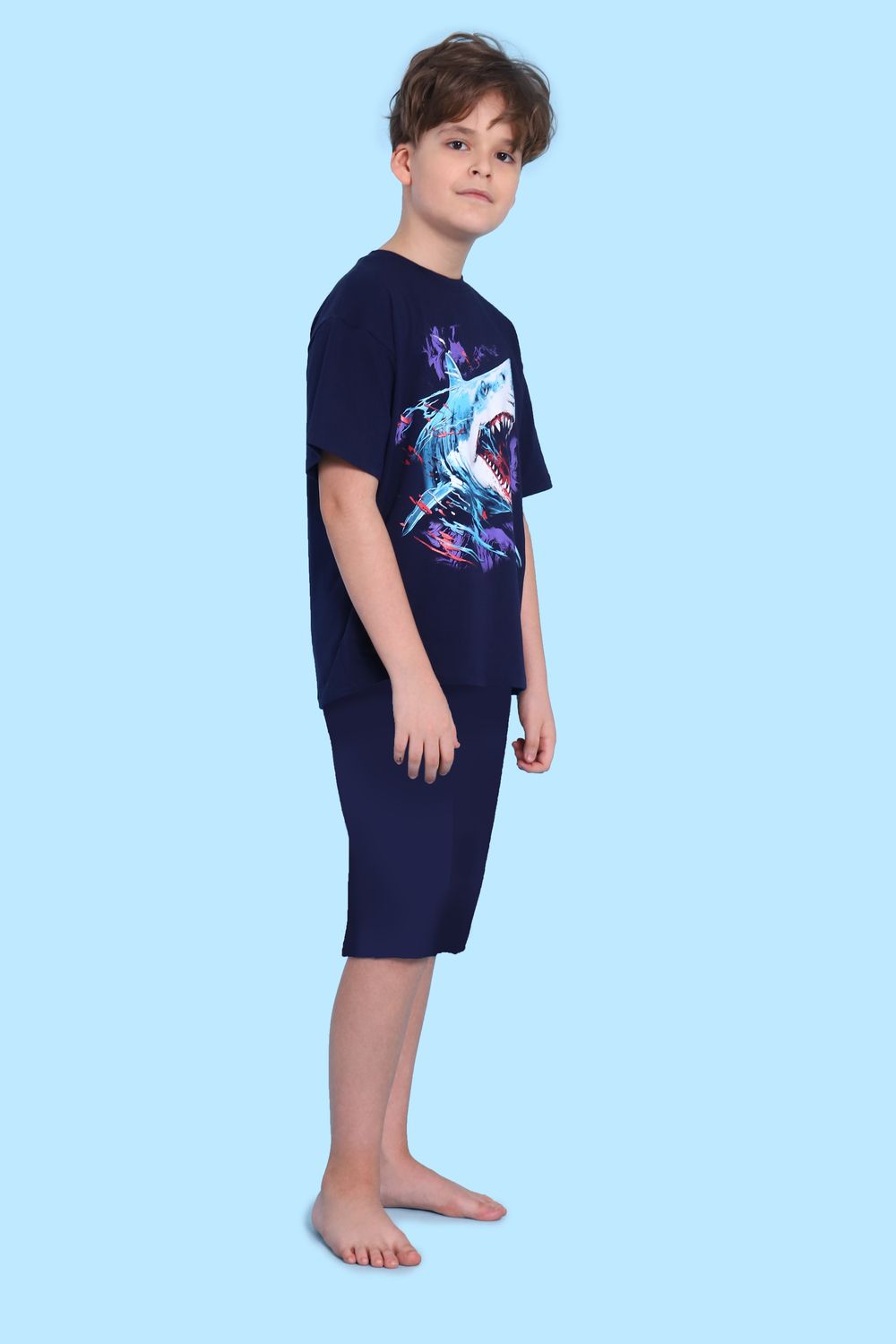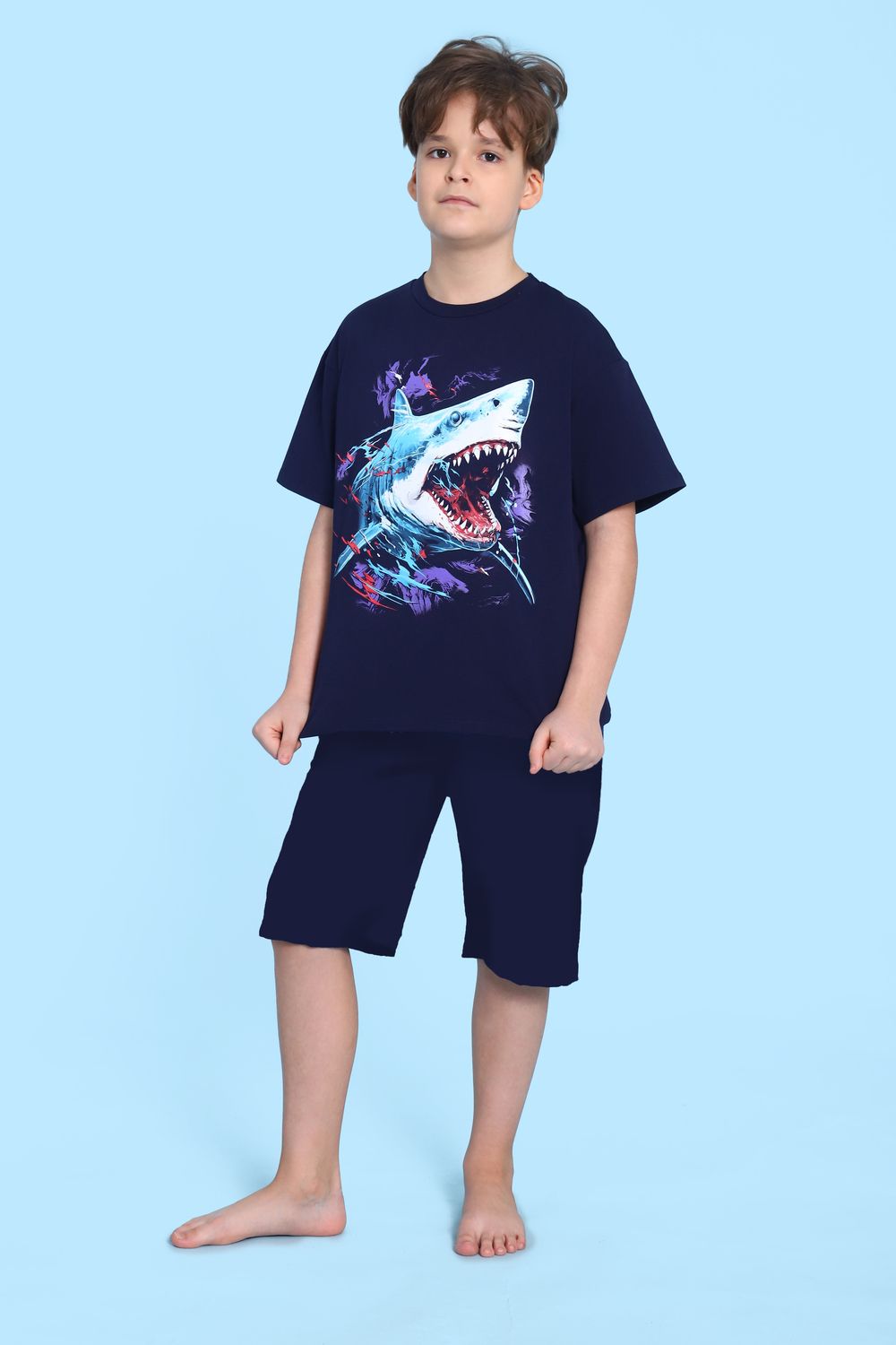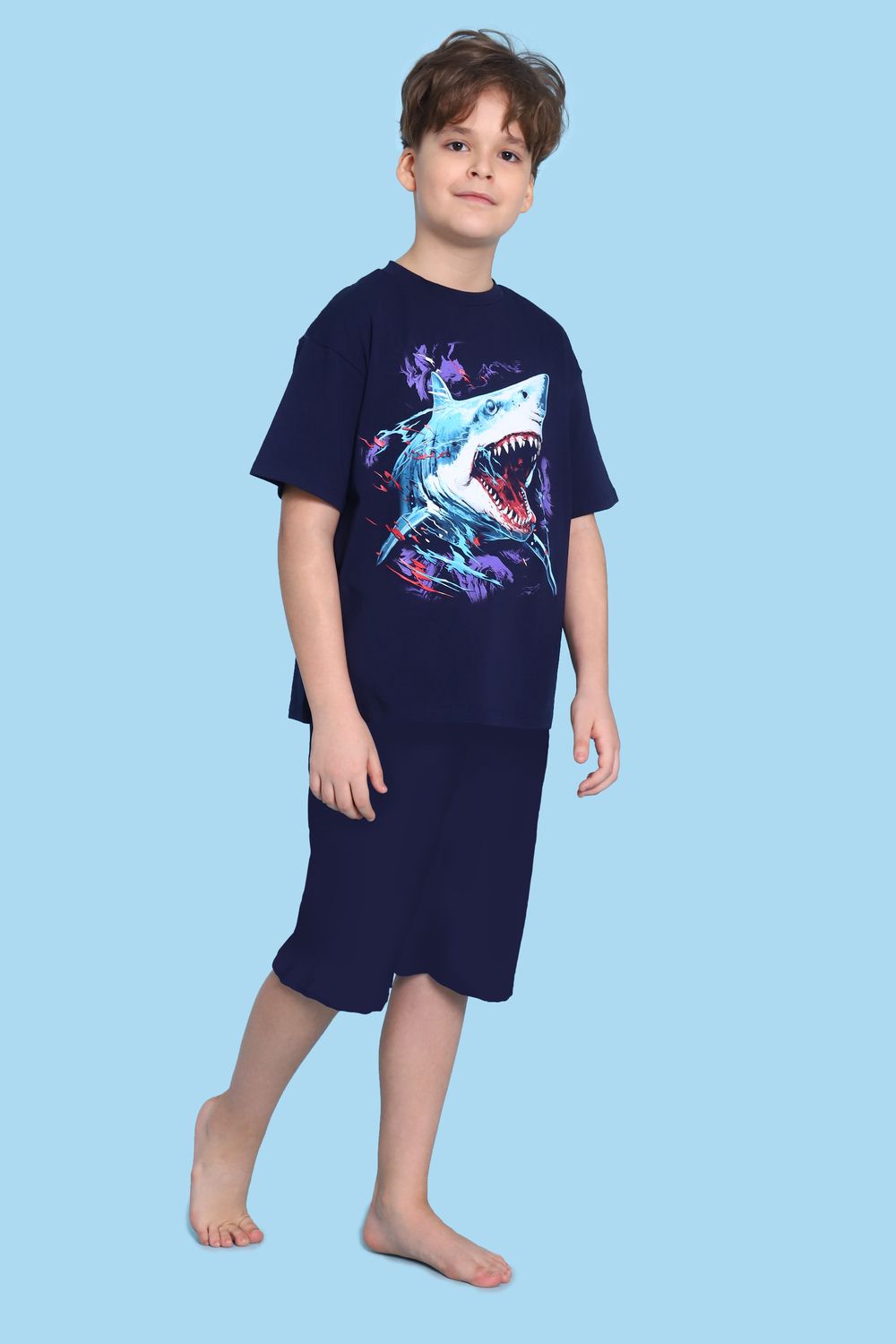 Пижама для мальчика Акула арт. ПМ-022-058 - синий/синий