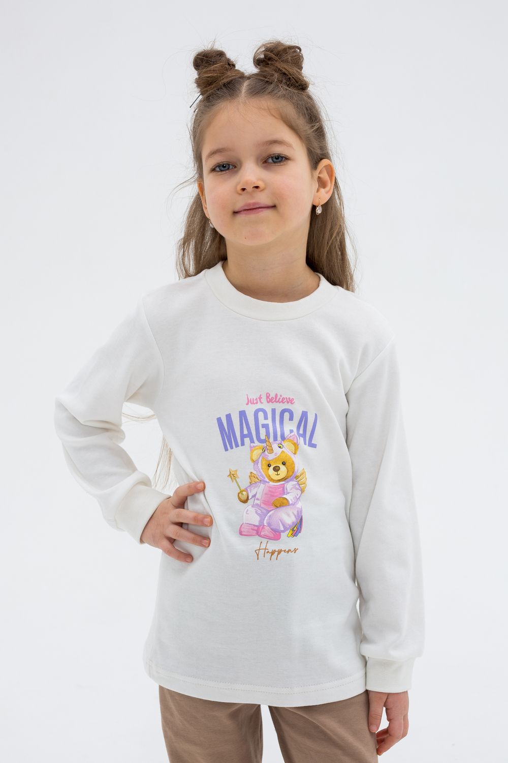 Пижама интерлок "Магия" предназначена для девочек, выполнена из интерлока (100% хлопок) ..Принт на джемпере, нанесённый методом шелкографии. Материал средней плотности, нежный и эластичный, пропускает воздух и сохраняет тепло. Джемпер с длинным рукавом , штанишки на манжете. Для сохранения первоначальных свойств изделия, очень важно соблюдать рекомендации по уходу за изделием, указанные на этикетке. Продукция сертифицирована.