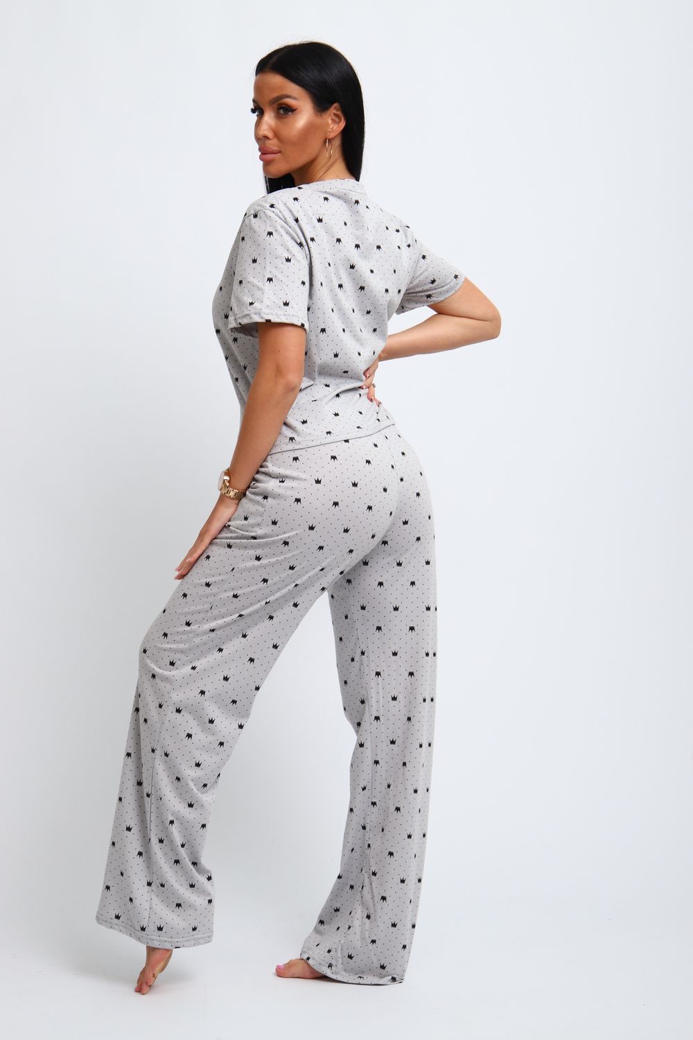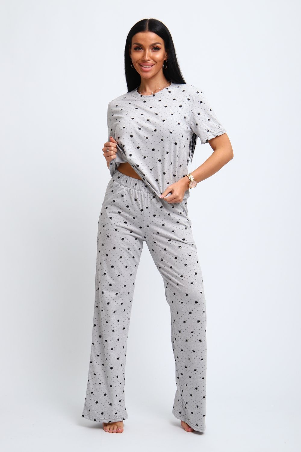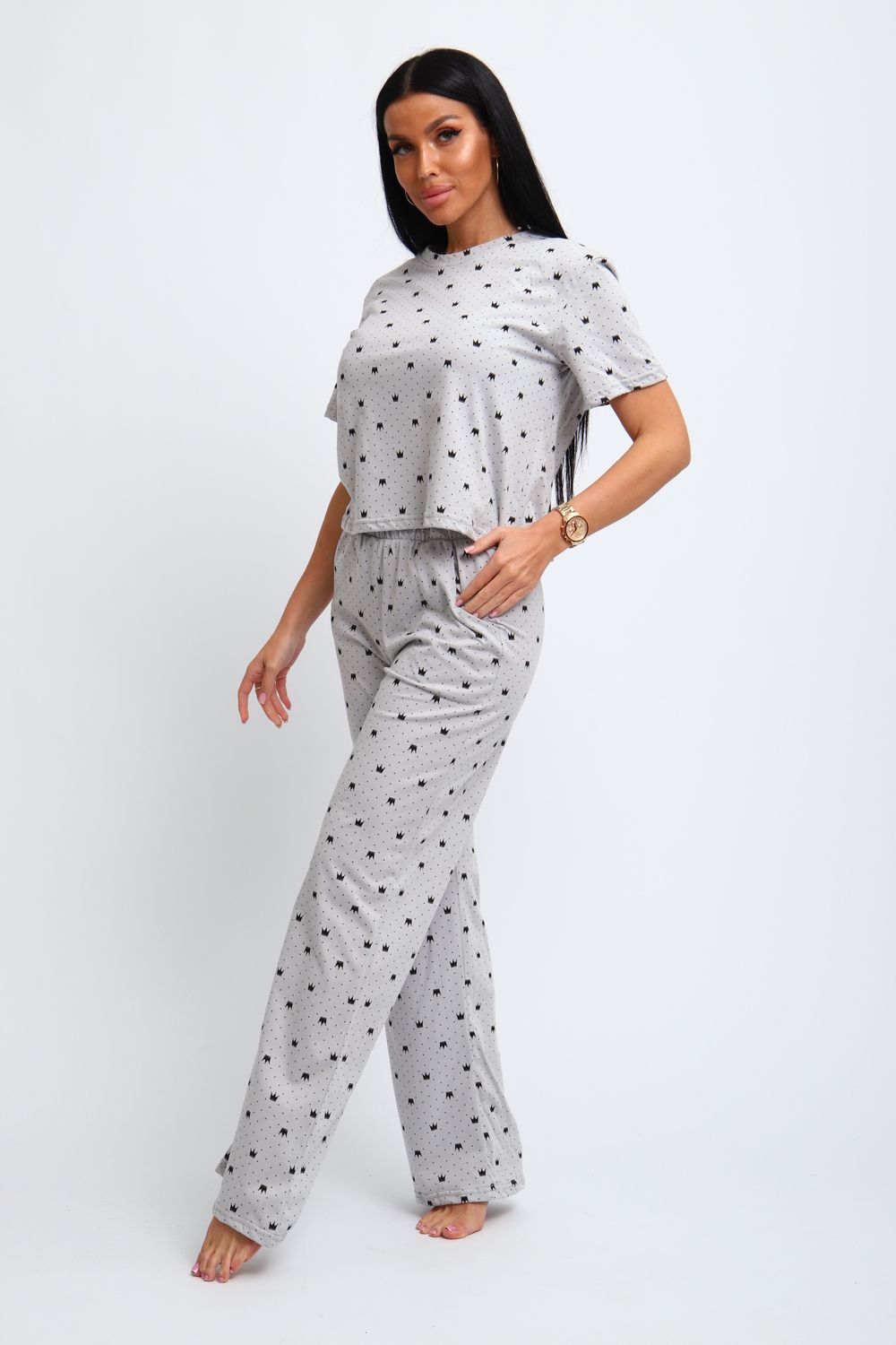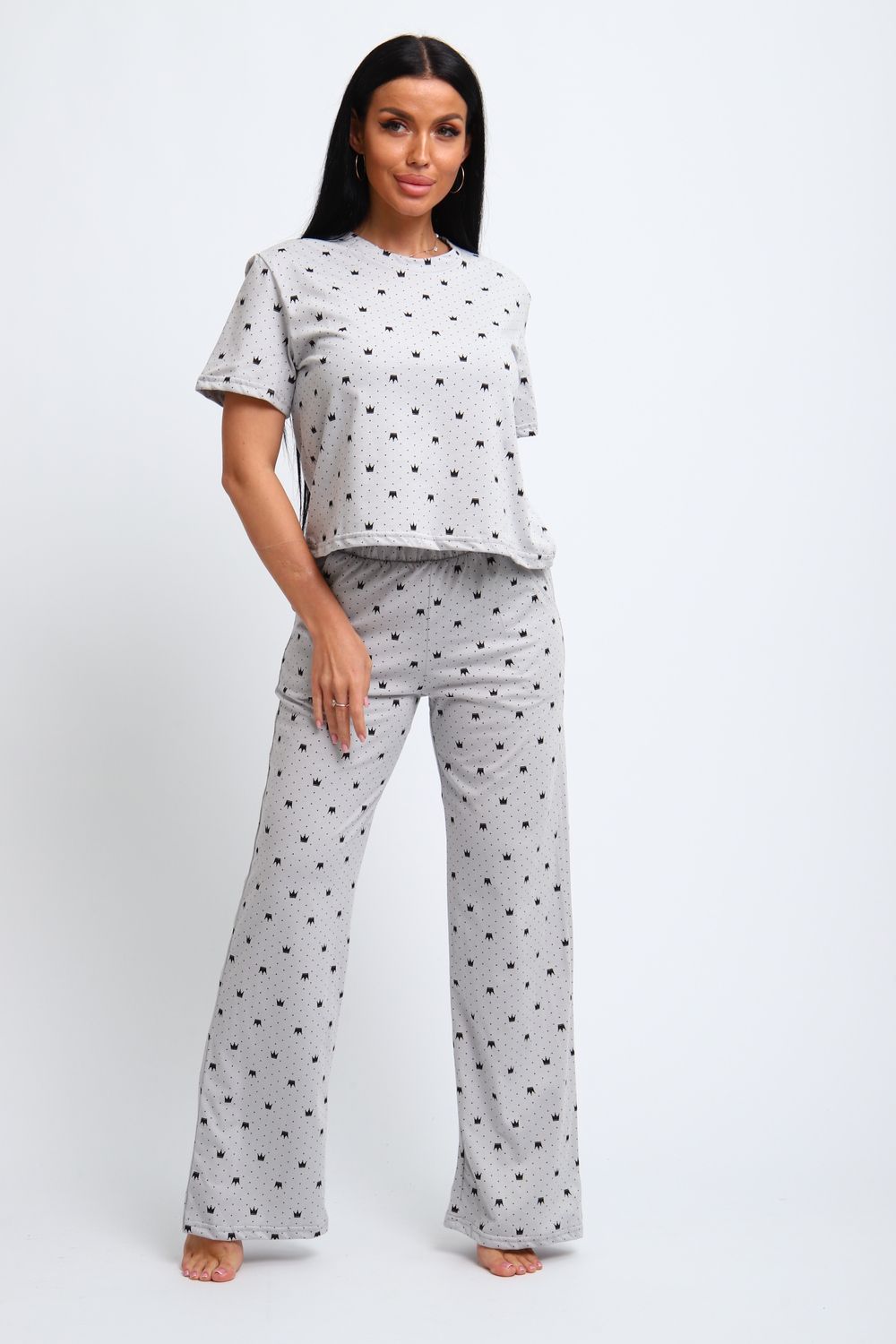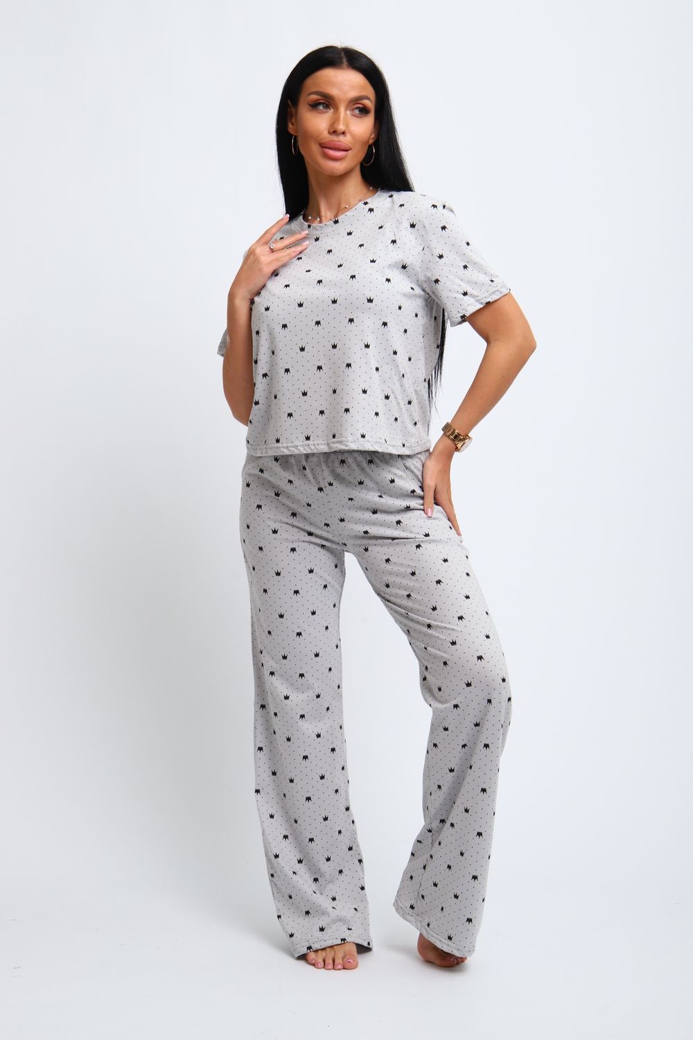 Пижама женская футболка и брюки. Брюки прямого кроя, с карманами . Футболка с коротким рукавом.