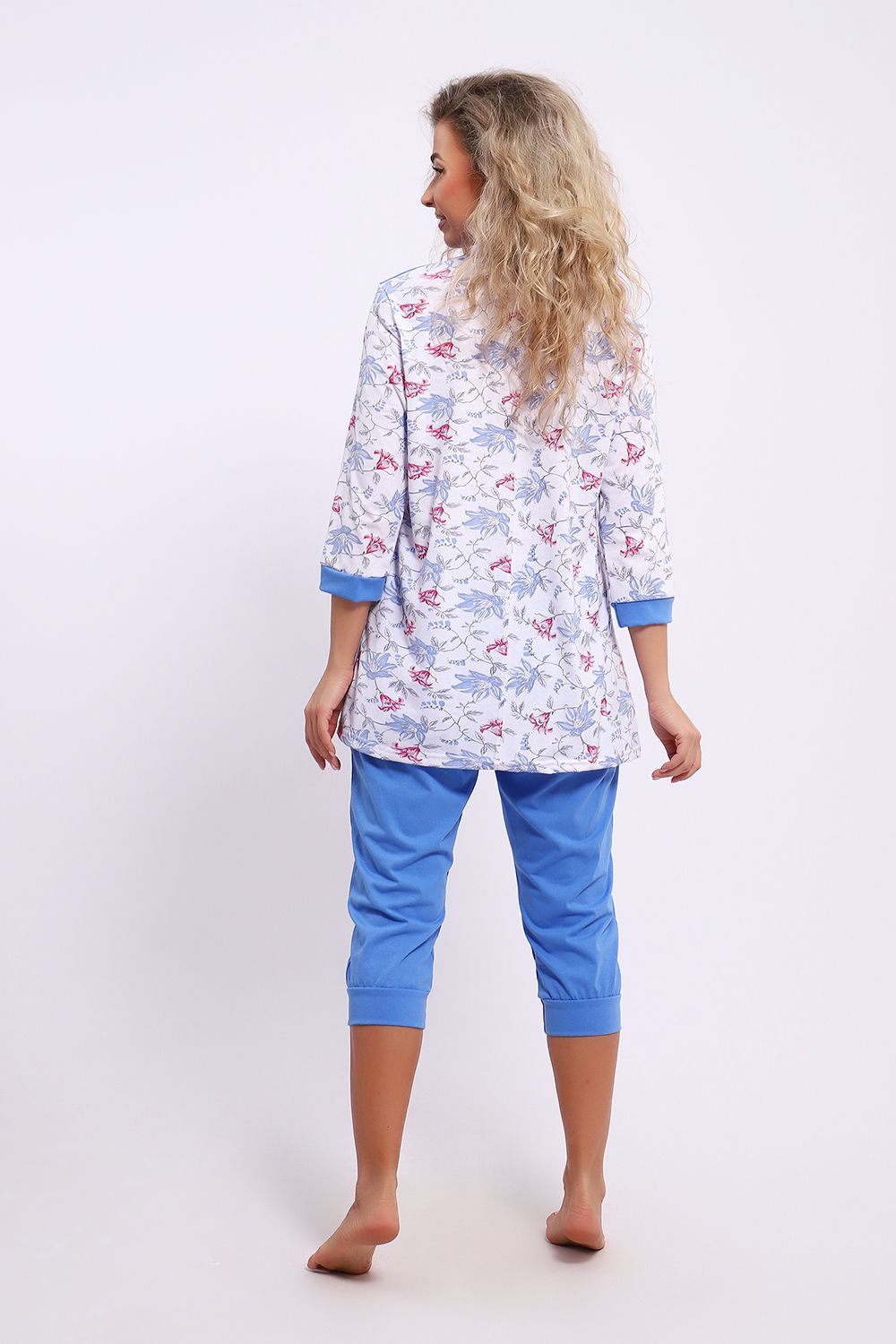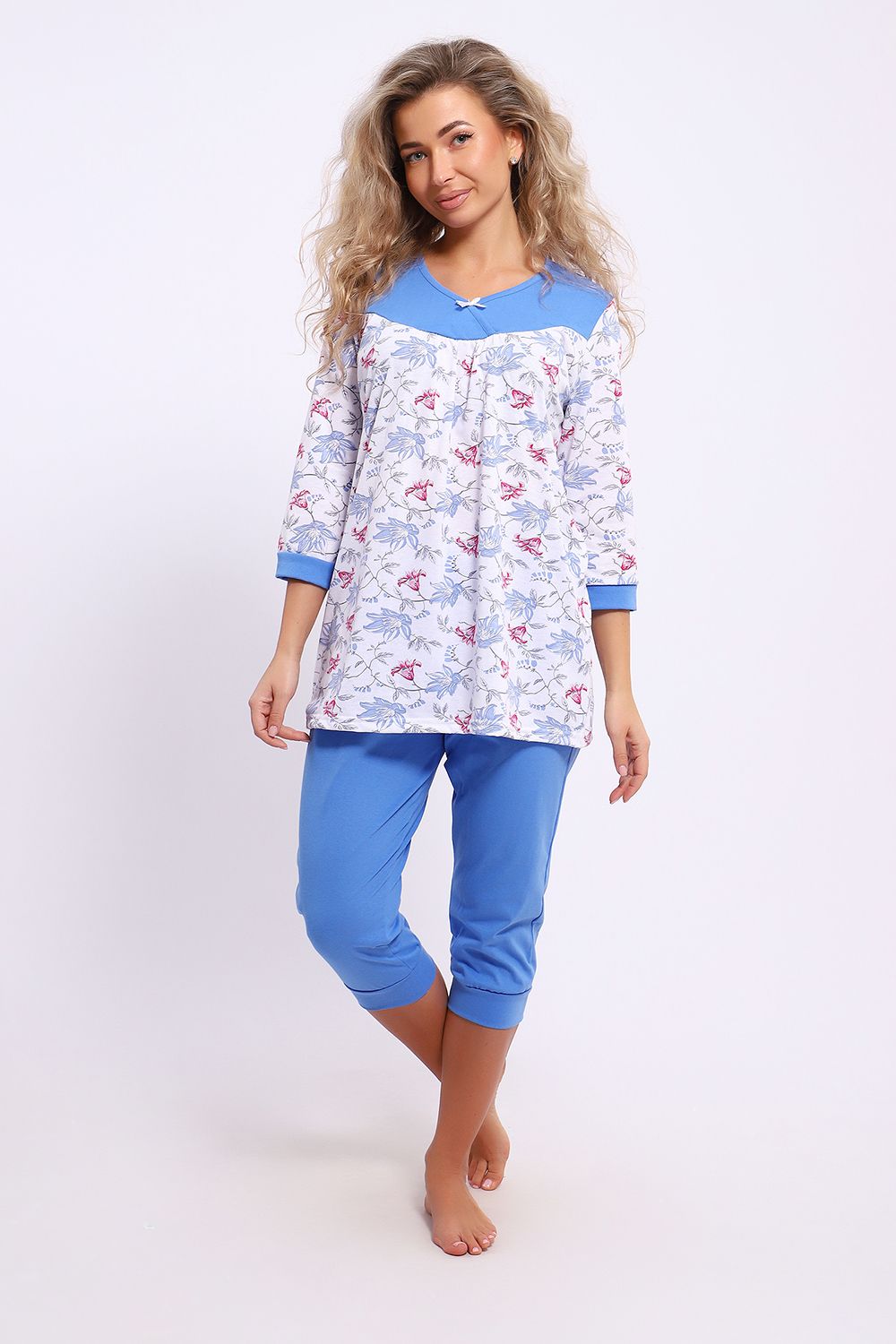 Пижама из натуральной белоземельной хлопковой кулирки, выпускается в большом диапазоне размеров с 50 до 64. Удобная посадка, нежное сочетание цветов.