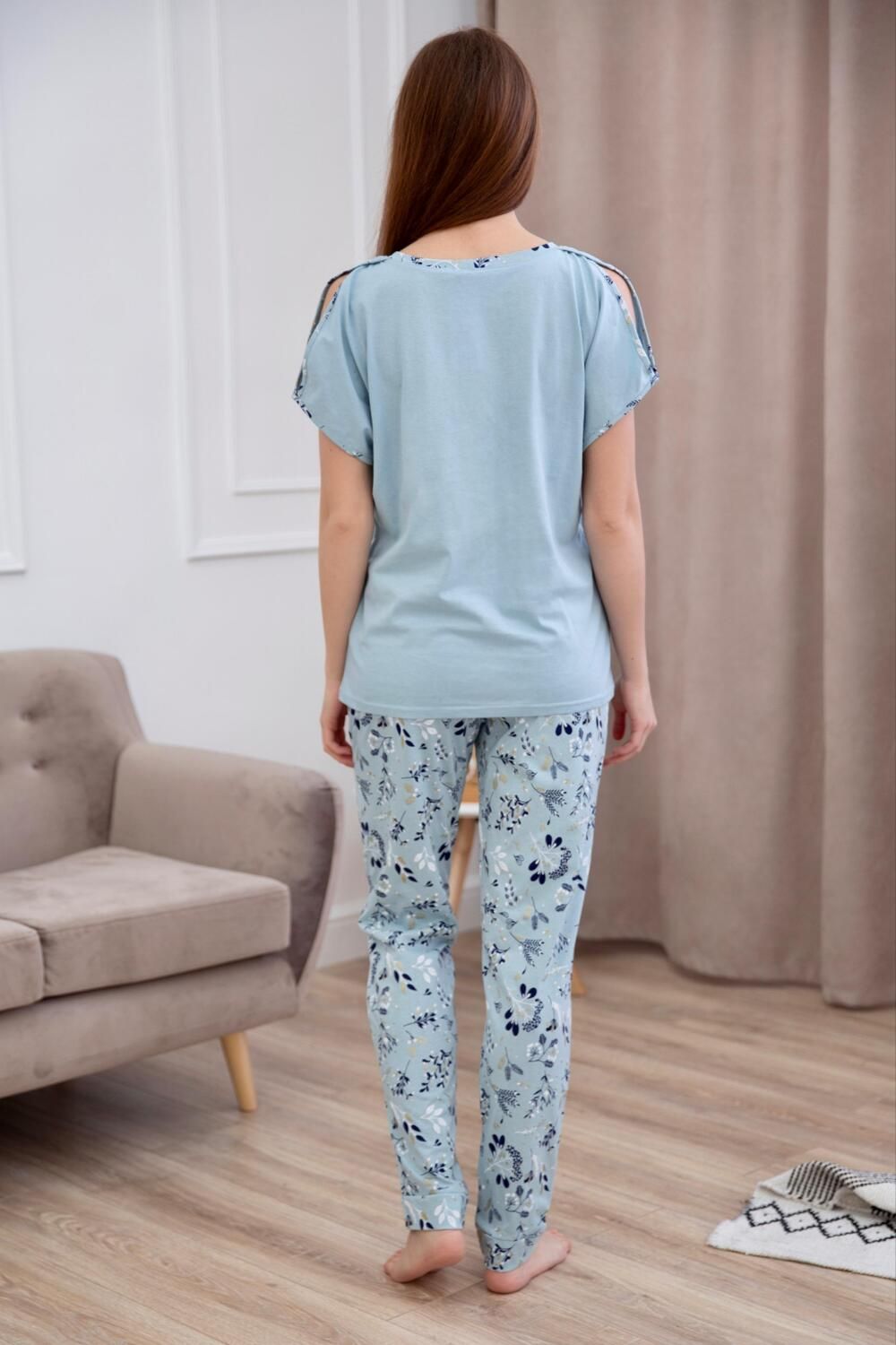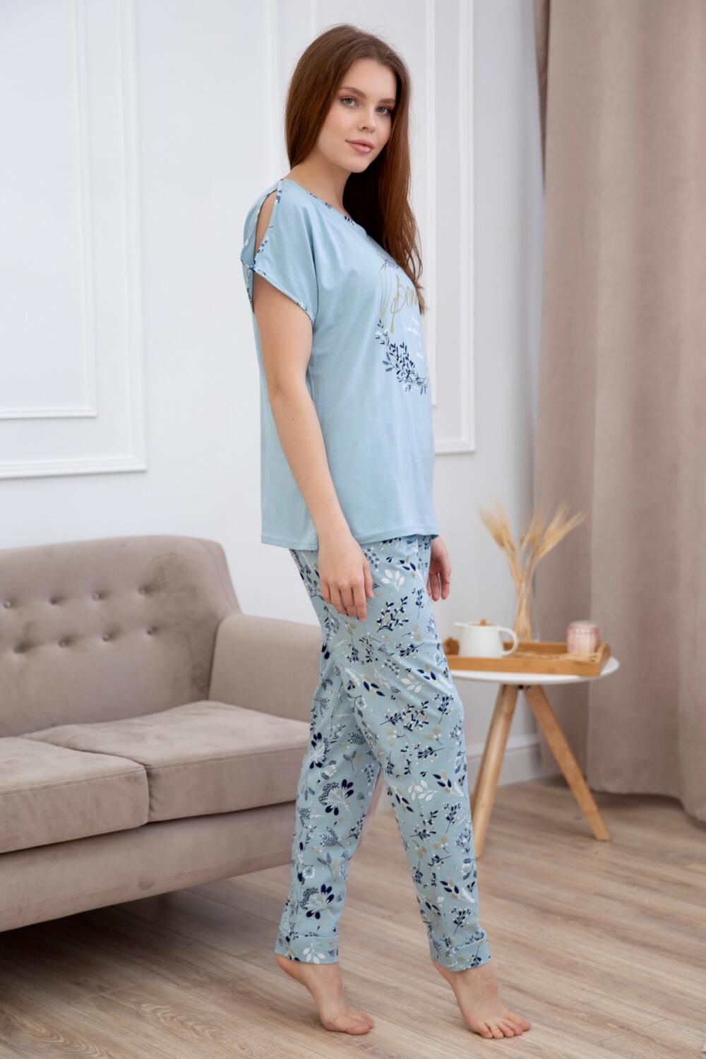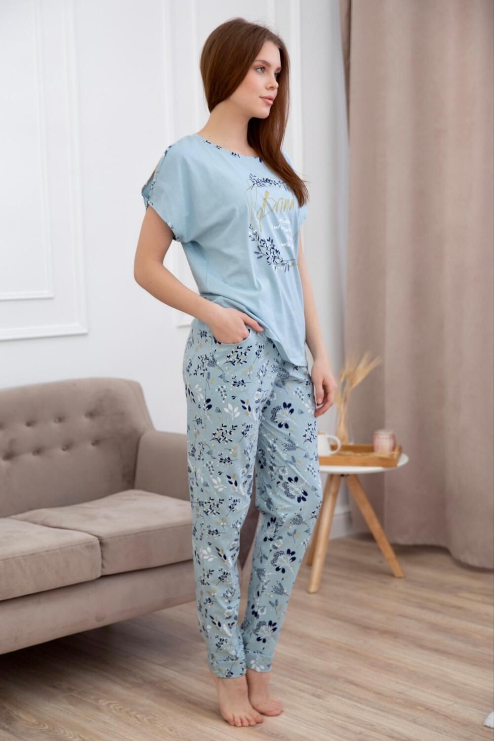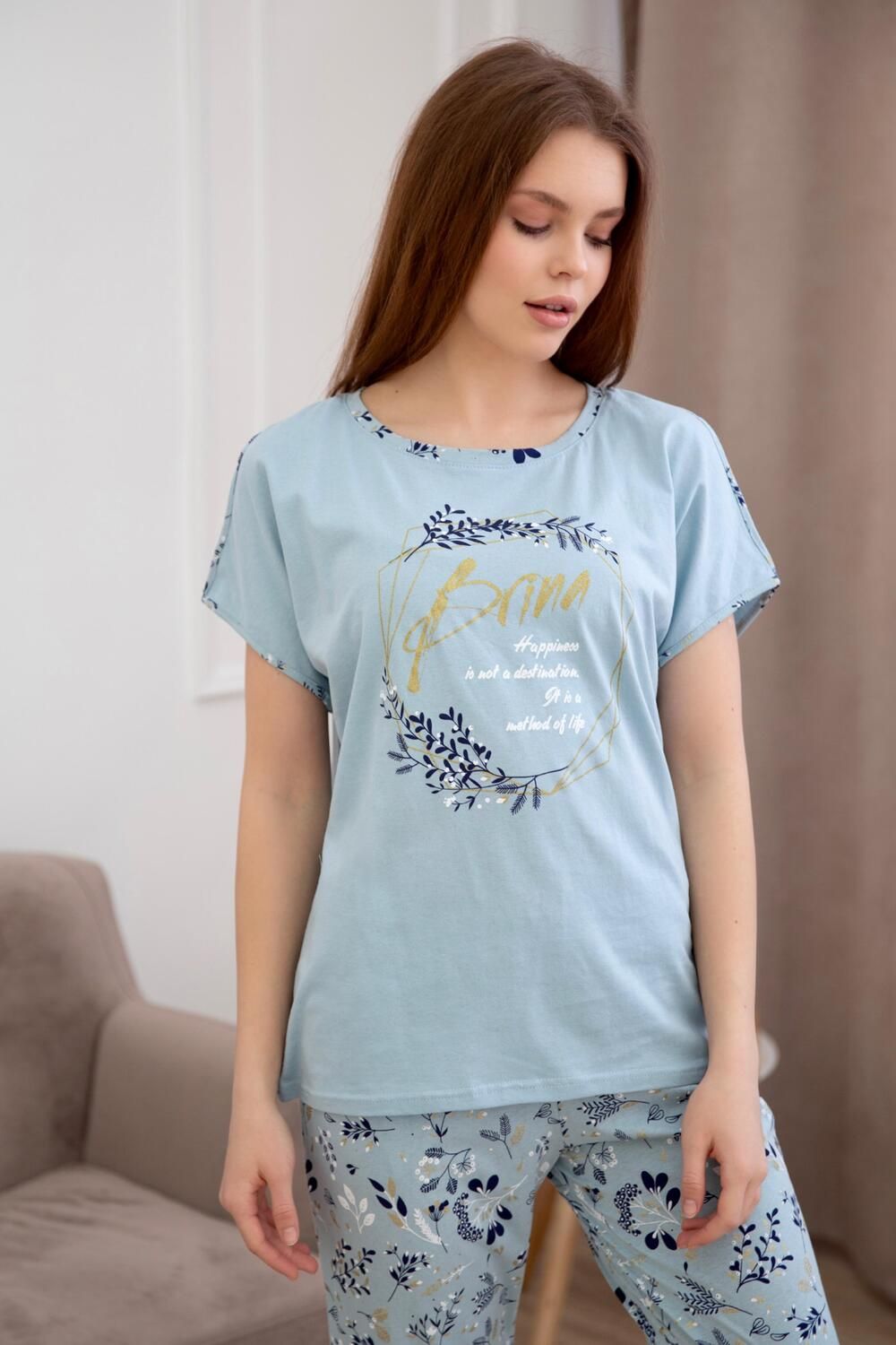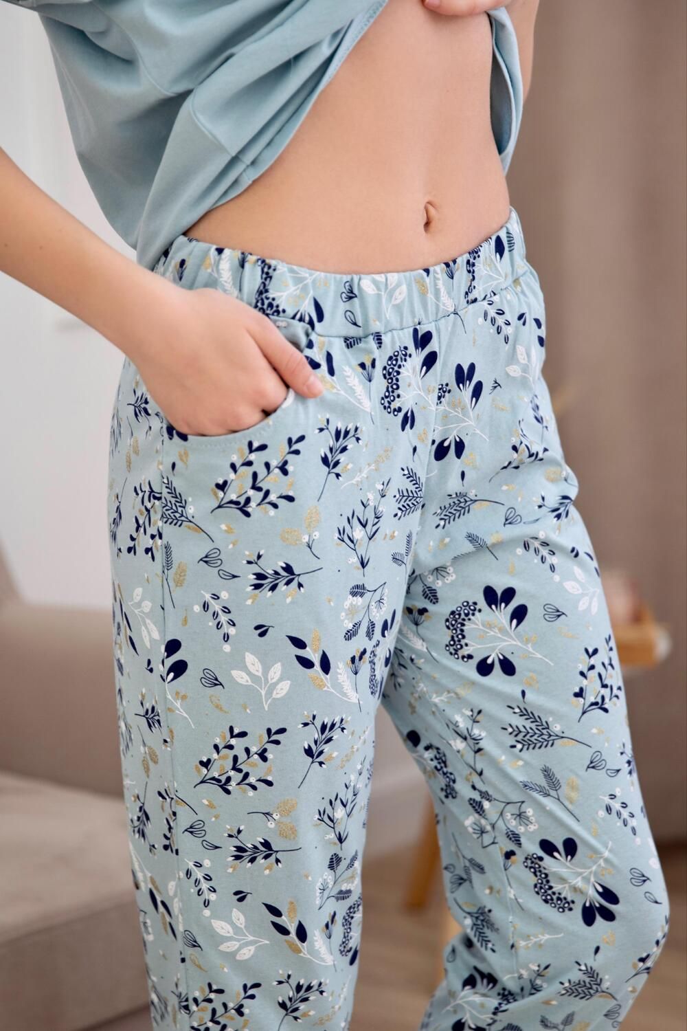 Женская пижама Брина - это идеальная одежда свободного покроя для дома. Состоит из 100% хлопка, выполнена с качественным принтом. Домашний комплект премиум качества для женщин, которых интересует мода и комфорт. Трендовая трикотажная коллекция состоит из футболки с коротким рукавом и рисунком и брюк, со слегка зауженными прямыми брюками. Дачная пора безусловно подходит для носки и даже вечерняя прохлада не застигнет Вас врасплох. Удобный брючный пижамный костюм предоставит вам крепкий комфортный сон и молодежный стильный вид. Если предпочитаете оверсайз, то возьмите на размер больше. Наша домашняя одежда прекрасно смотрится на стройных и на полных, на высоких и на миниатюрных. Также данный костюм с брюками подойдет и для беременных на ранних сроках, есть большие размеры.