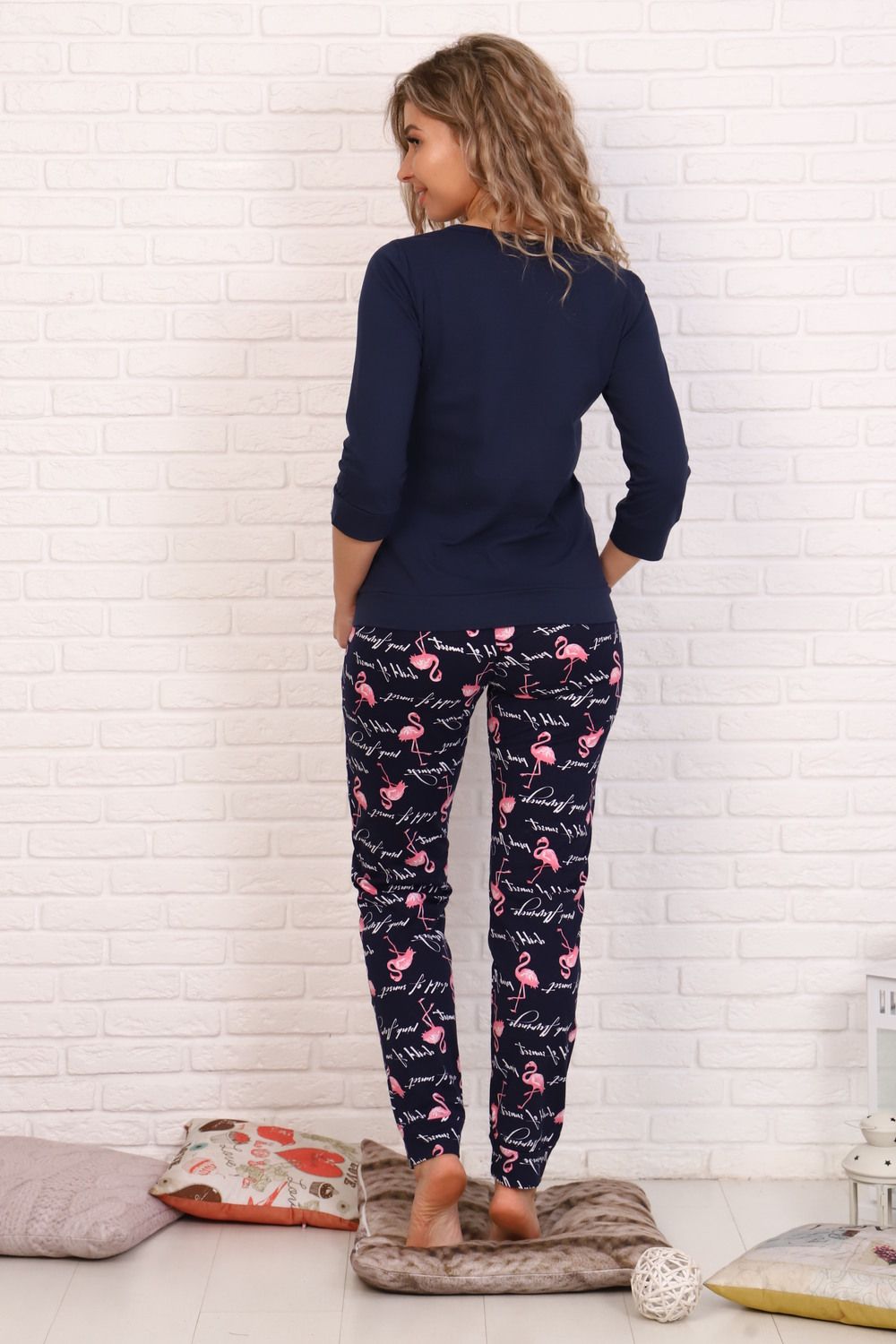 Домашний женский костюм с веселым принтом. Кофта с рукавом 3/4 полуприлегающего кроя с принтом в виде фламинго. Рисунок выполнен с использованием современных технологий. Длинные пижамные штаны с принтом и 2 прорезными карманами и лонгслив. Легкий костюм с брюками выполнен из натурального 100% хлопка, что делает его воздухопроницаемым, гидроскопичным и гипоаллергенным. Ткань кулирка слабо поддается растяжению и усадке. Есть большие и маленькие размеры от 42 до 56. Приятная мягкая к телу ткань, из которой изготовлена женская домашняя пижама не скатывается, сохраняет форму и цвет после множества стирок. Наличие больших размеров в размерной сетке делает комплект прекрасным выбором для беременных и кормящих женщин, а так же как одежда для полных. Эта женская пижама хороша для осенних вечеров в демисезон. Для создания эффекта оверсайз рекомендуем брать на один-два размера больше. Костюм со штанами family look отличный подарок для всех девушек и женщин: маме, подруге, бабушке, сестре, коллеге на любой праздник, особенно в этот демисезонный период! Качественная и удобная домашняя одежда фэмили лук порадует каждого, и будет уместным подарком маме и дочке на любой праздник.