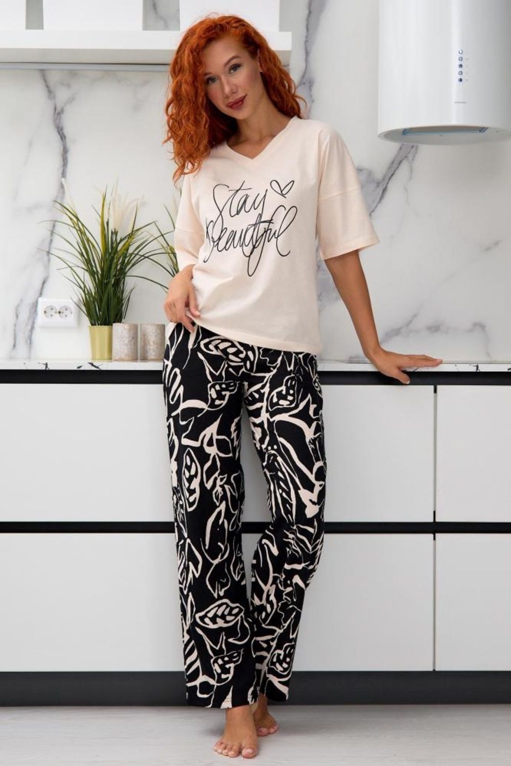 Пижама женская Кэр - бежевый с черным