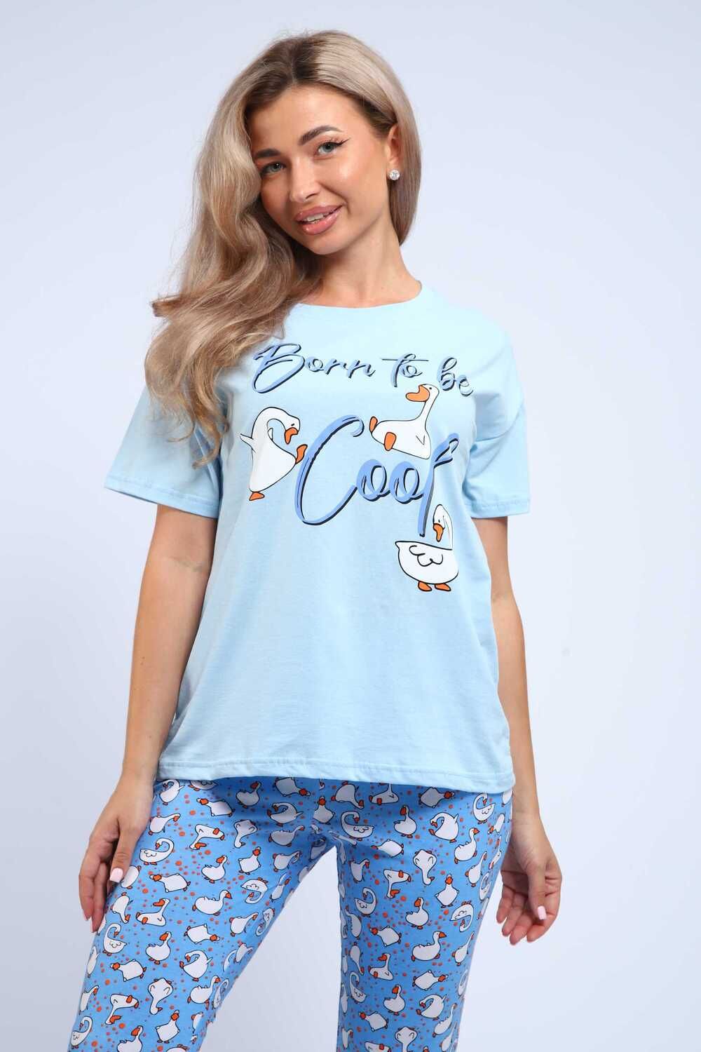 Нежная и легкая пижама из 100% хлопка, прекрасно сидит на фигуре. Брюки бананчики, с принтом гуси, выполнены с поясом на резинке, дополнены карманами. Отличный вариант для подарка, путешествия, отдыха...