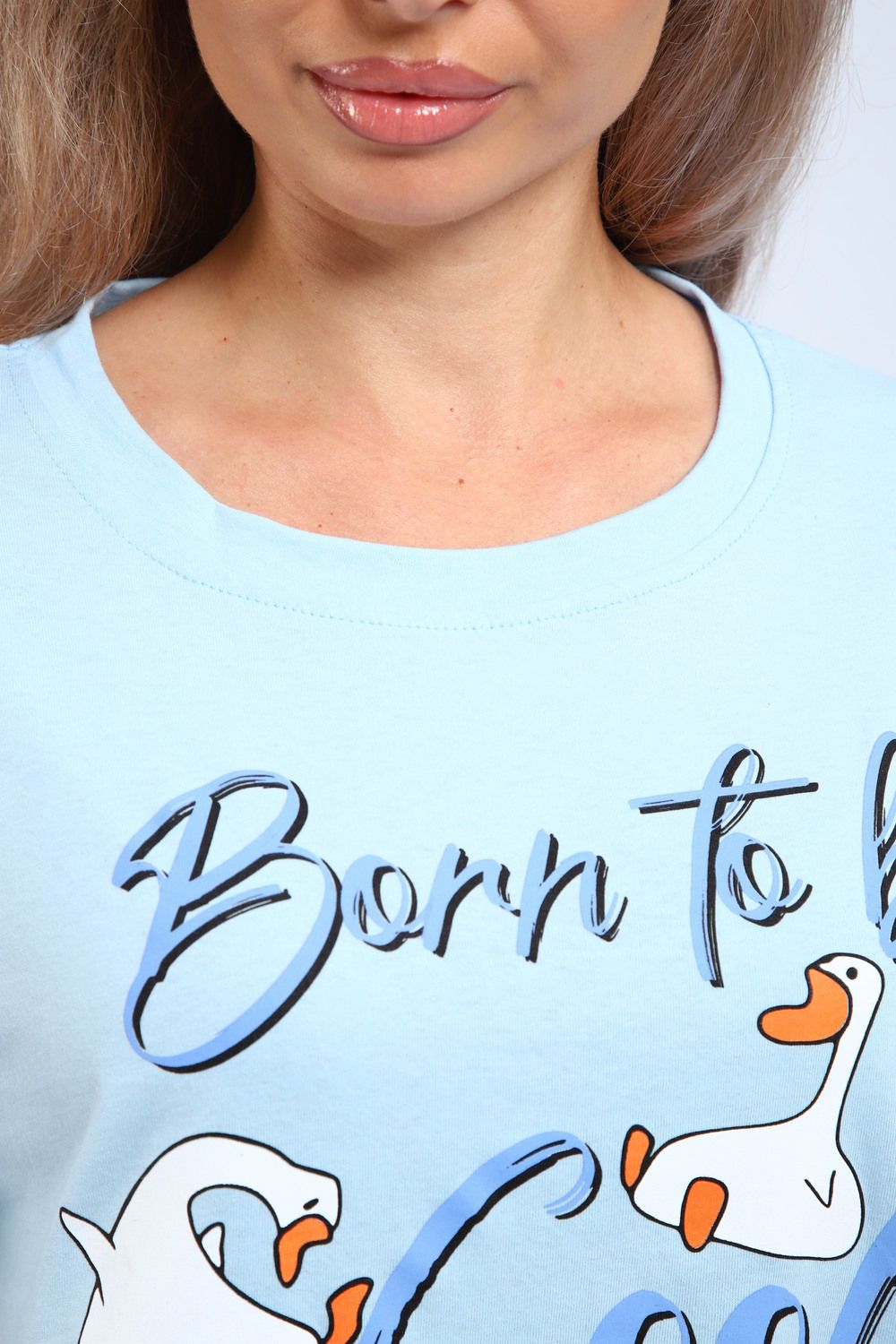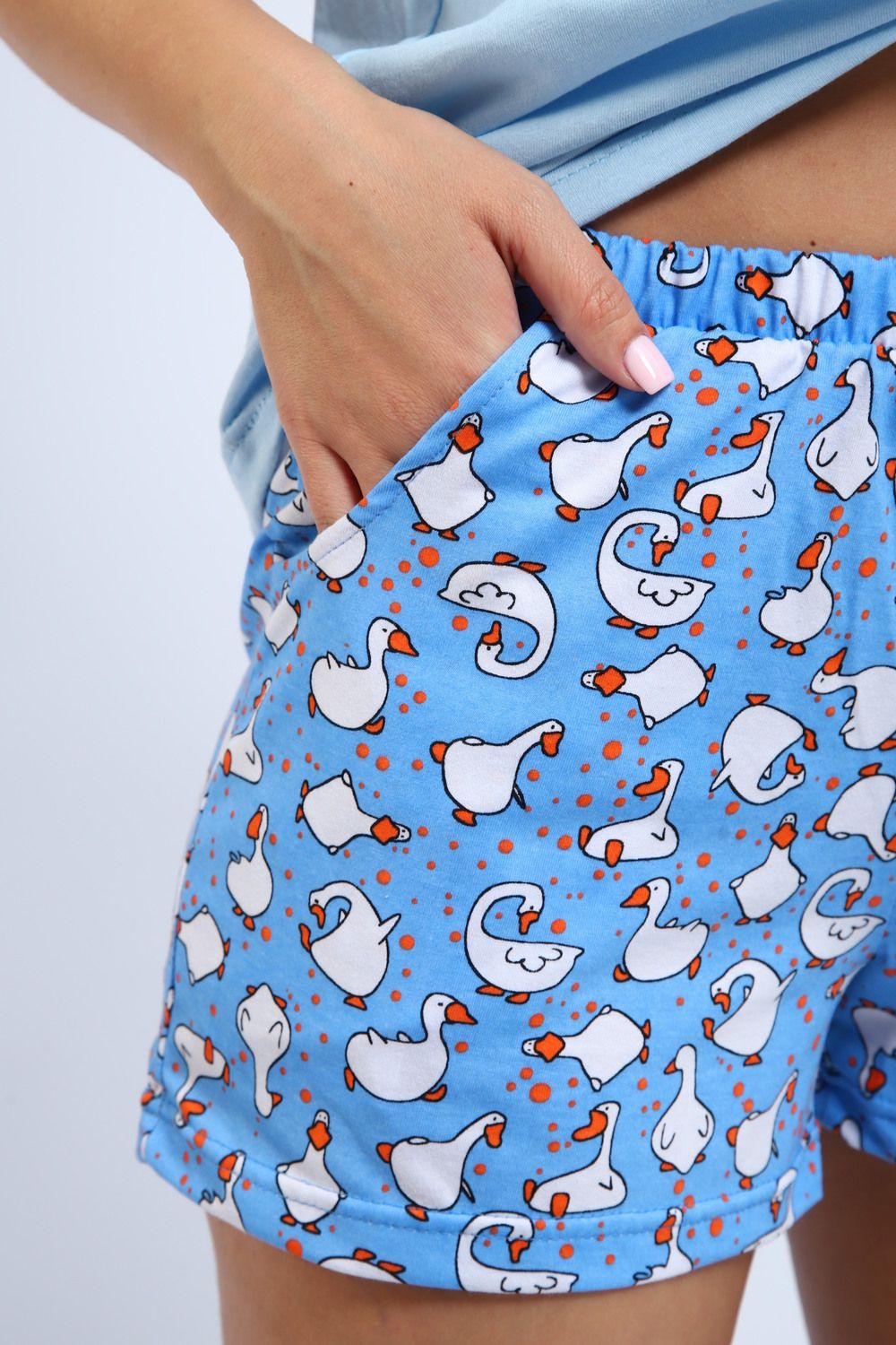Женская пижама с шортами. Шорты на резинке с карманами. Футболка с обтачко горловины, передняя полочка с печатью.