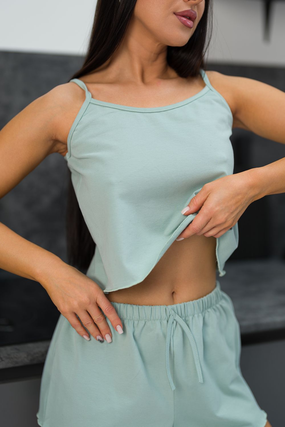 Пижама женская топ и шорты ПЖЛ-01 - зеленая-мята