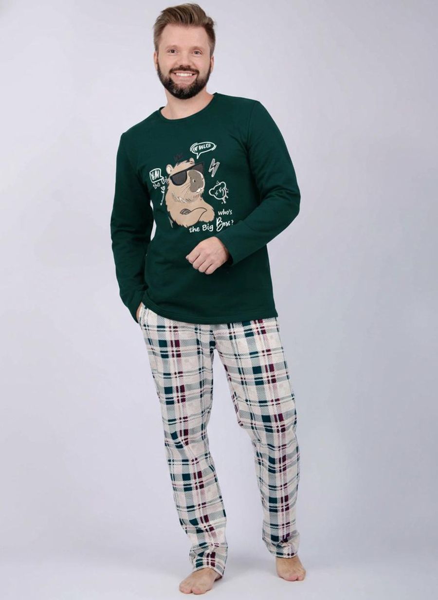 Эта теплая пижама станет вашим настоящим спутником в уютных вечерах дома. Изготовленная из качественного хлопка, она обеспечивает комфорт и отличное тепло во время отдыха. Элементы дизайна, такие как свободный крой и мягкие швы, гарантируют удобство в движениях, что особенно важно для домашнего костюма.