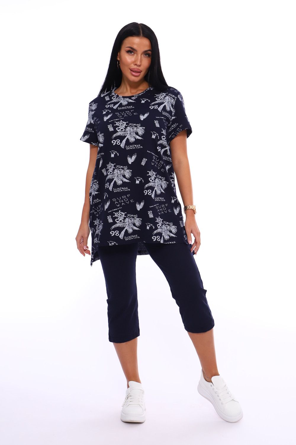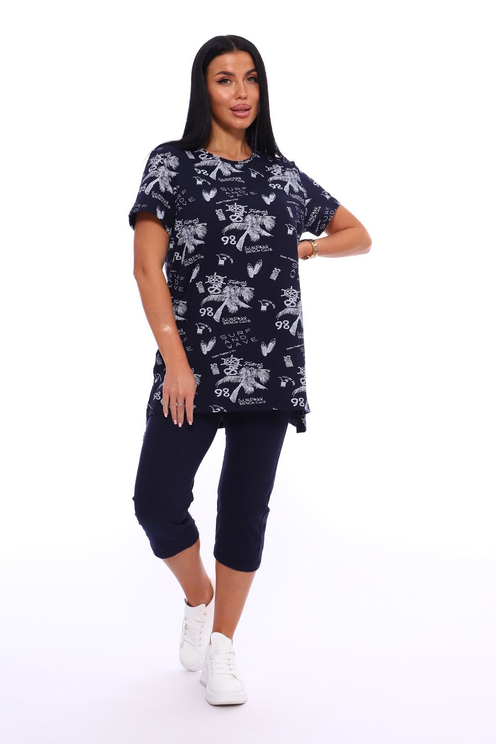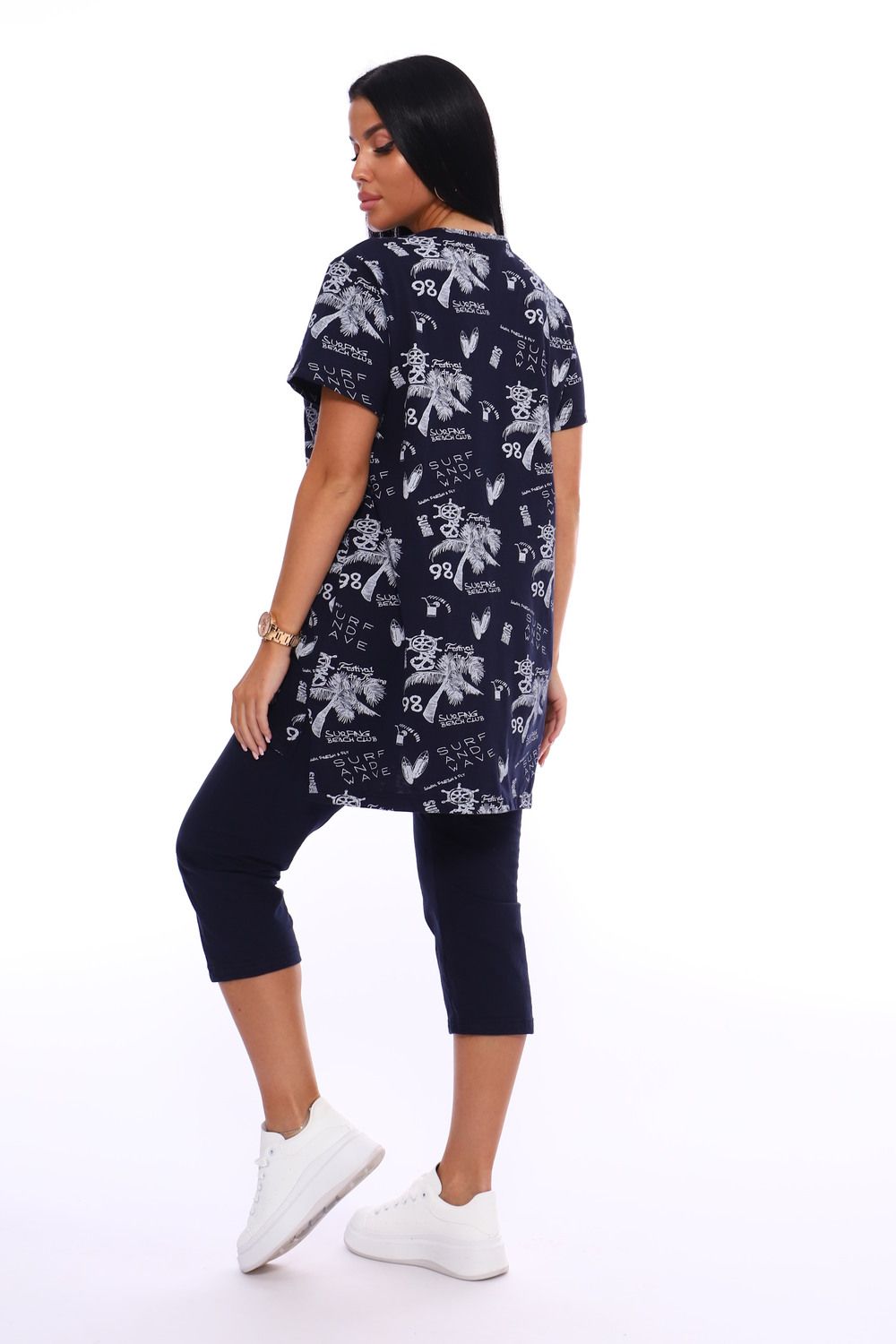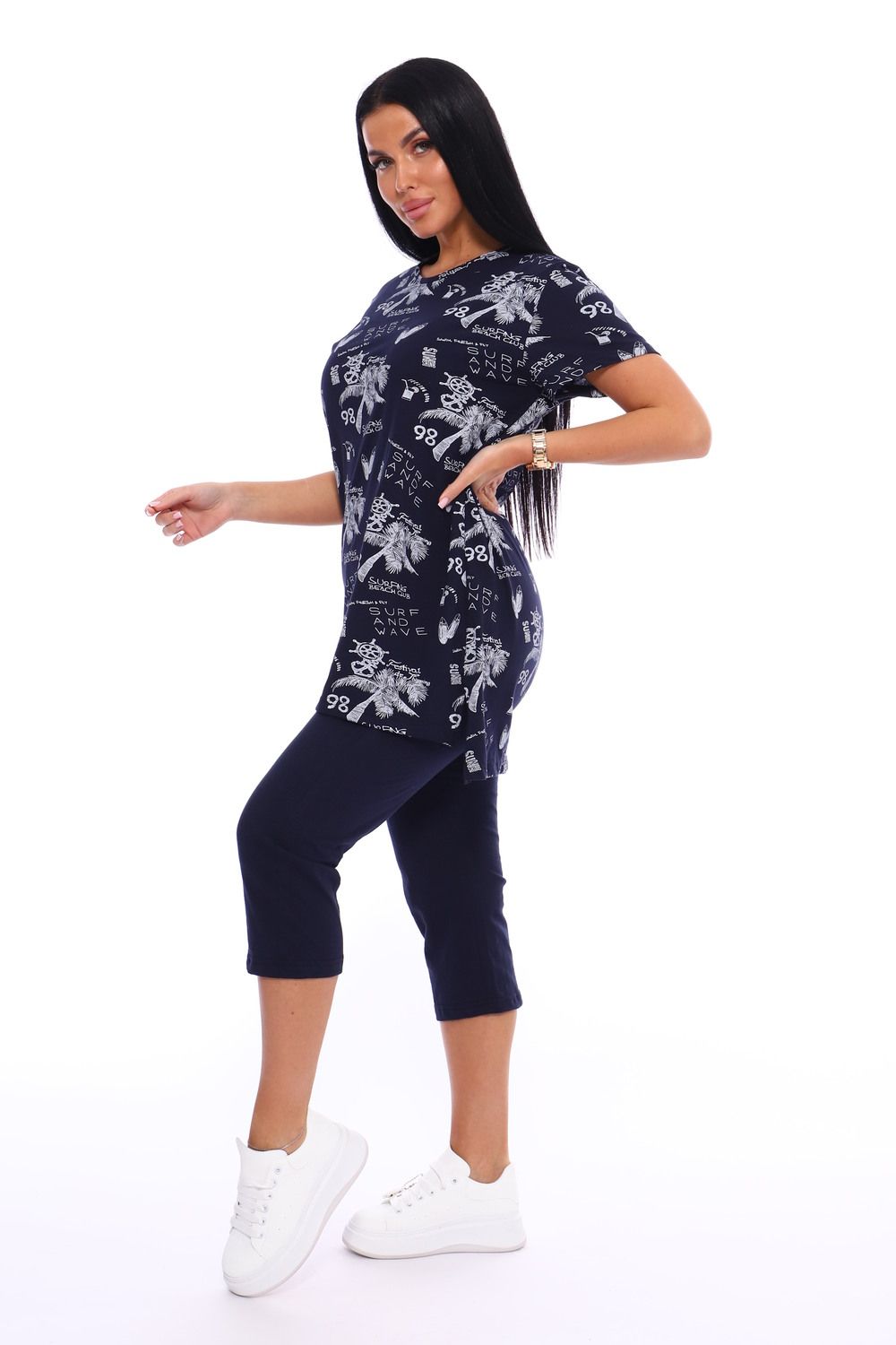 Пижама костюм с удлиненной футболкой и бриджами, Арт. 516 - темно-синий