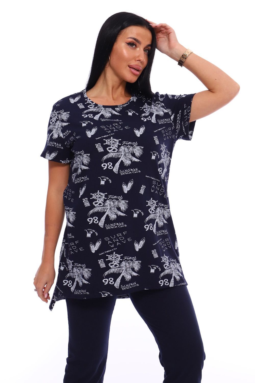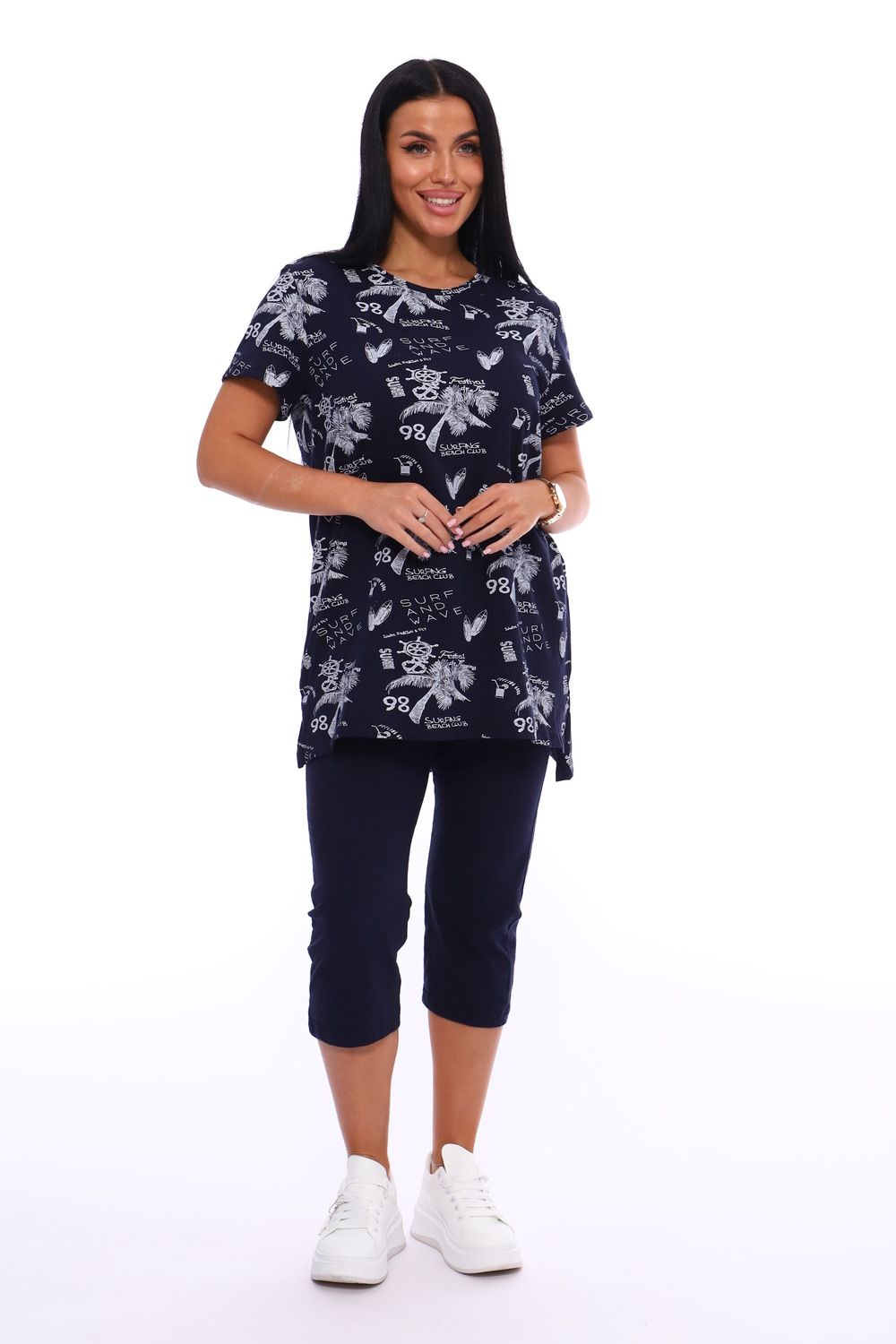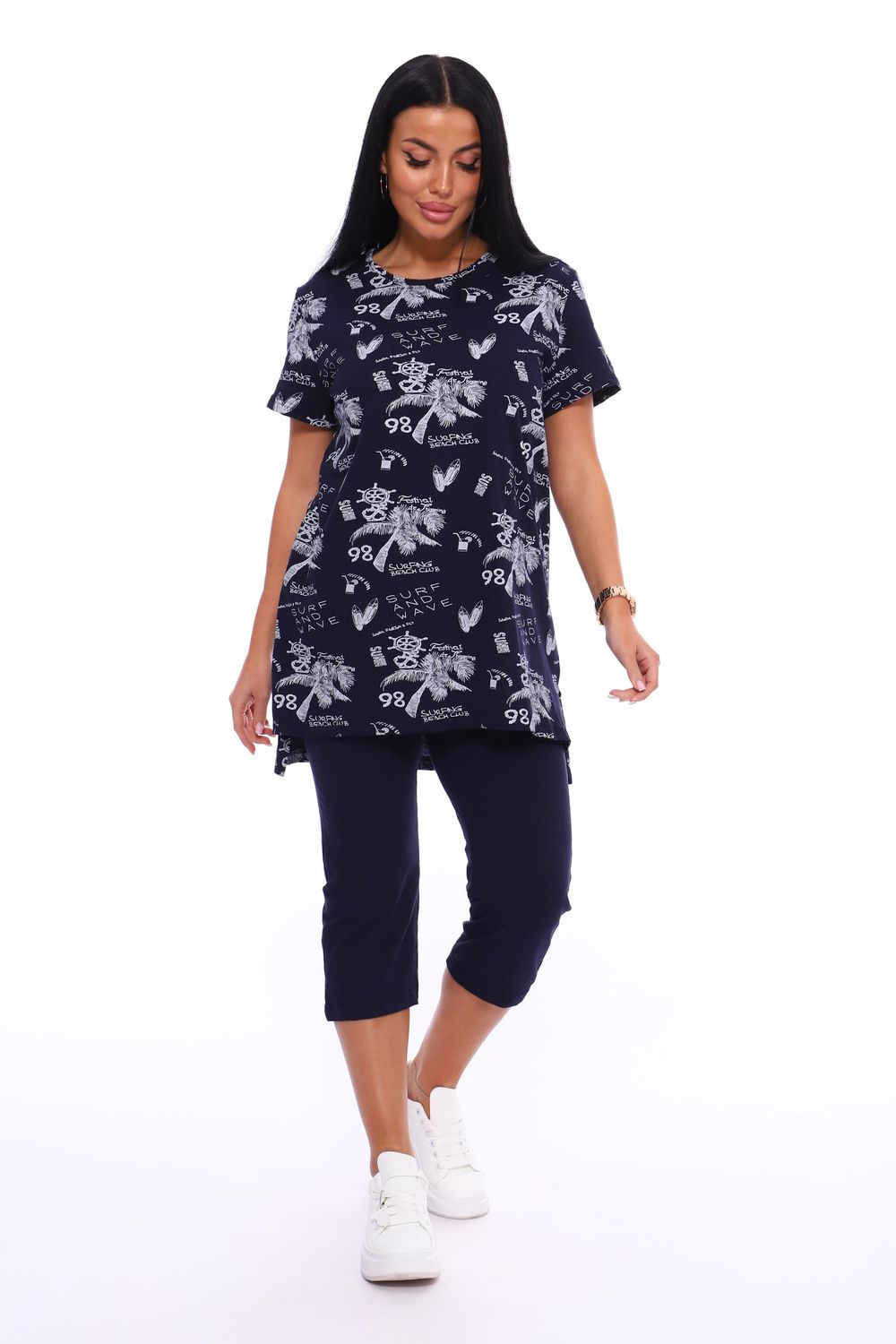 Пижама костюм с удлиненной футболкой и бриджами, Арт. 516 - темно-синий