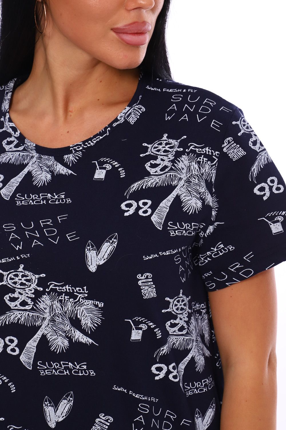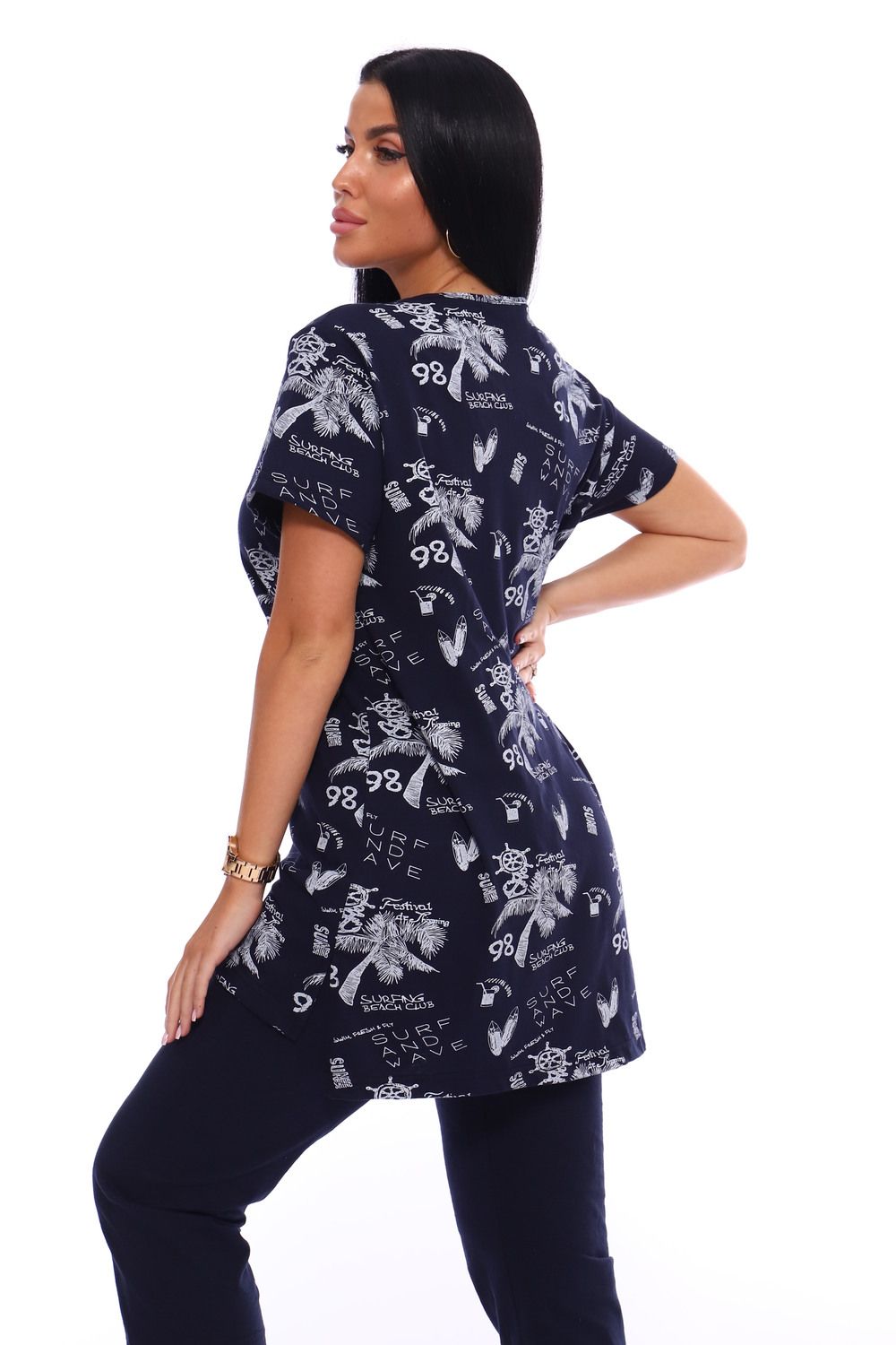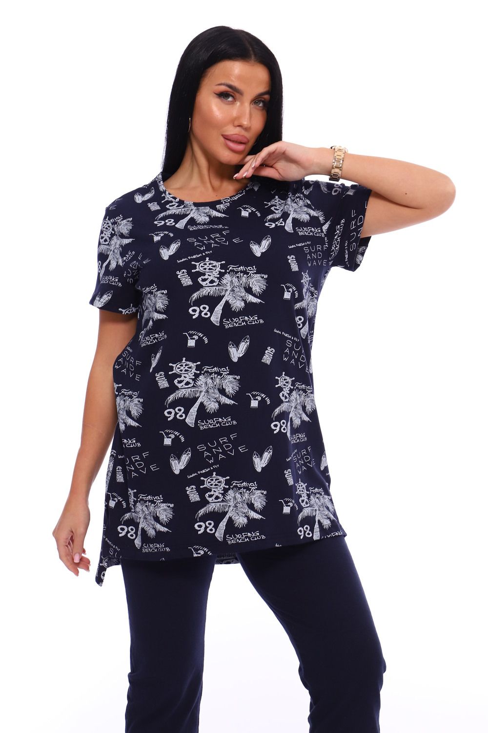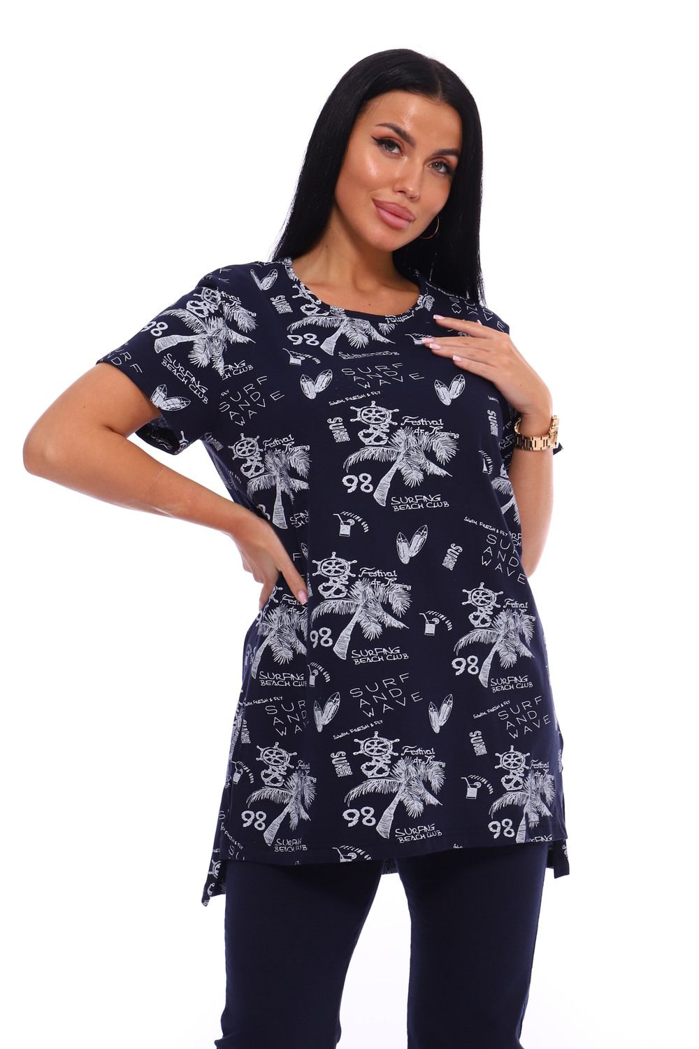 Пижама костюм с удлиненной футболкой и бриджами, Арт. 516 - темно-синий