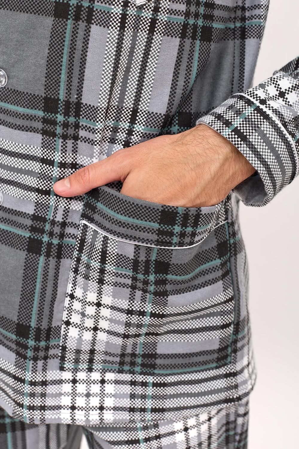 Мужская фланелевая пижама из 100% хлопка, приятна к телу и не сковывает движения. В комплекте рубашка на пуговицах и с удобными карманами на груди и по бокам, так же прямые свободные брюки на поясной резинке. Отличный комплект, который подойдёт каждому мужчине.