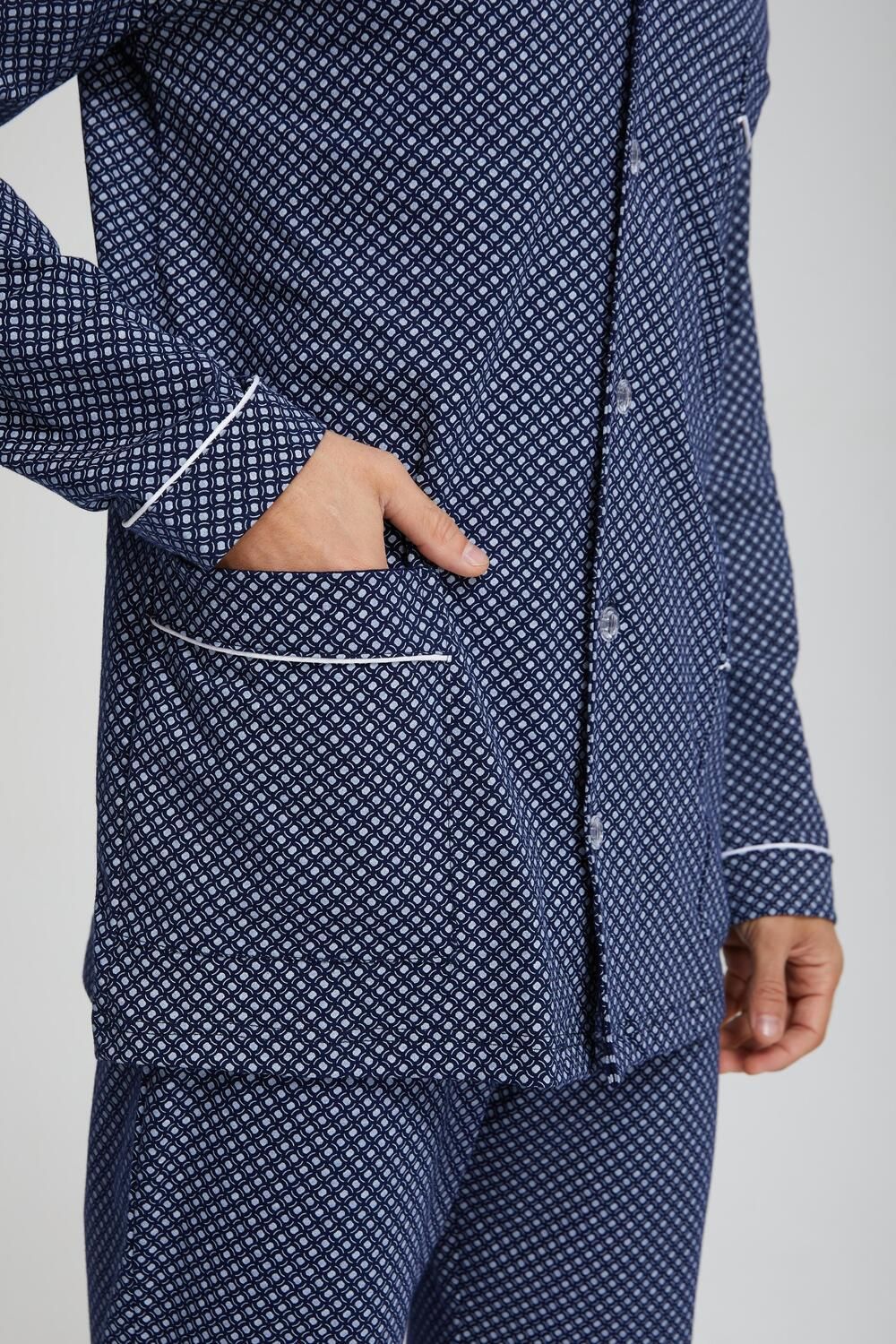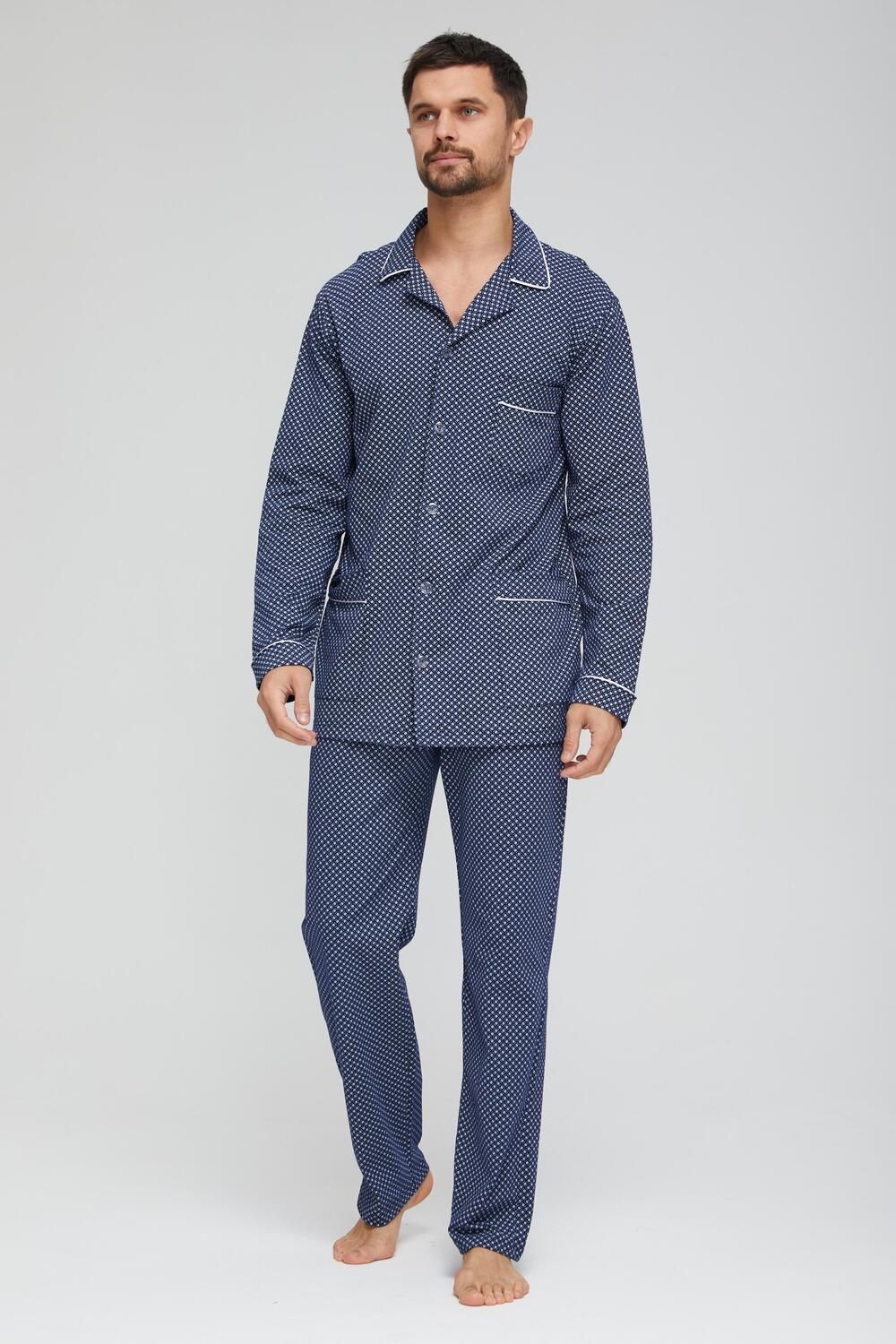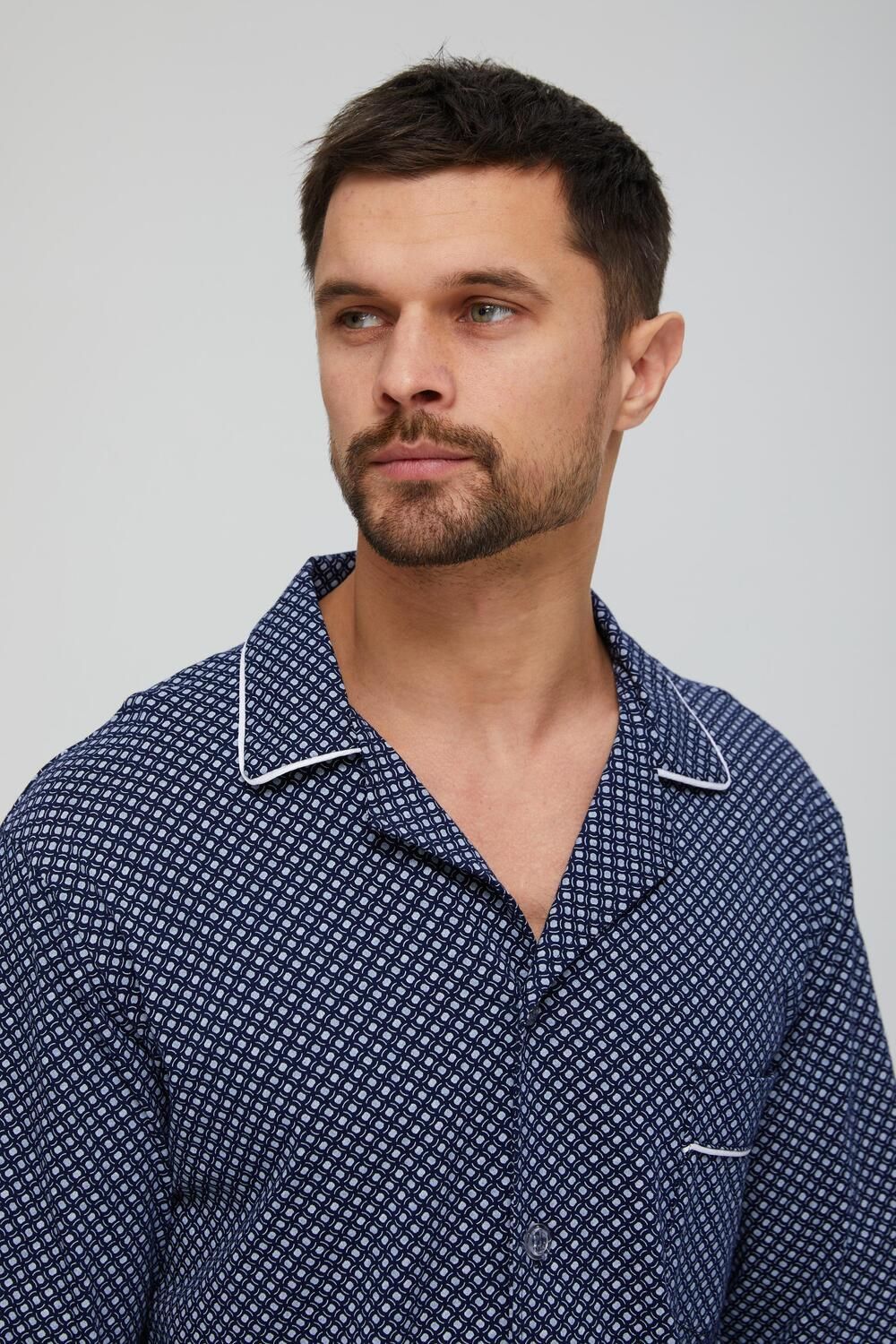 Классическая пижама мужская от бренда Lika Dress - идеальный вариант для отдыха дома. Пижама для мужчин состоит из пижамной рубашки на пуговицах, с карманом на груди и по бокам, а также удобных и мягких брюк в тон. Наша мужская пижама имеет стильный мужской принт. Мужская пижама с длинным рукавом сшита из нежного и качественного трикотажа - кулирки. Это чистый хлопок, поэтому ткань дышит, не электризуется, не вызывает раздражения и прекрасно впитывает влагу. Красивая и удобная мужская пижама – это отличная идея для подарка на любой повод, в любое время года.