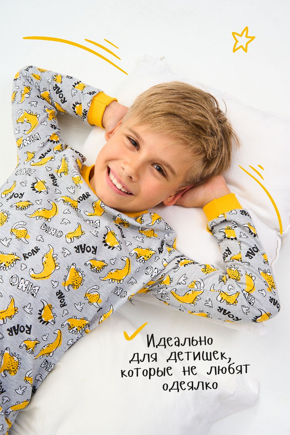 Детская пижама для мальчиков в ярких тонах с изображением тематических рисунков.