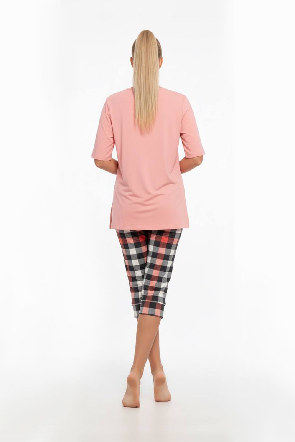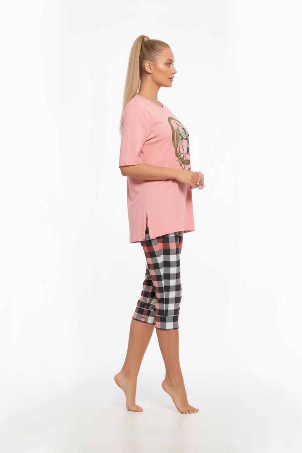 Представляем вам женскую пижаму с бриджами – идеальный домашний костюм для уютных вечеров и расслабляющего отдыха. Эта модель создана из высококачественного хлопка, что обеспечивает максимальный комфорт и приятные ощущения при ношении. Пижама отлично подходит для дома, позволяя чувствовать себя свободно и непринужденно.
