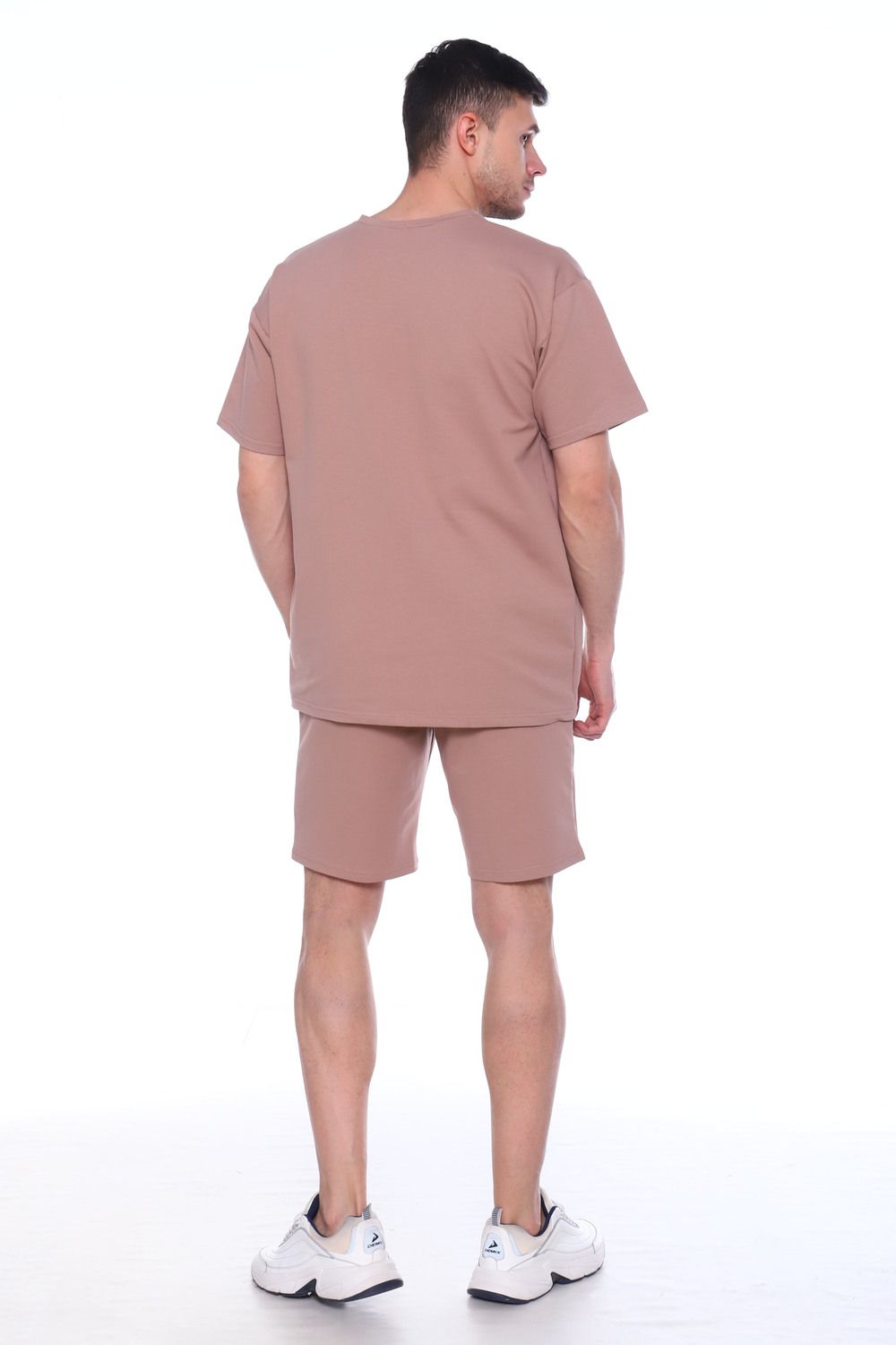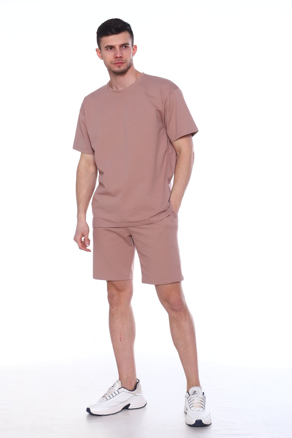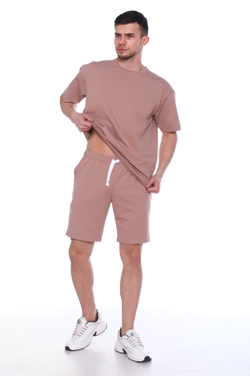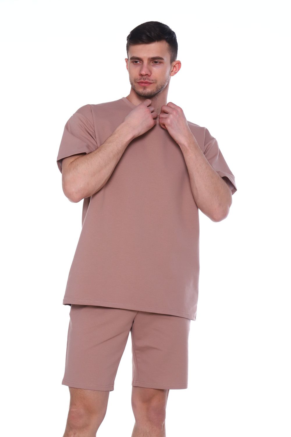 Комплект состоит из футболки оверсайз и шорт. Футболка свободного кроя, с коротким рукавом, круглым вырезом горловины. Шорты прямого кроя с карманами, на поясе шнур для регулировки .
