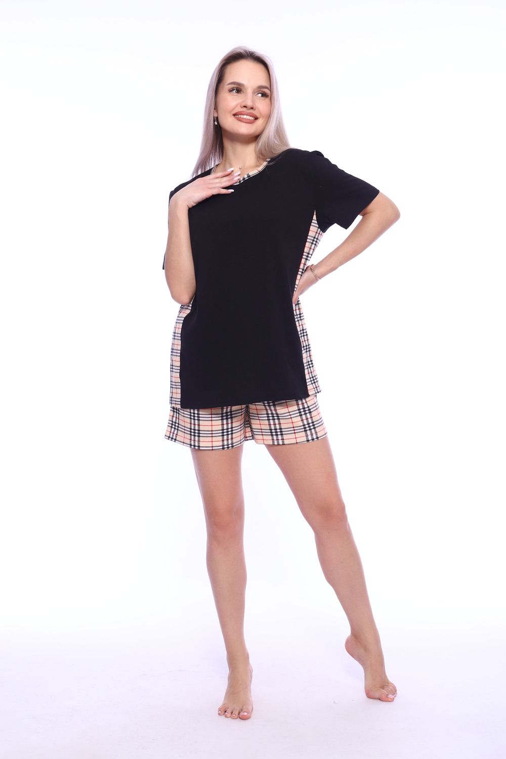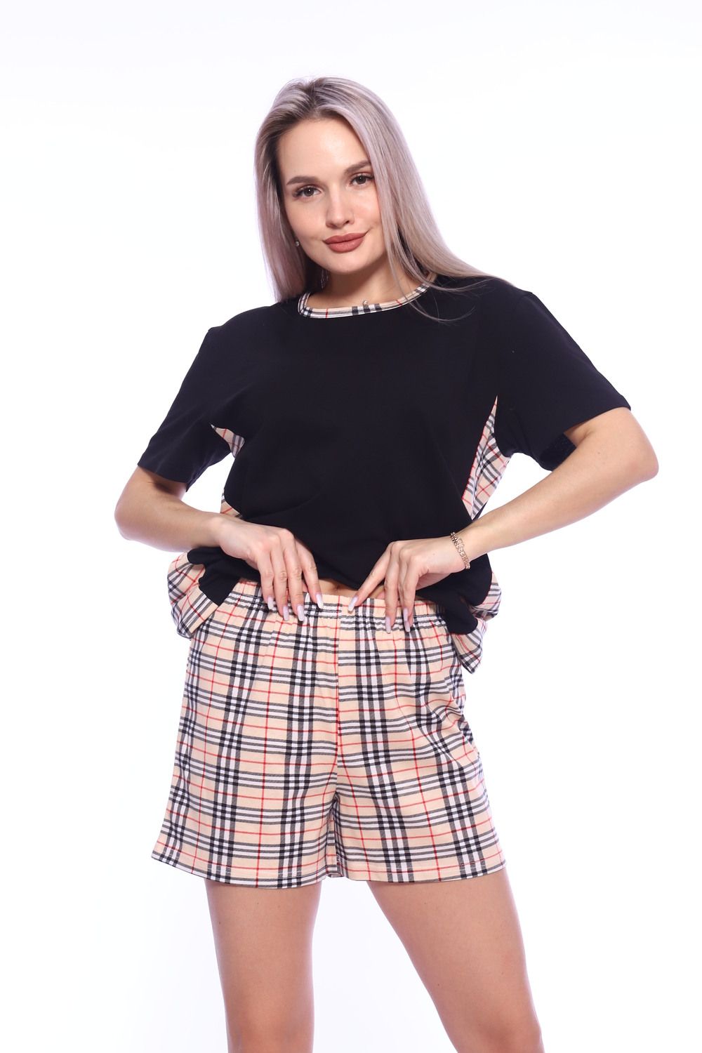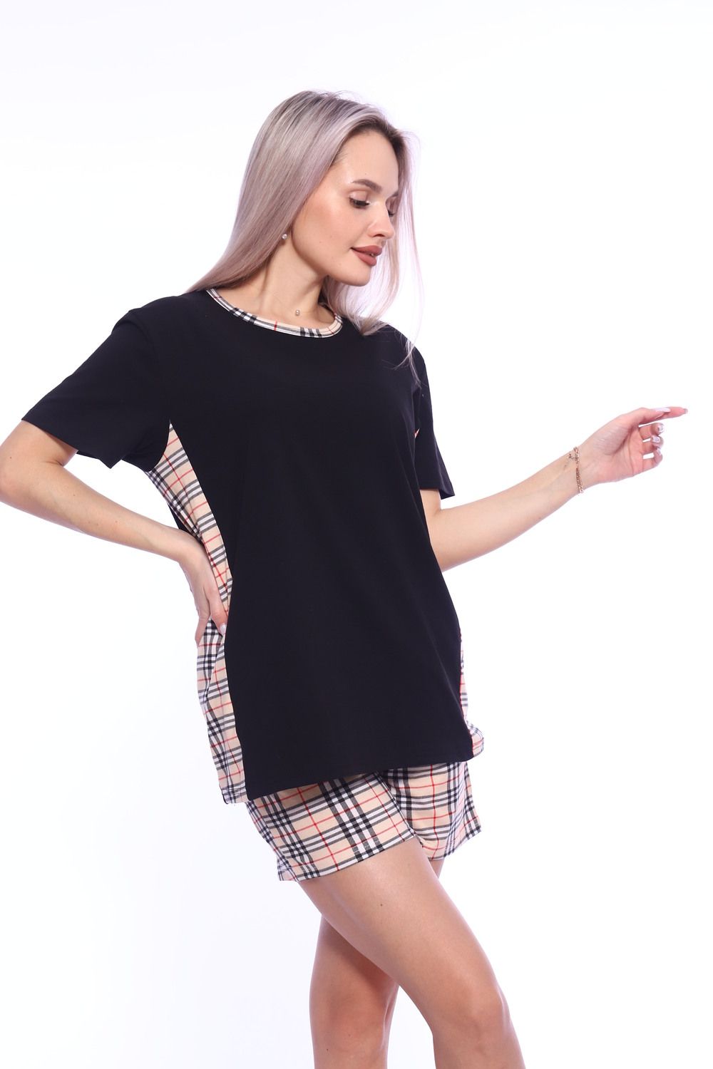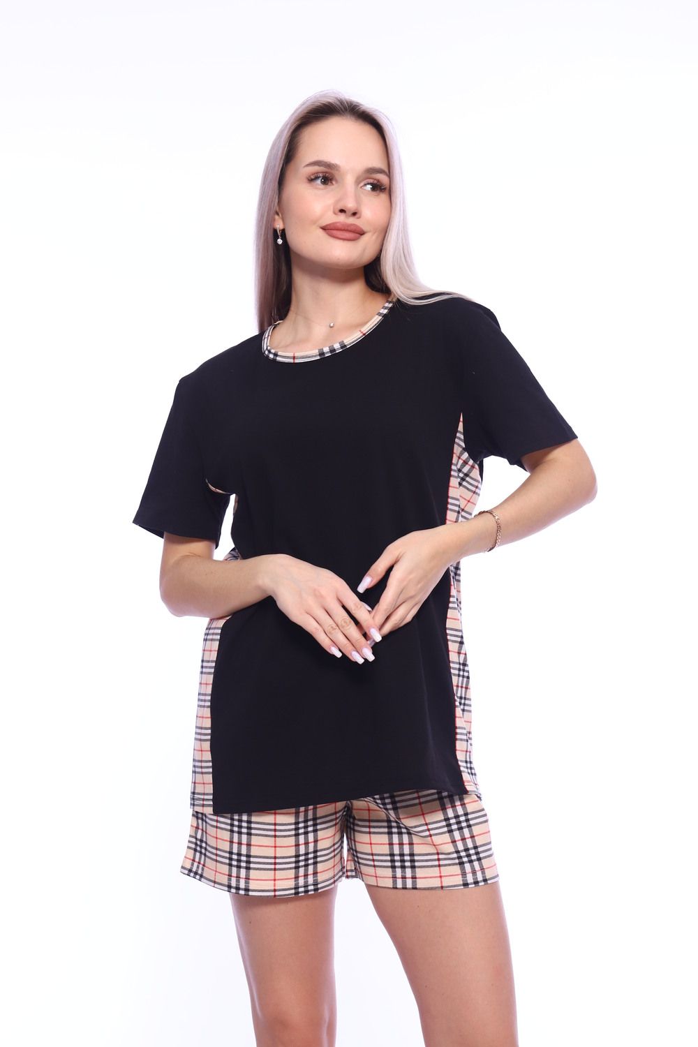 Хочешь чувствовать себя комфортно каждый день? Хочешь выглядеть стильно и свежо в любой ситуации? Тогда тебе просто необходим этот невероятно удобный комплект футболки с шортами! Он выполнен из 100% хлопка, что гарантирует комфорт и приятное ощущение на теле. Футболка со спущенным рукавом и боковыми вставками из клетчатой ткани добавят свежести и легкости твоему образу. Шорты свободного кроя отлично дополняют комплект и подходят на любой тип фигуры. Такой комплект подарит тебе удобство и стиль в любой ситуации - от прогулки до домашнего образа. Не упусти свой шанс на стильный и комфортный образ - заказывай этот комплект сейчас!
