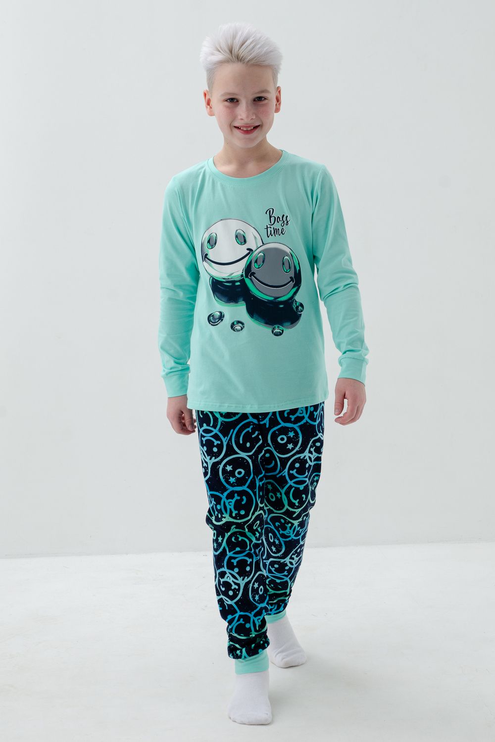 Пижама Сигма длинный рукав со штанами для подростка - ментоловый