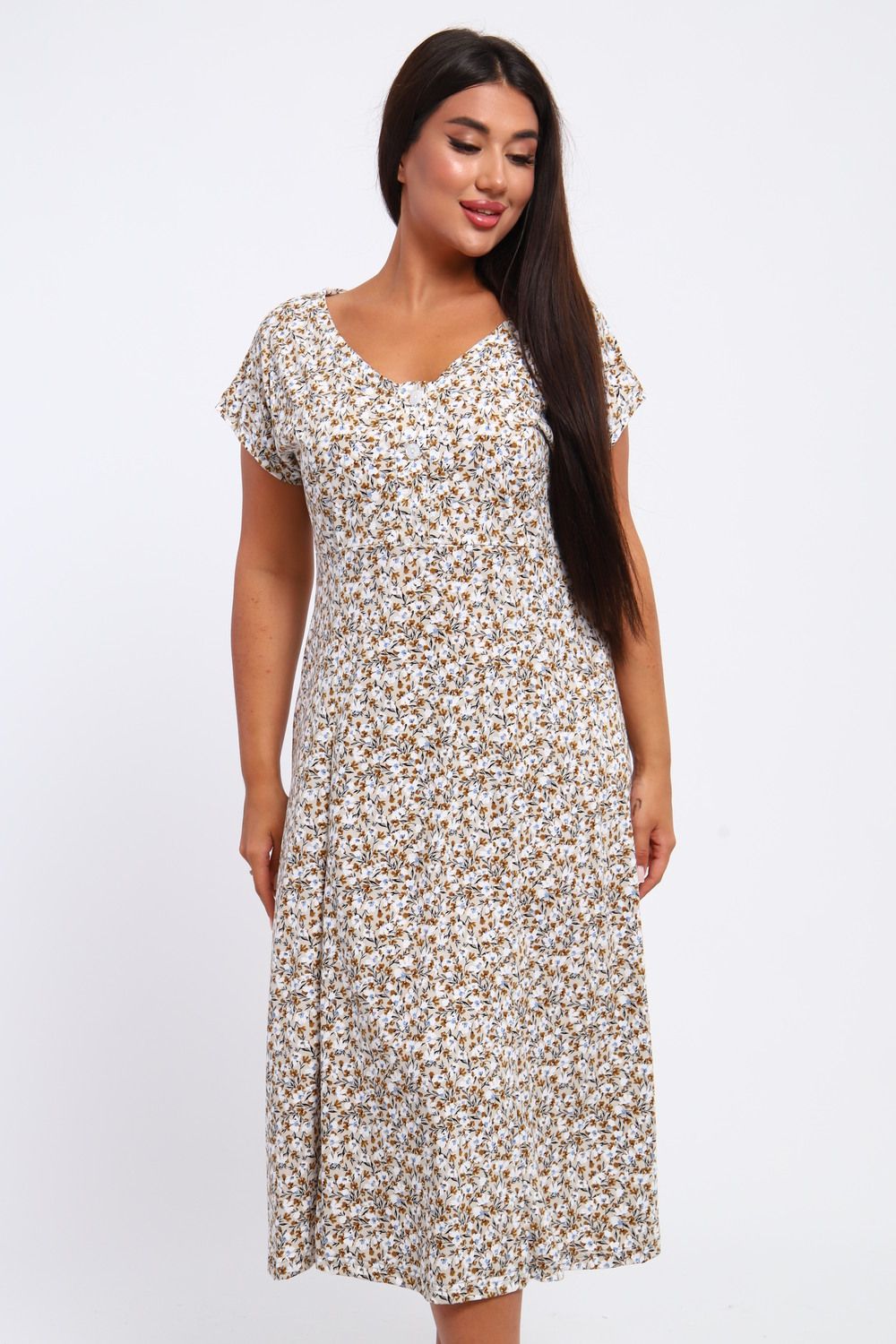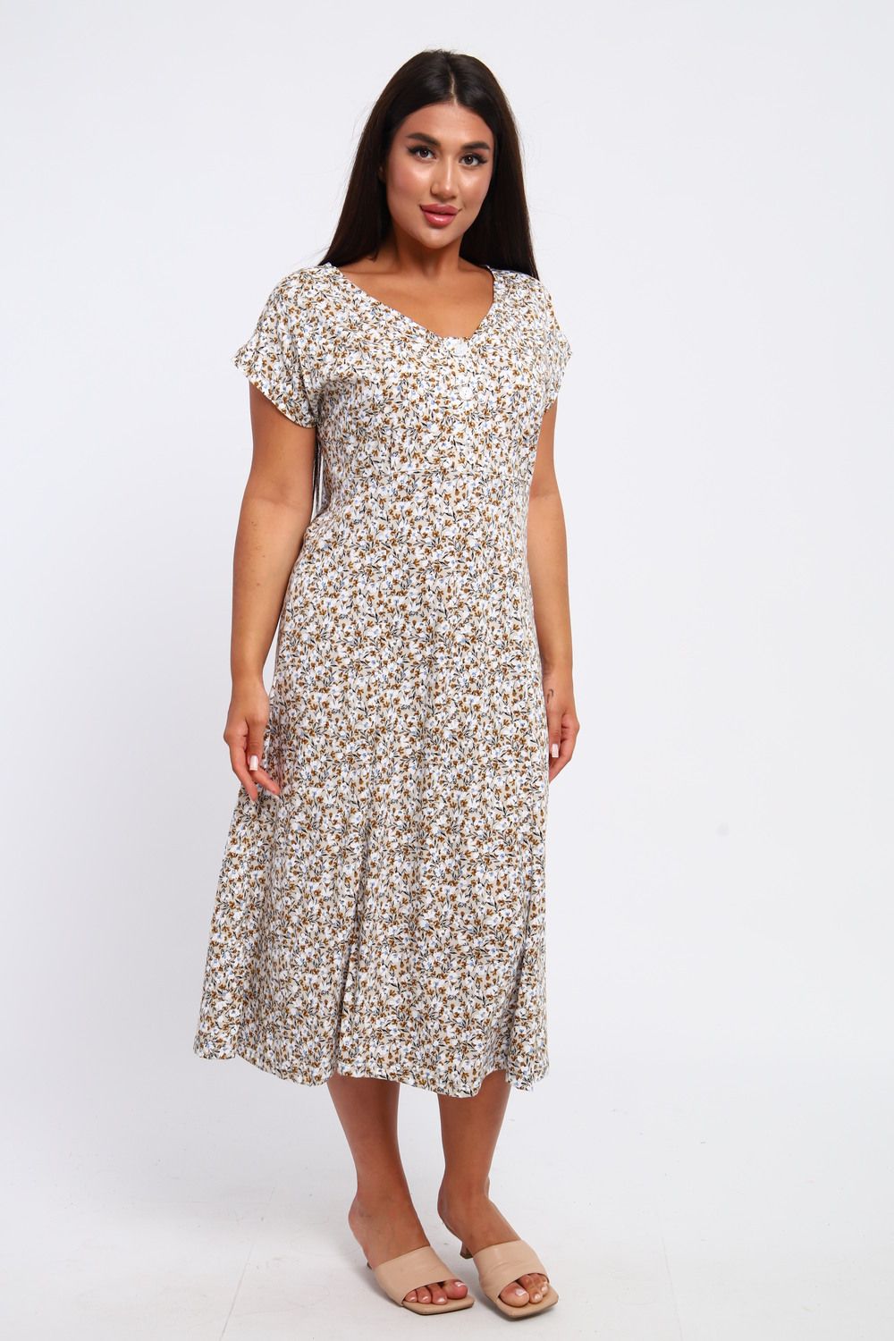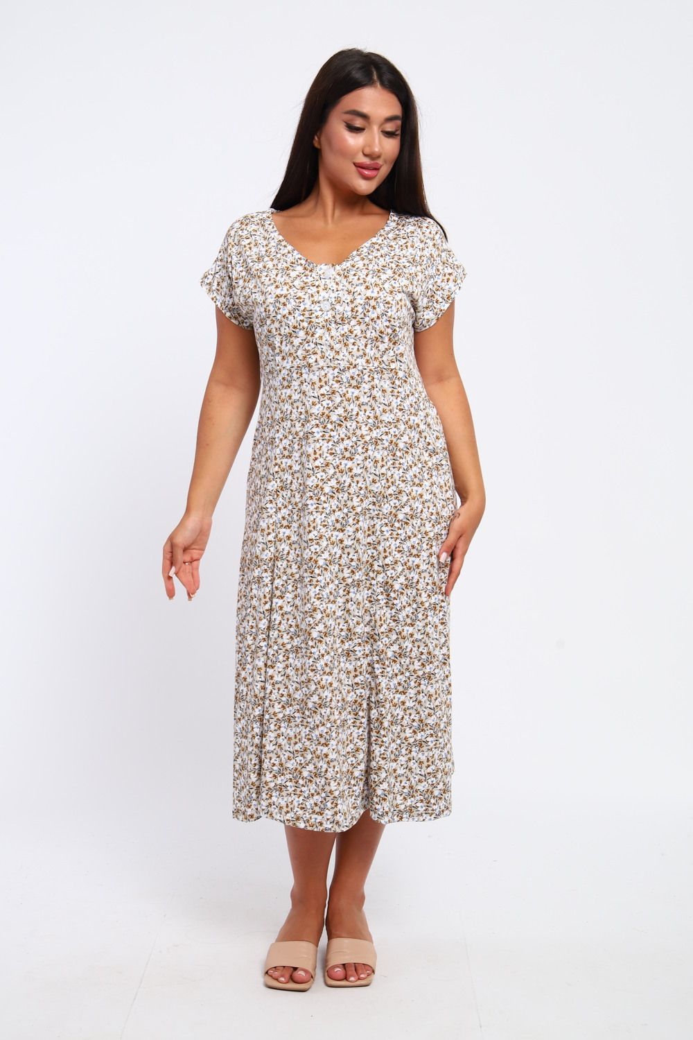 Платье женское со спущенным рукавом из кулирки 100% хлопок, с подрезом, планка на пуговицах, внизу расклешение. Идеально подойдет для прогулок и отдыха.